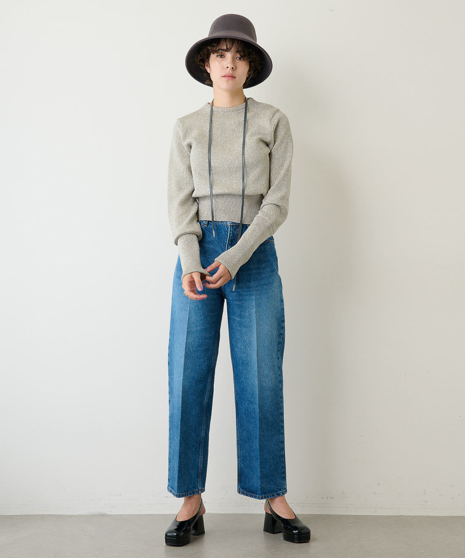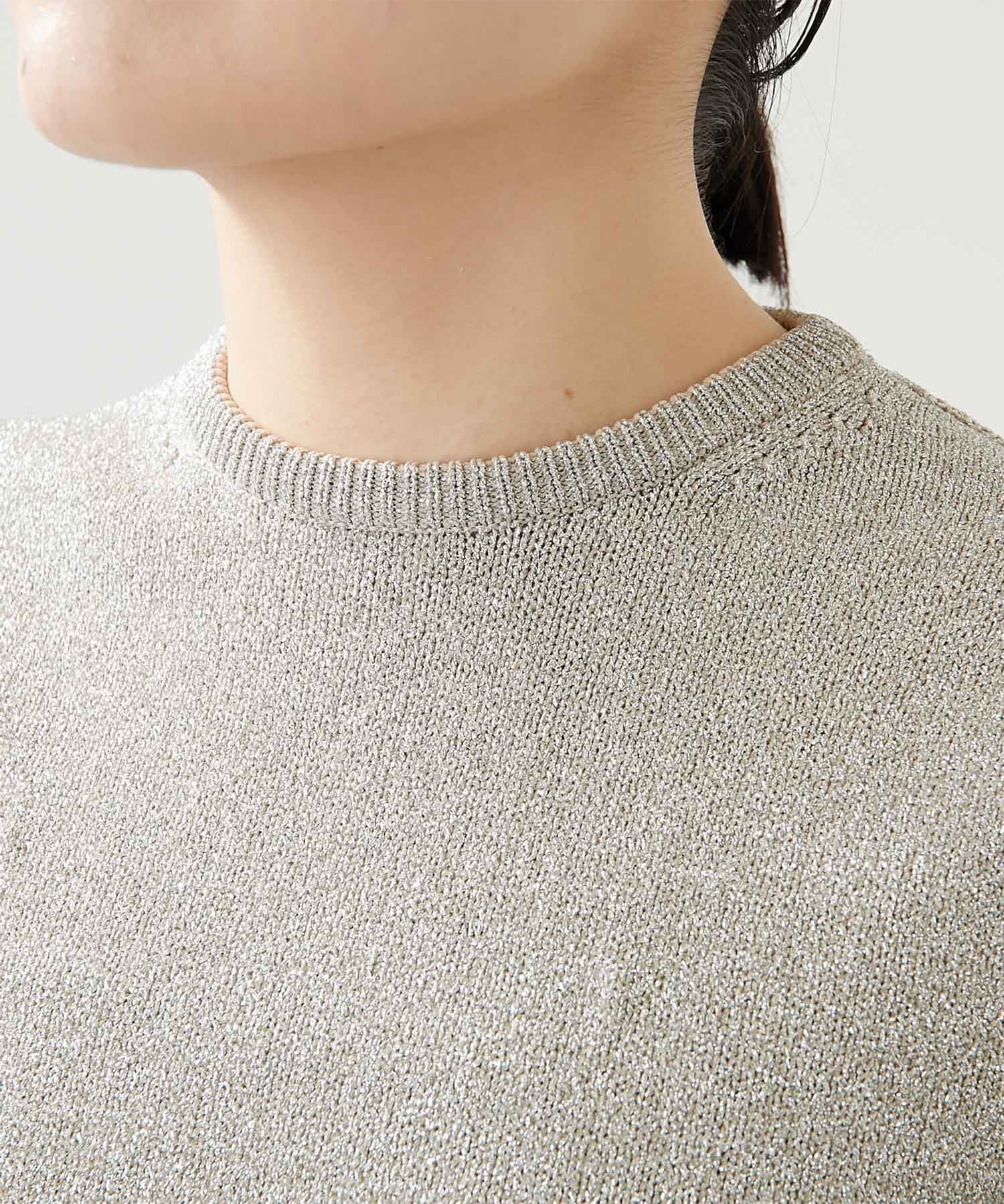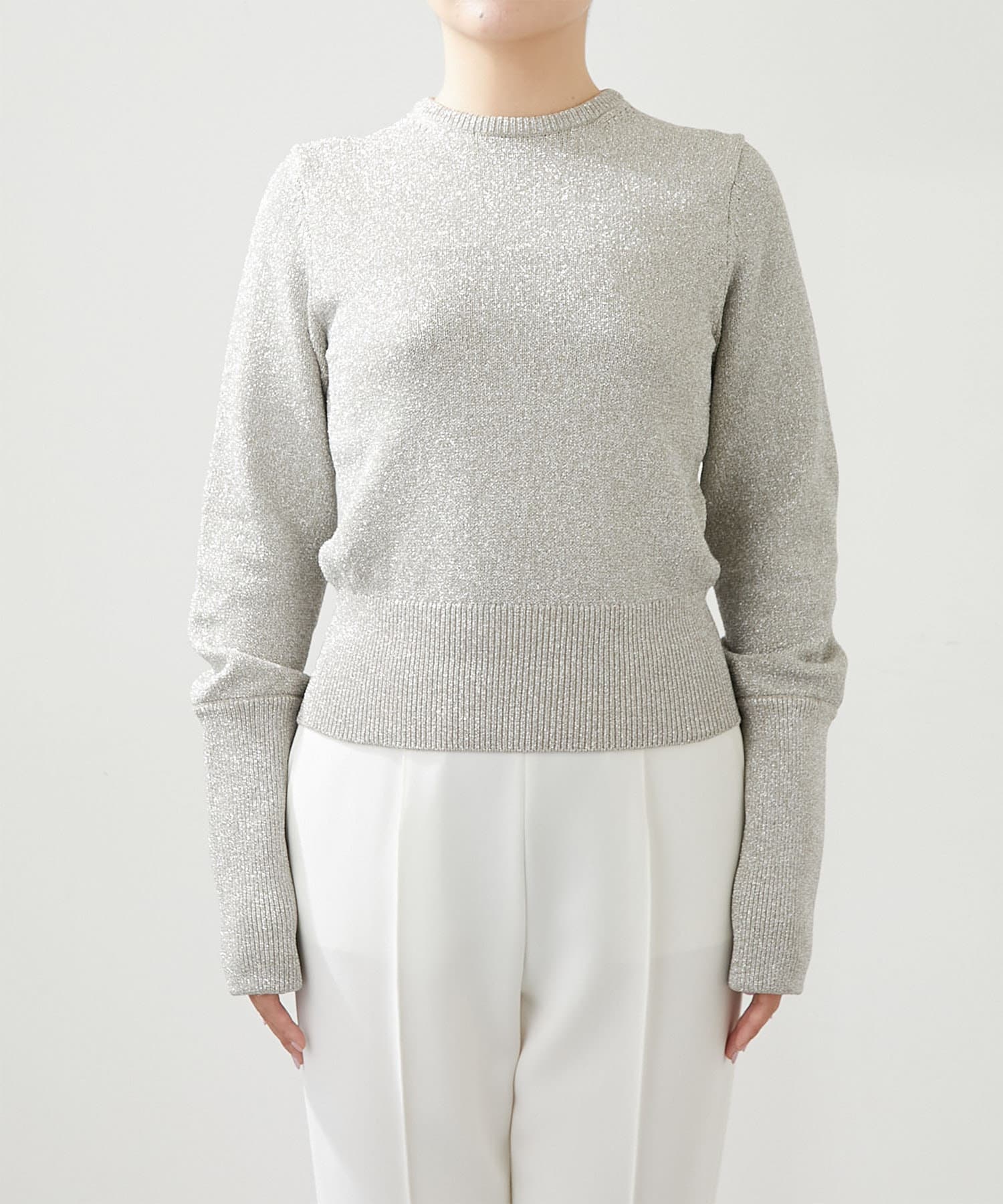 ■ミドルゲージのラメがポイントのニットプルオーバー。