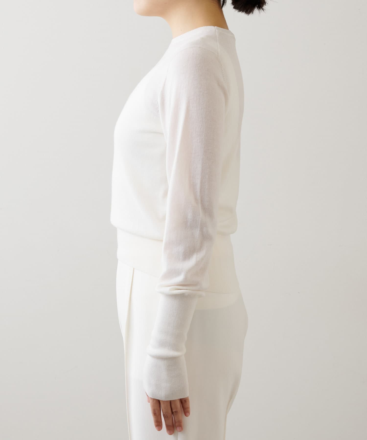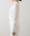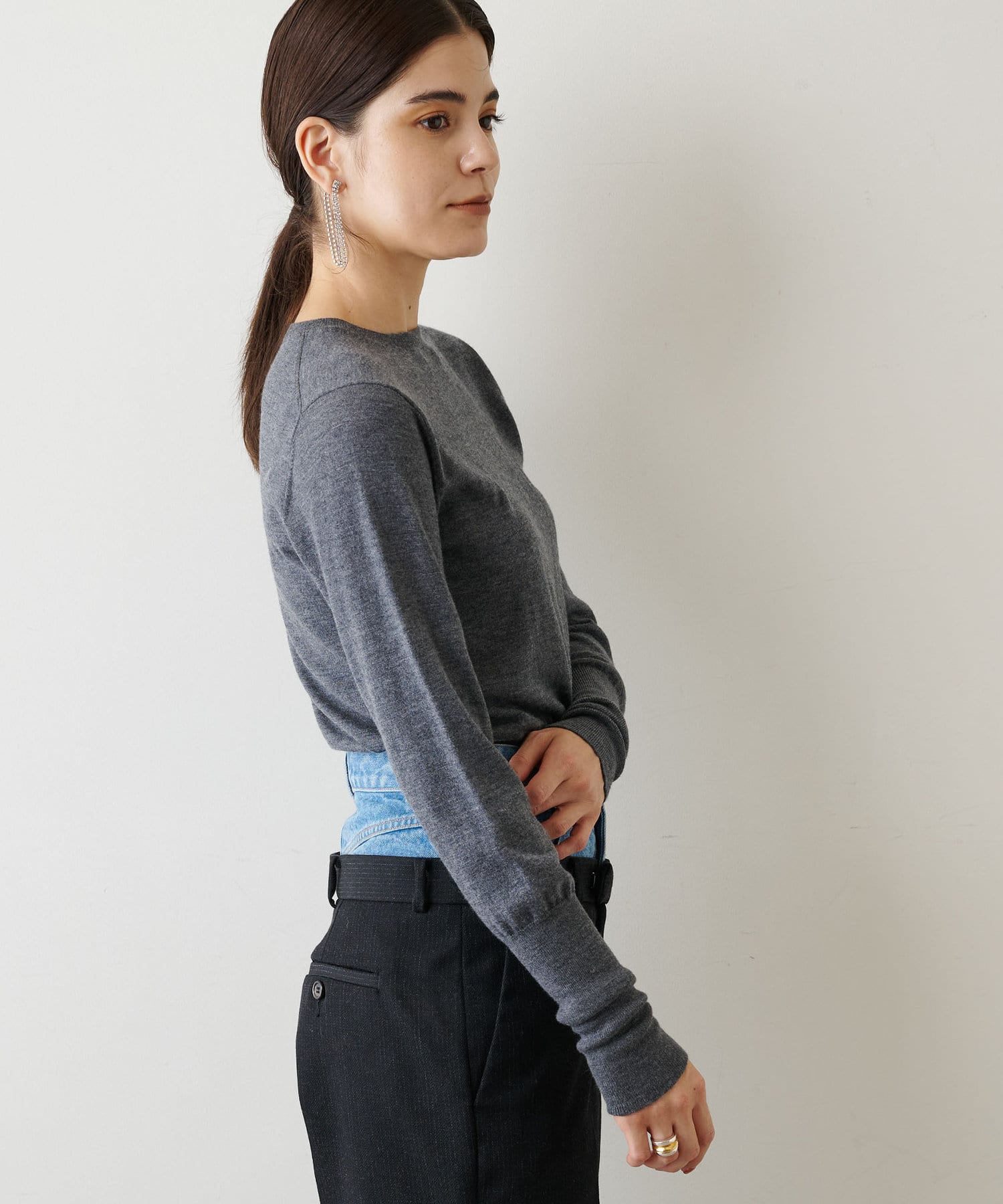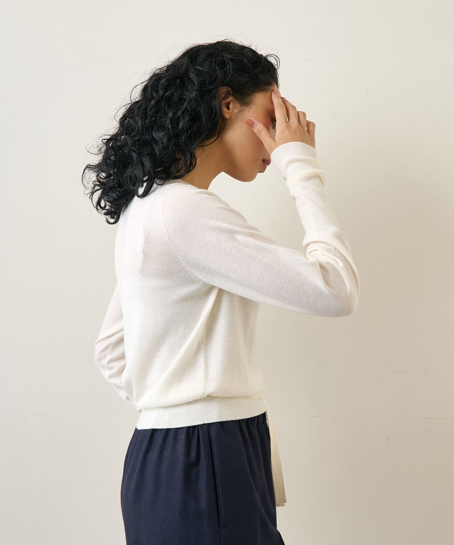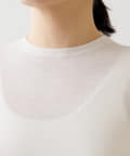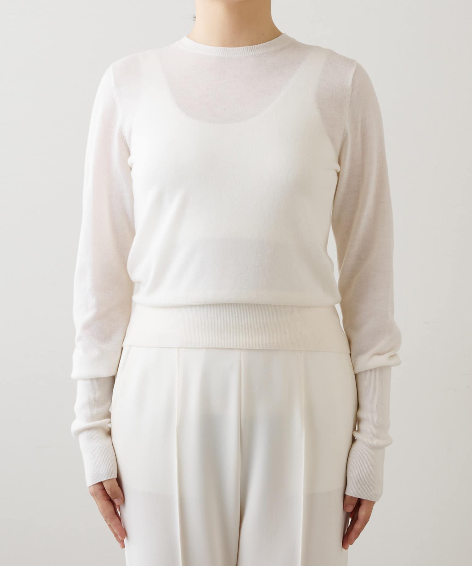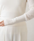 ■さりげないシアー感が美しく、ボディラインに馴染む滑らかな質感が女性らしい一枚。