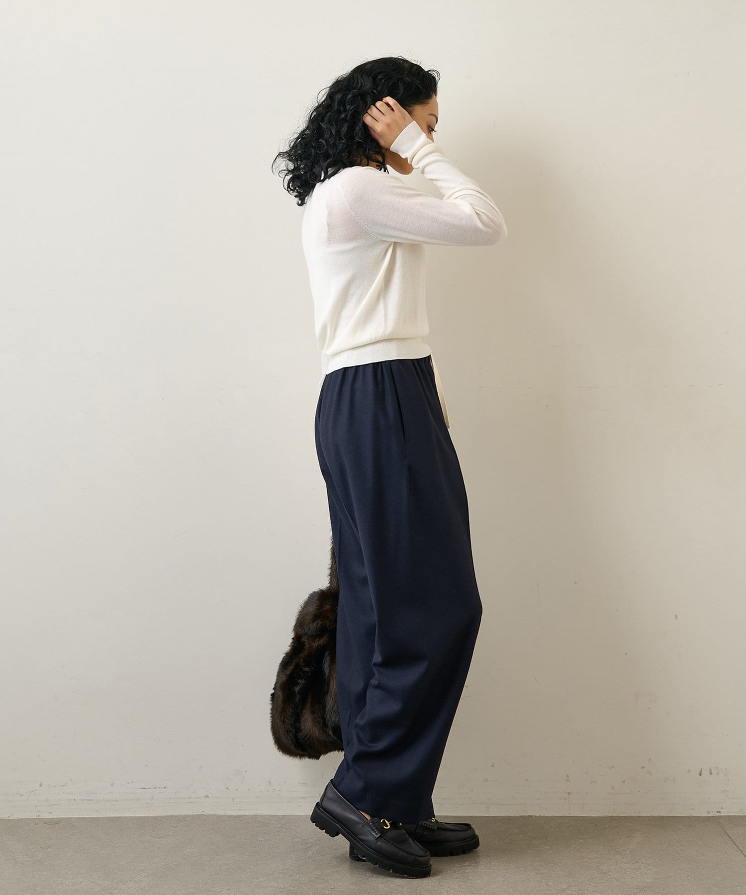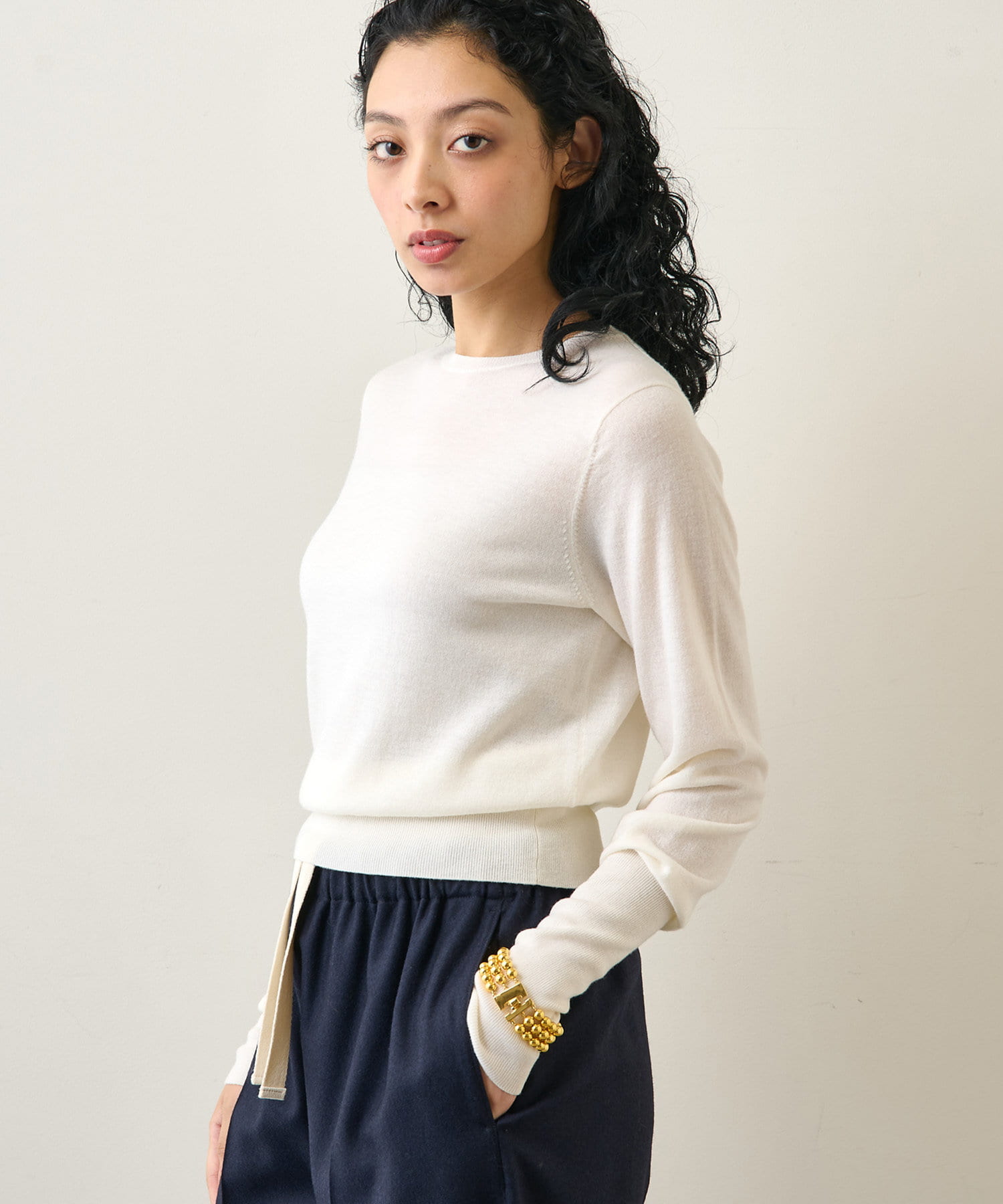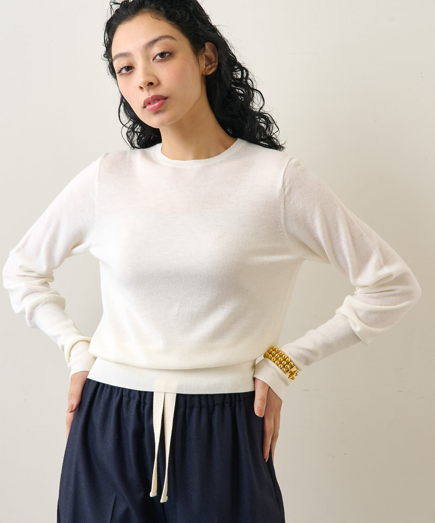 ■フェミニンなスカートやきれいめなパンツ、カジュアルなデニムまで様々なボトムと相性良く着こなせる万能ニット。