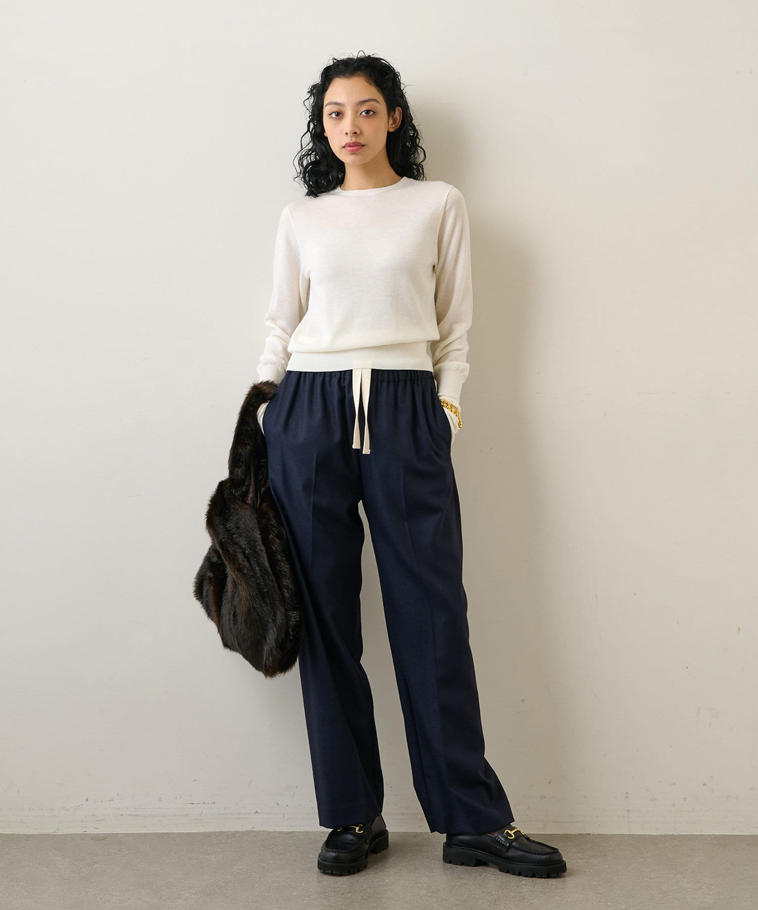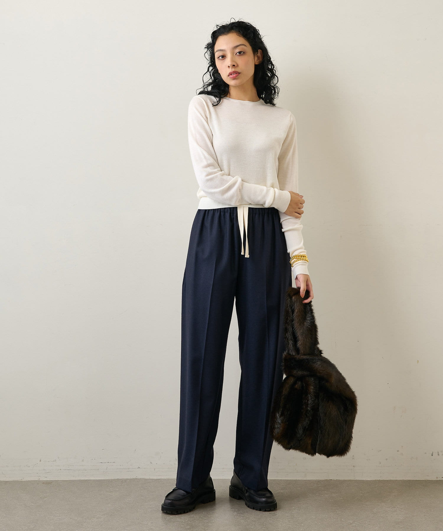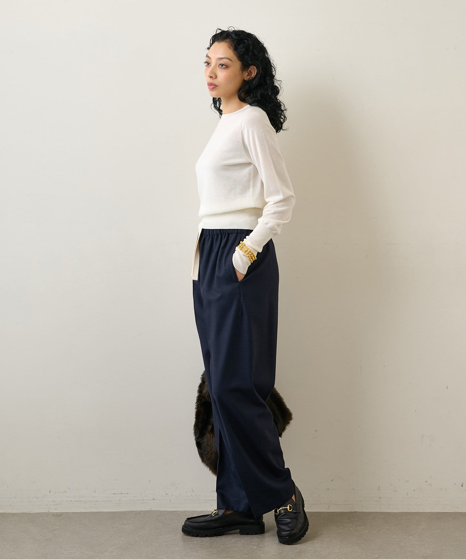 ■フェミニンなスカートやきれいめなパンツ、カジュアルなデニムまで様々なボトムと相性良く着こなせる万能ニット。