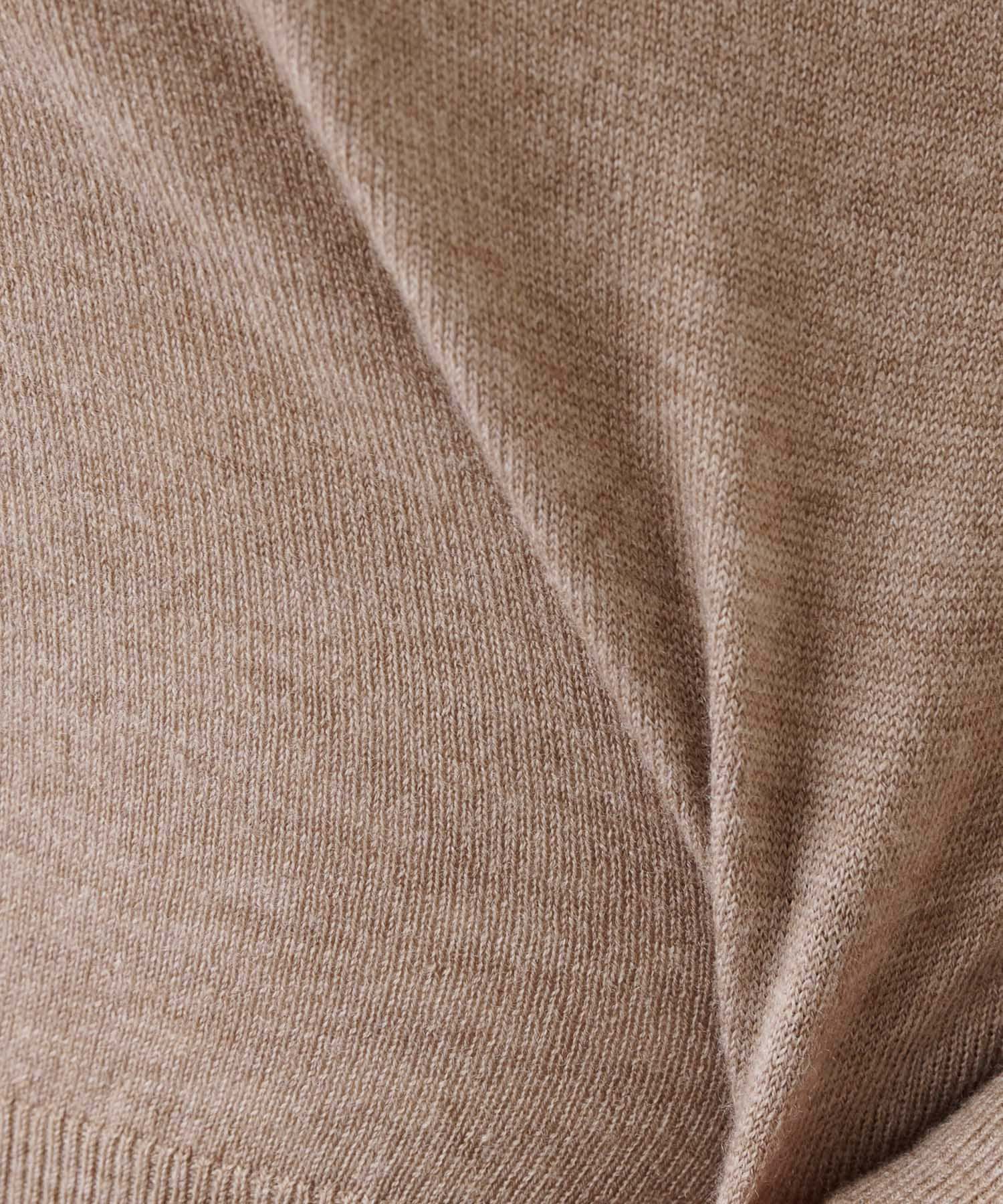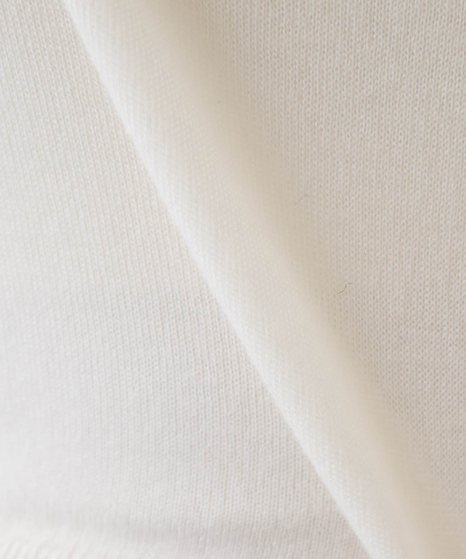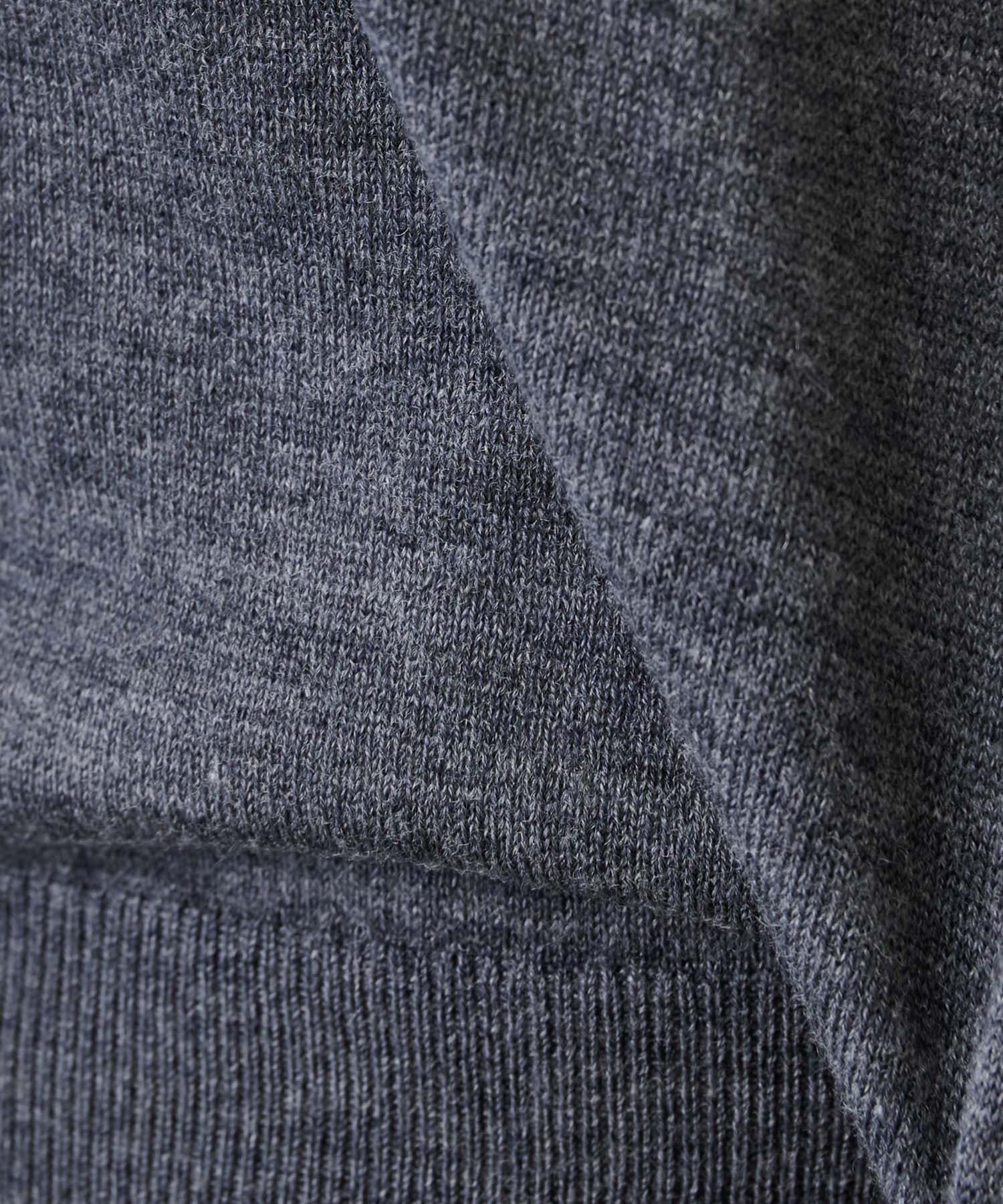 17.5MICのスーパーファイン・メリノを使用したセミ梳毛糸を使用し、マーセライズ加工を施すことで上品な光沢感・ソフトでしなやかな肌触りを持った高品質素材。