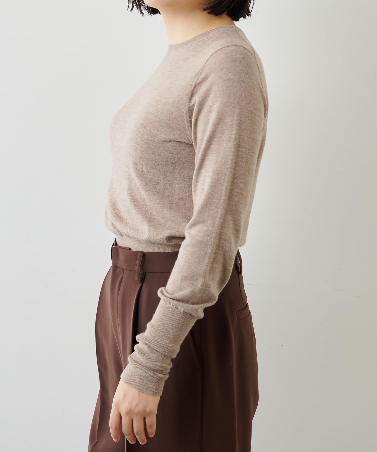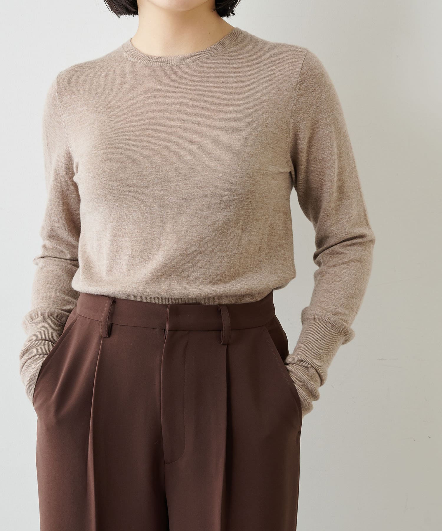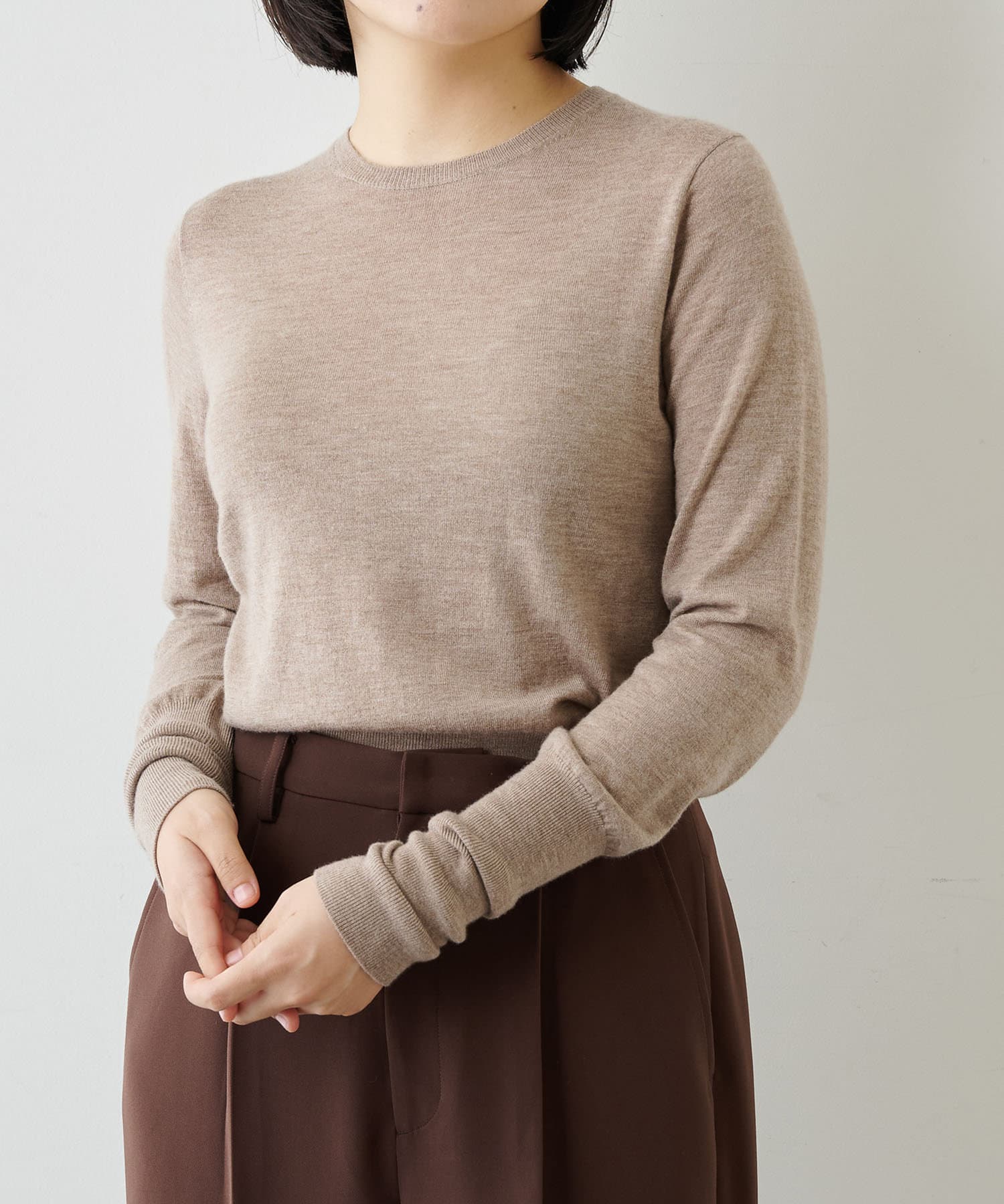 ■すっきりとしたシルエットが洗練された印象のクルーネックニット。