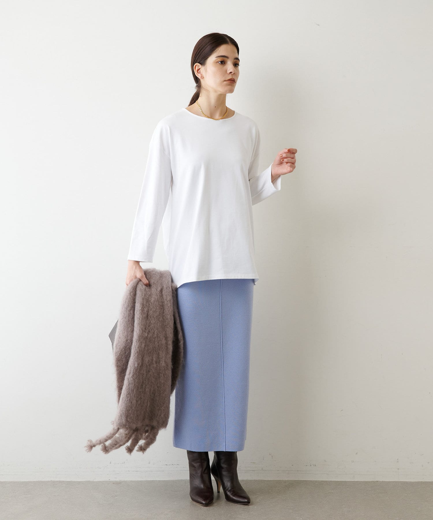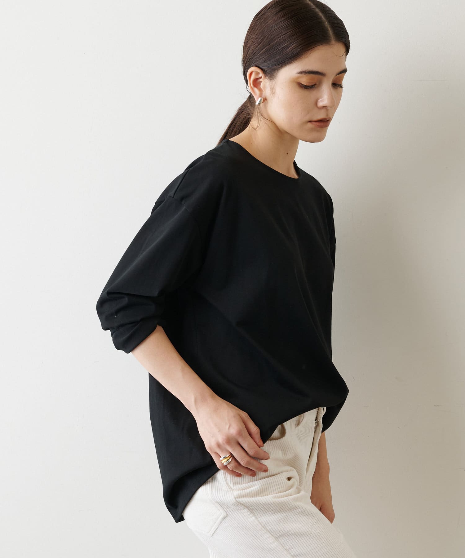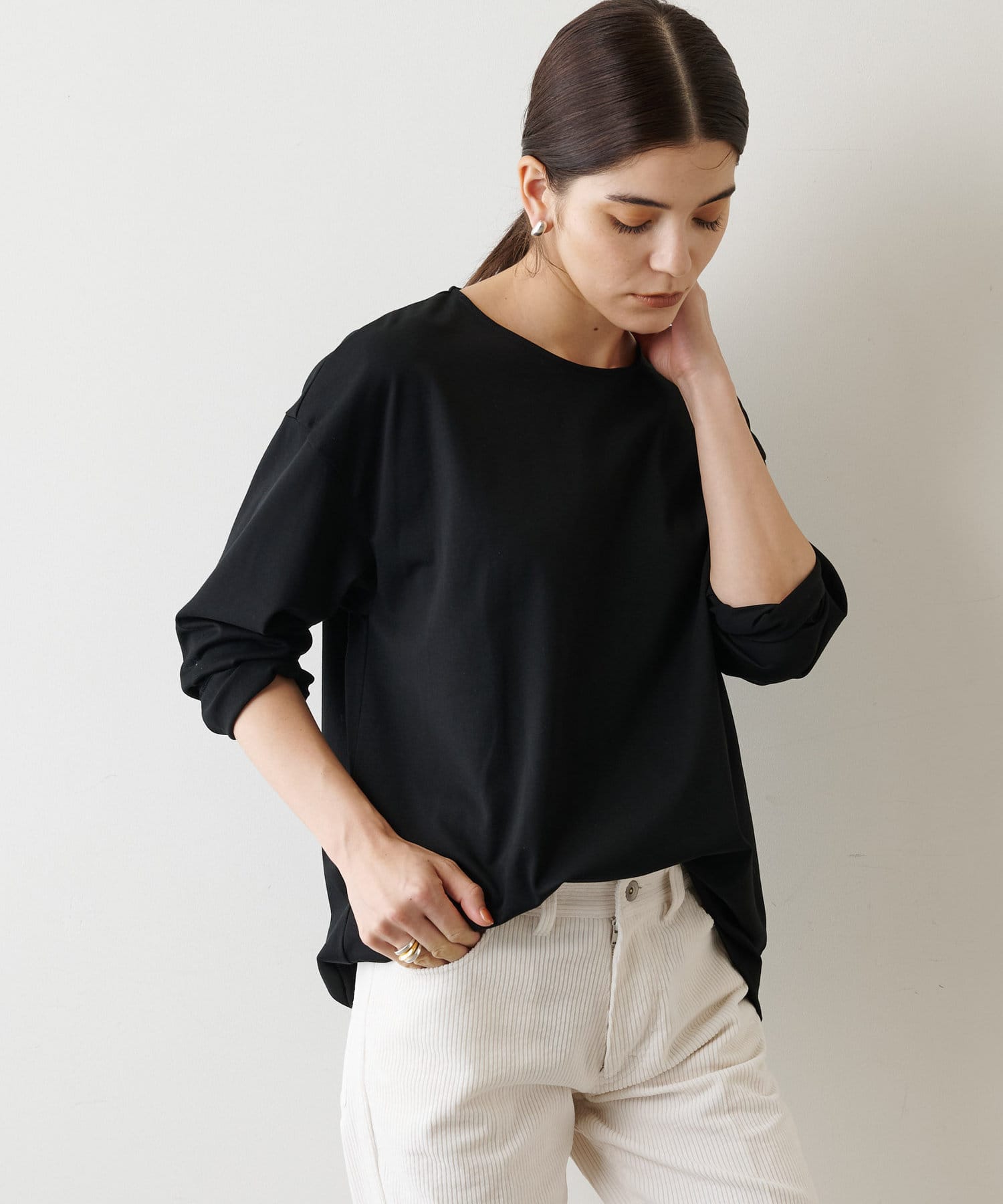 ブラウス感覚で使える、クリーンな表情のシンプルロンT
