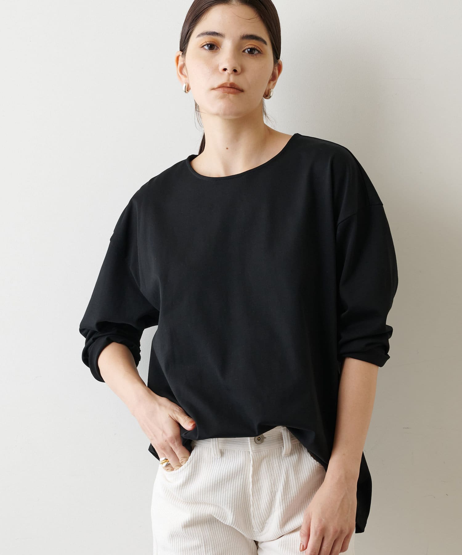 ■ベーシックなデザインがうれしい天竺素材のロングスリーブカットソー。