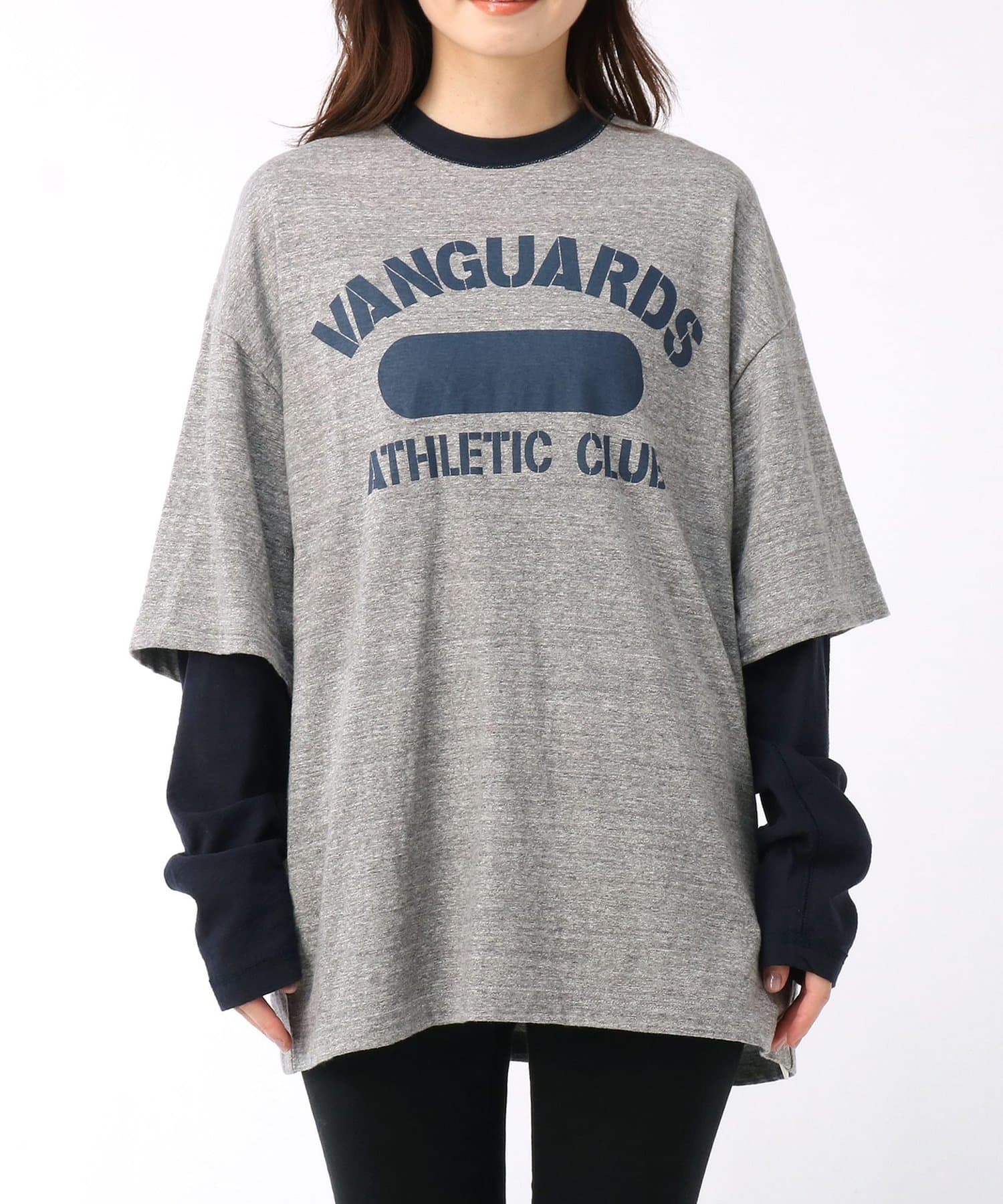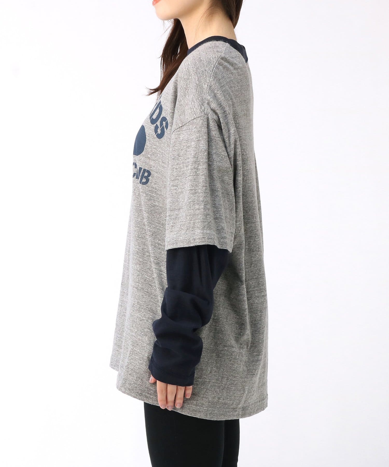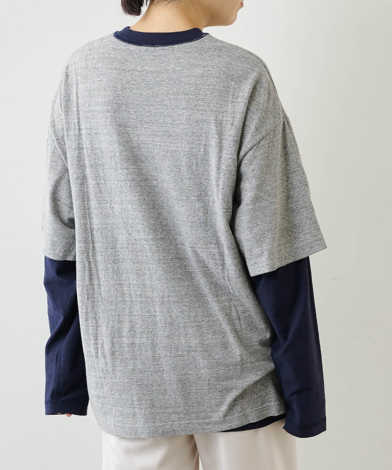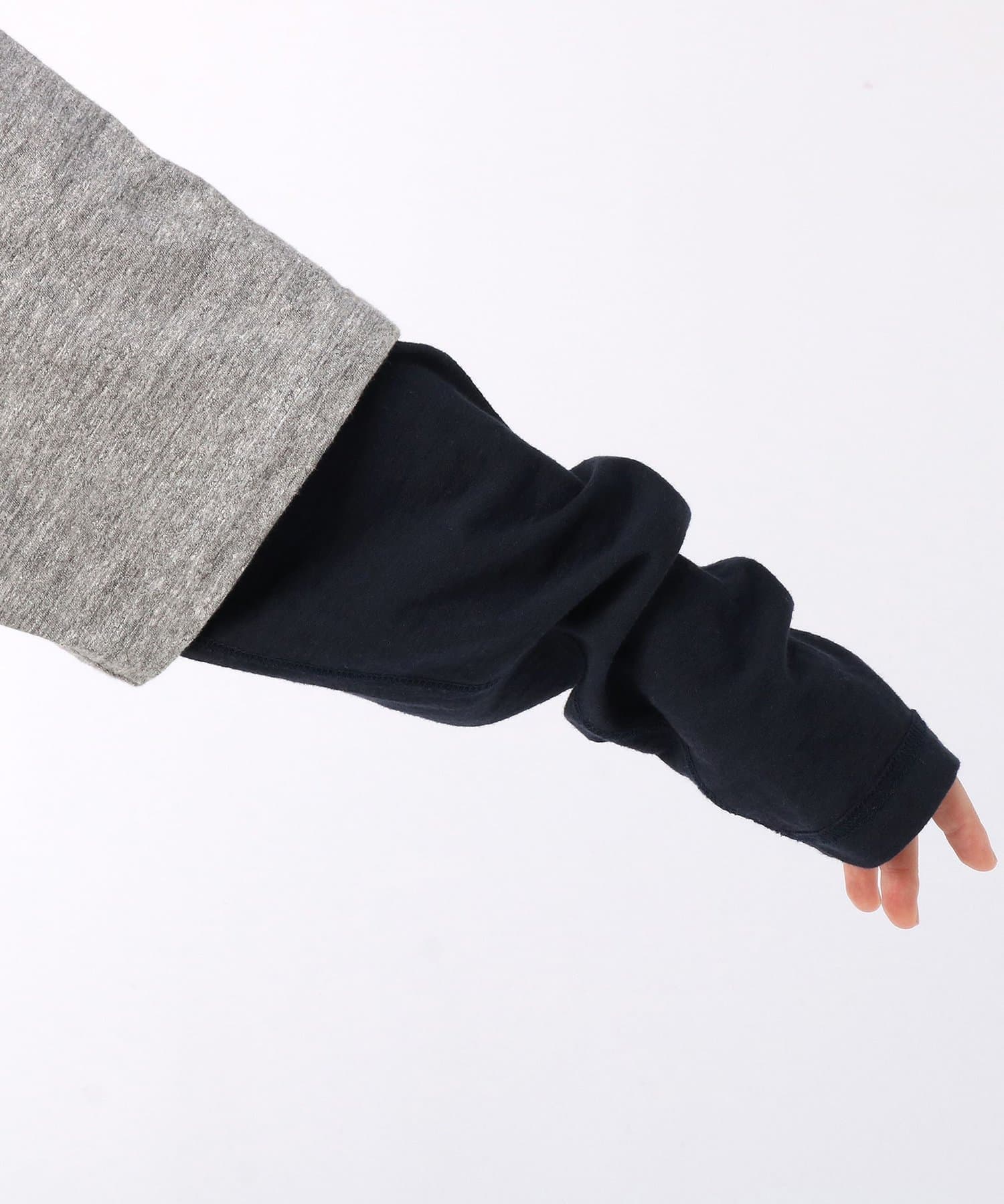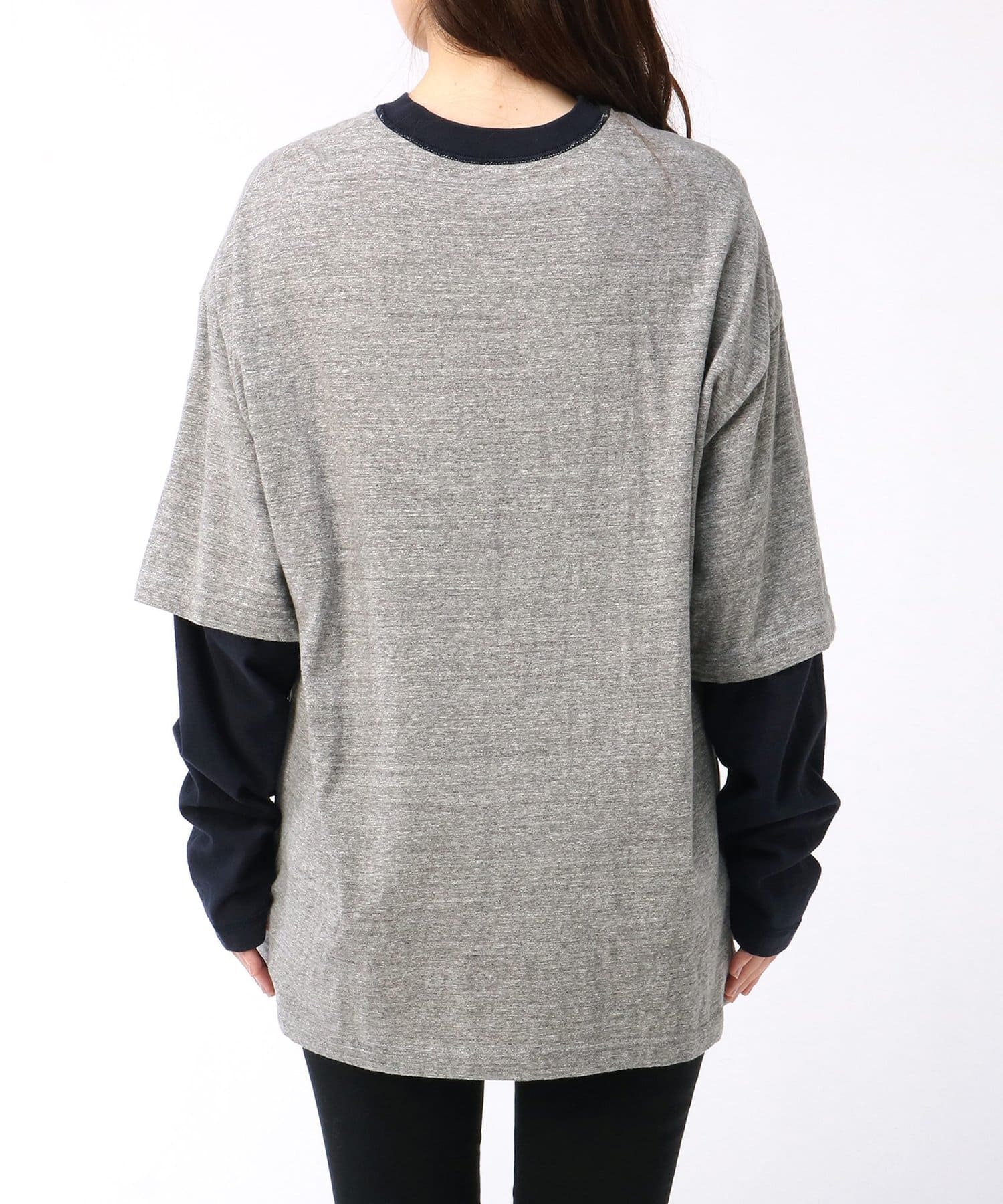 ■TシャツとロンTのレイヤードスタイルが一枚で完成されたユニークな一着。