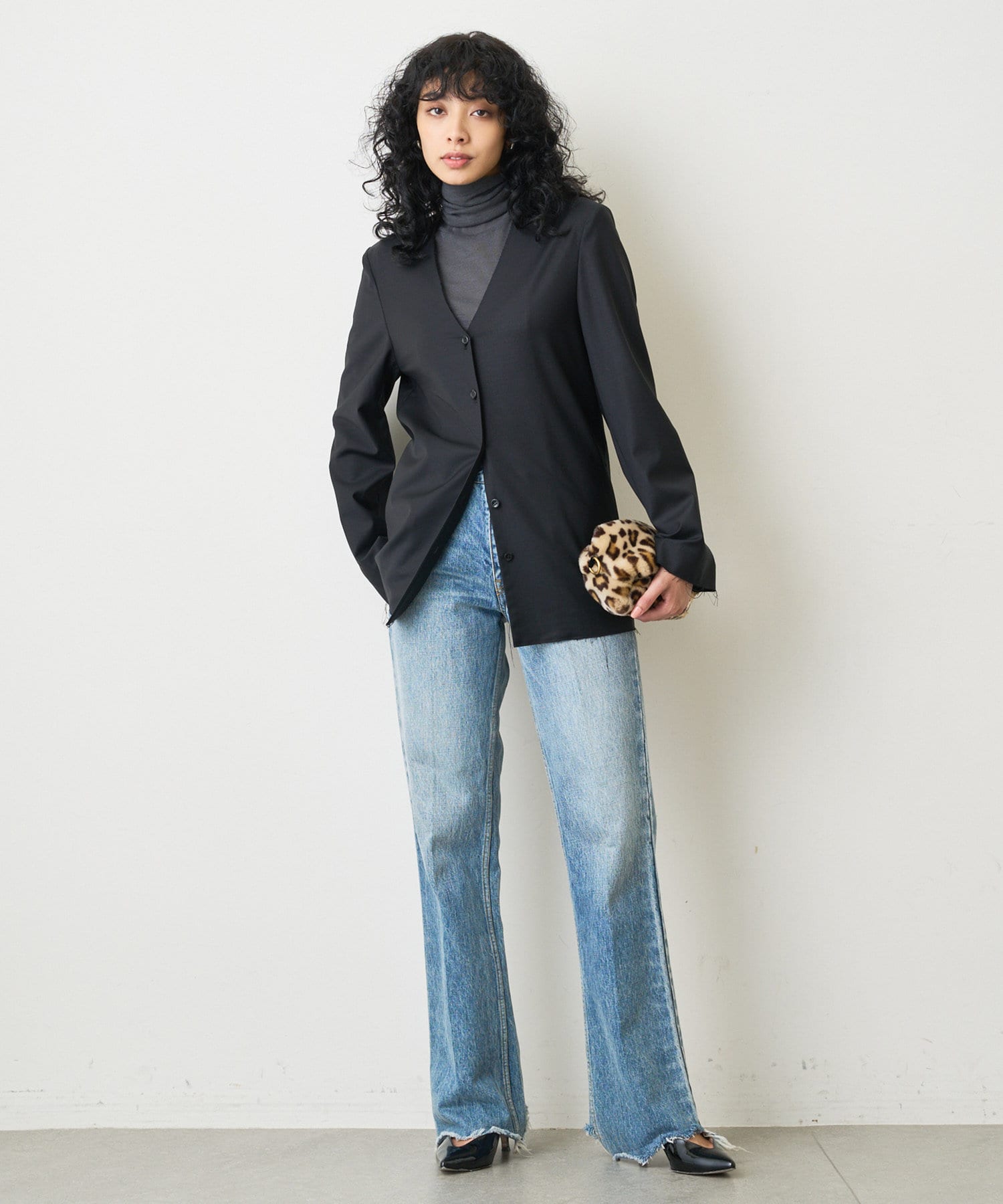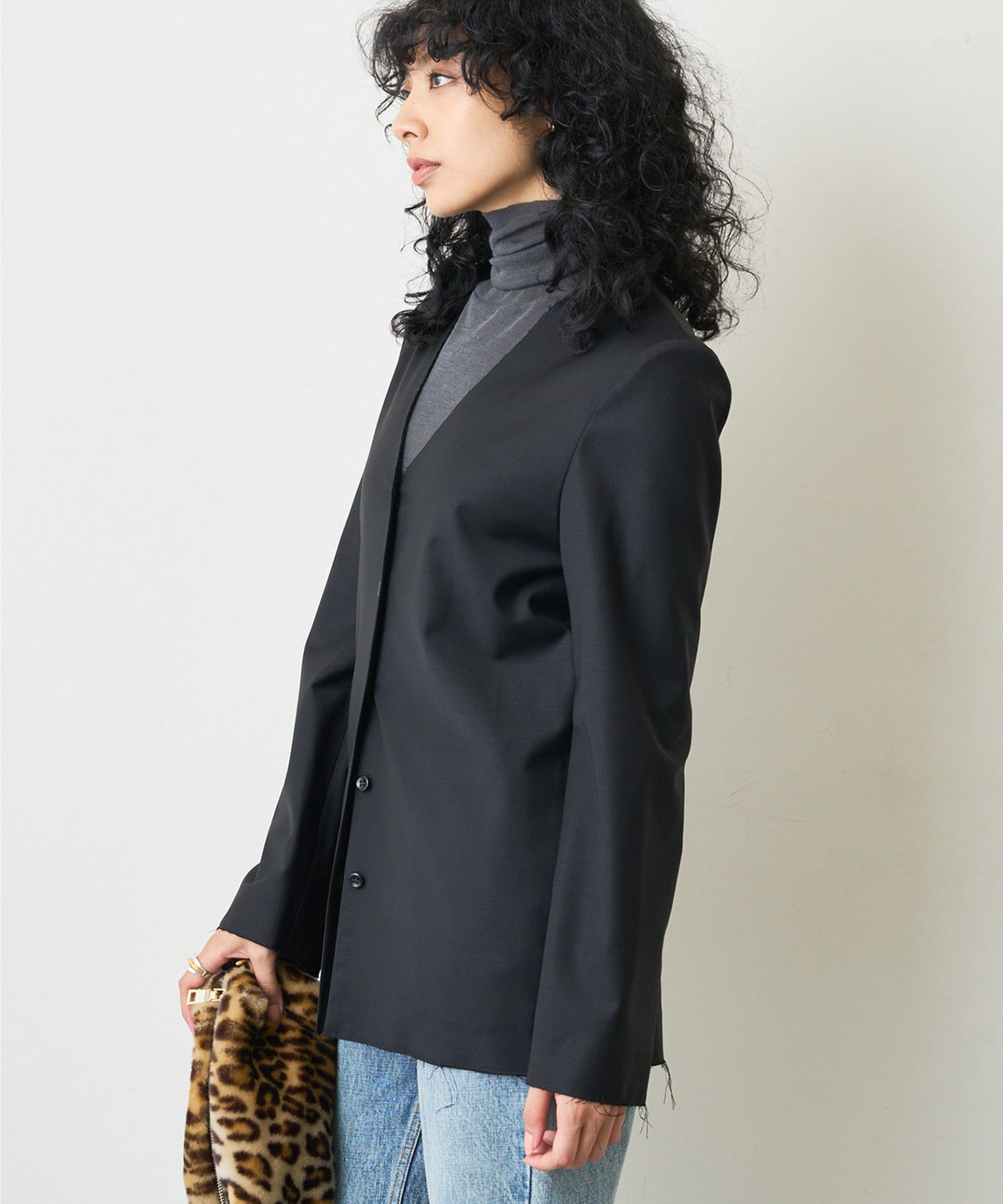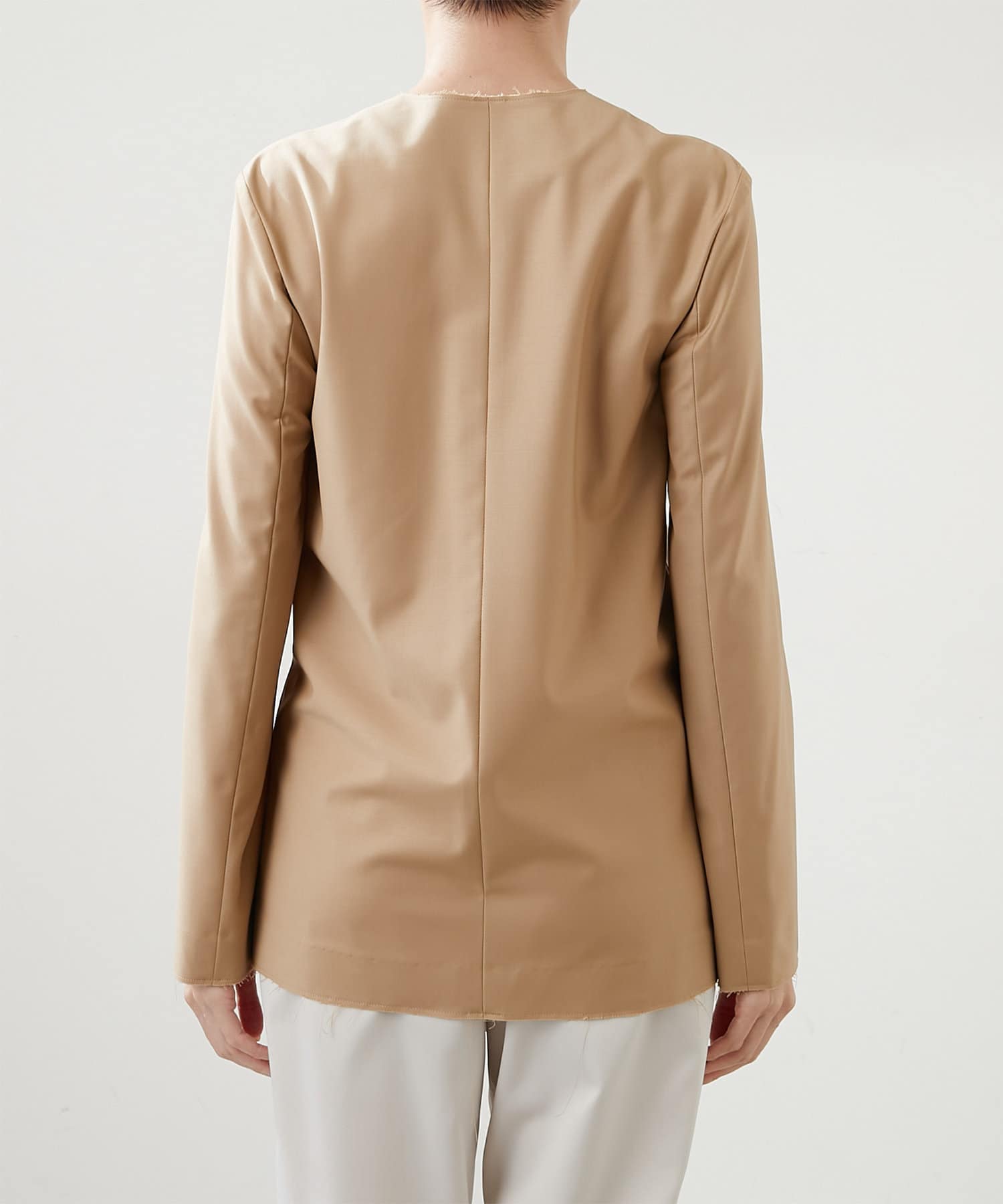 ■衿回り・袖口・裾を断ち切りにすることで表情を出し抜け感をプラス。