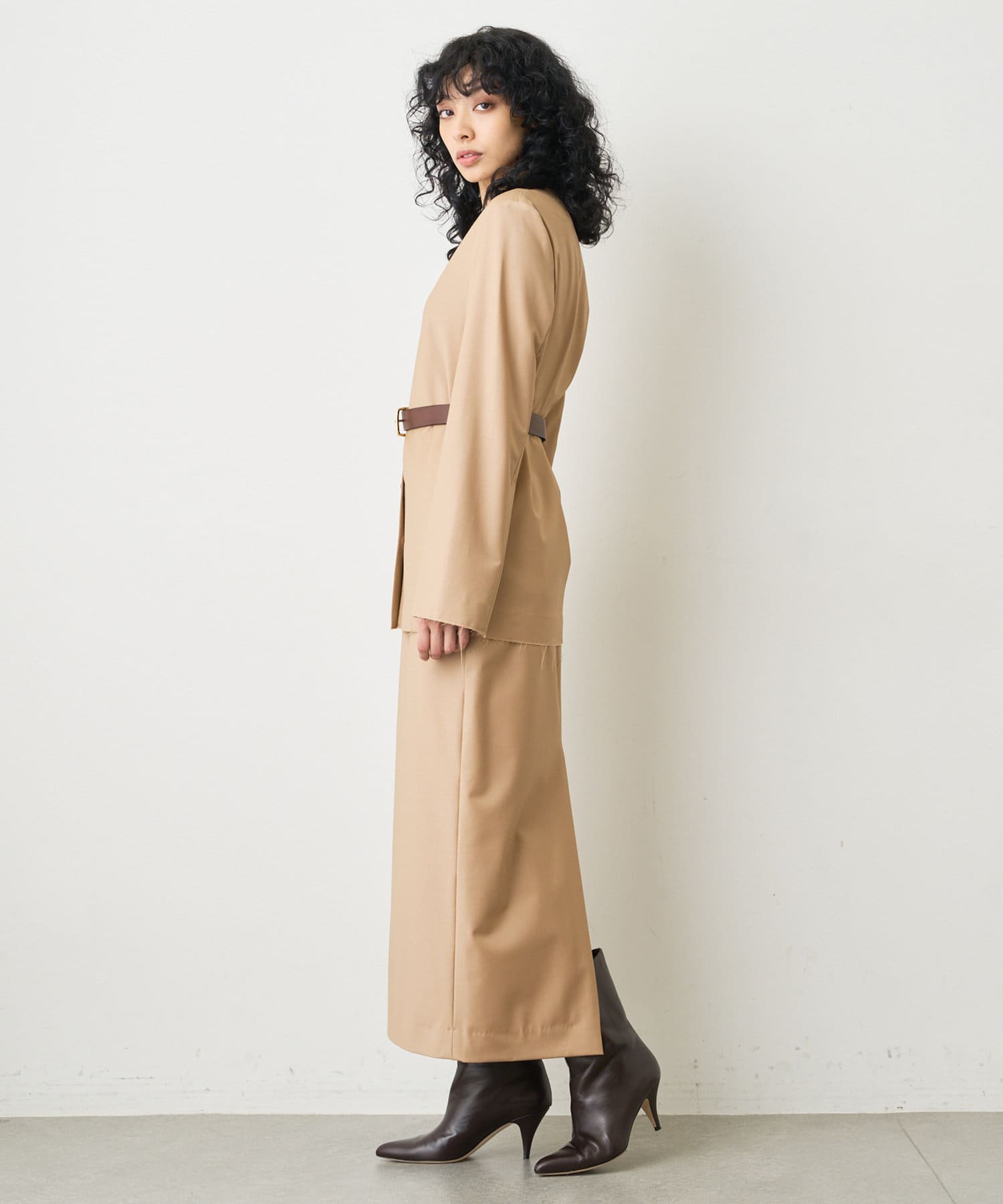 ■同素材のウールスリットスカート(ブランド品番:WGZ1022201A0008)とセットアップで楽しむのもおすすめ。
