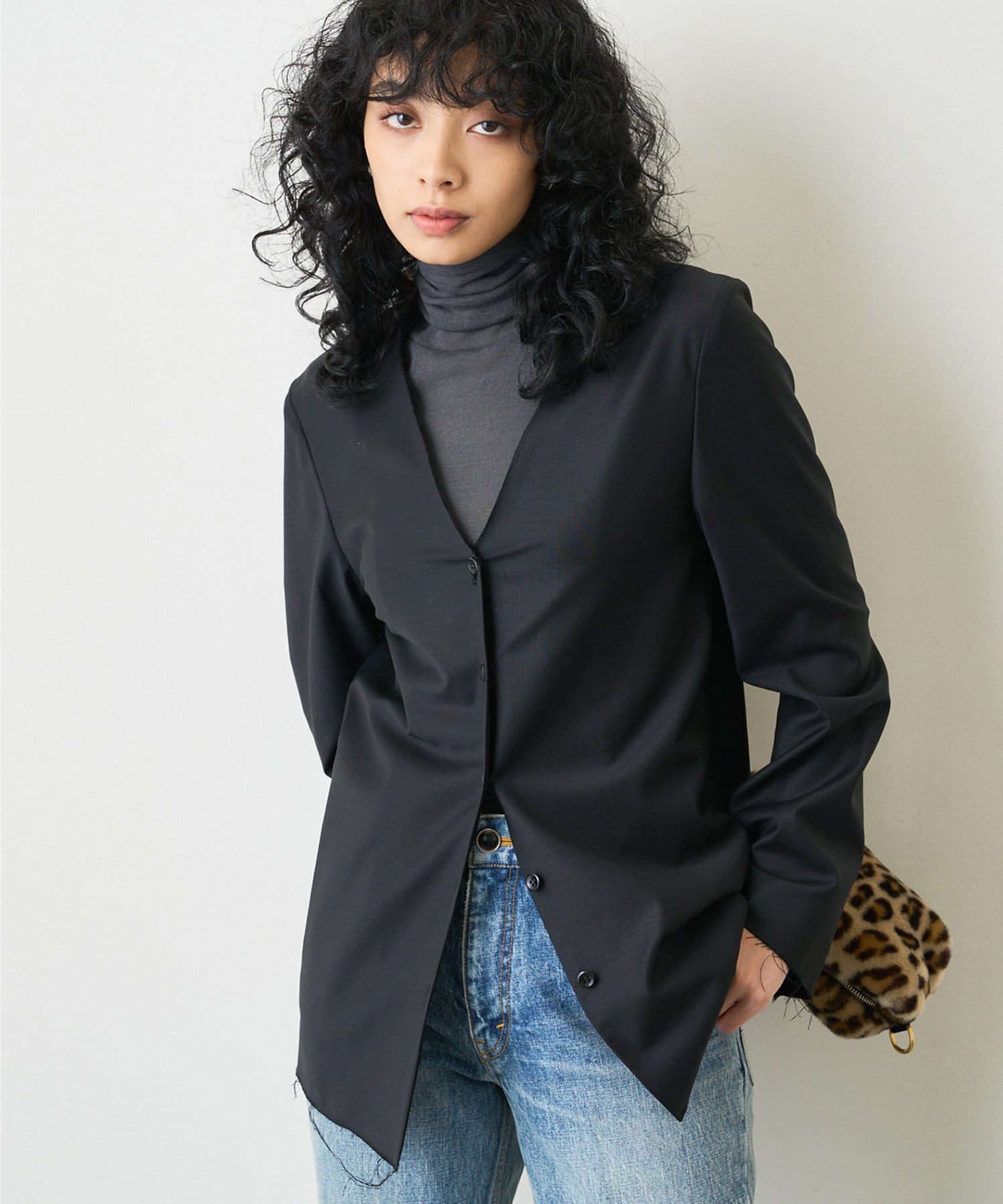 ■ややコンパクトなシルエットながらストレッチ性があり、カーディガン感覚でイージーに着用出来るアイテム。