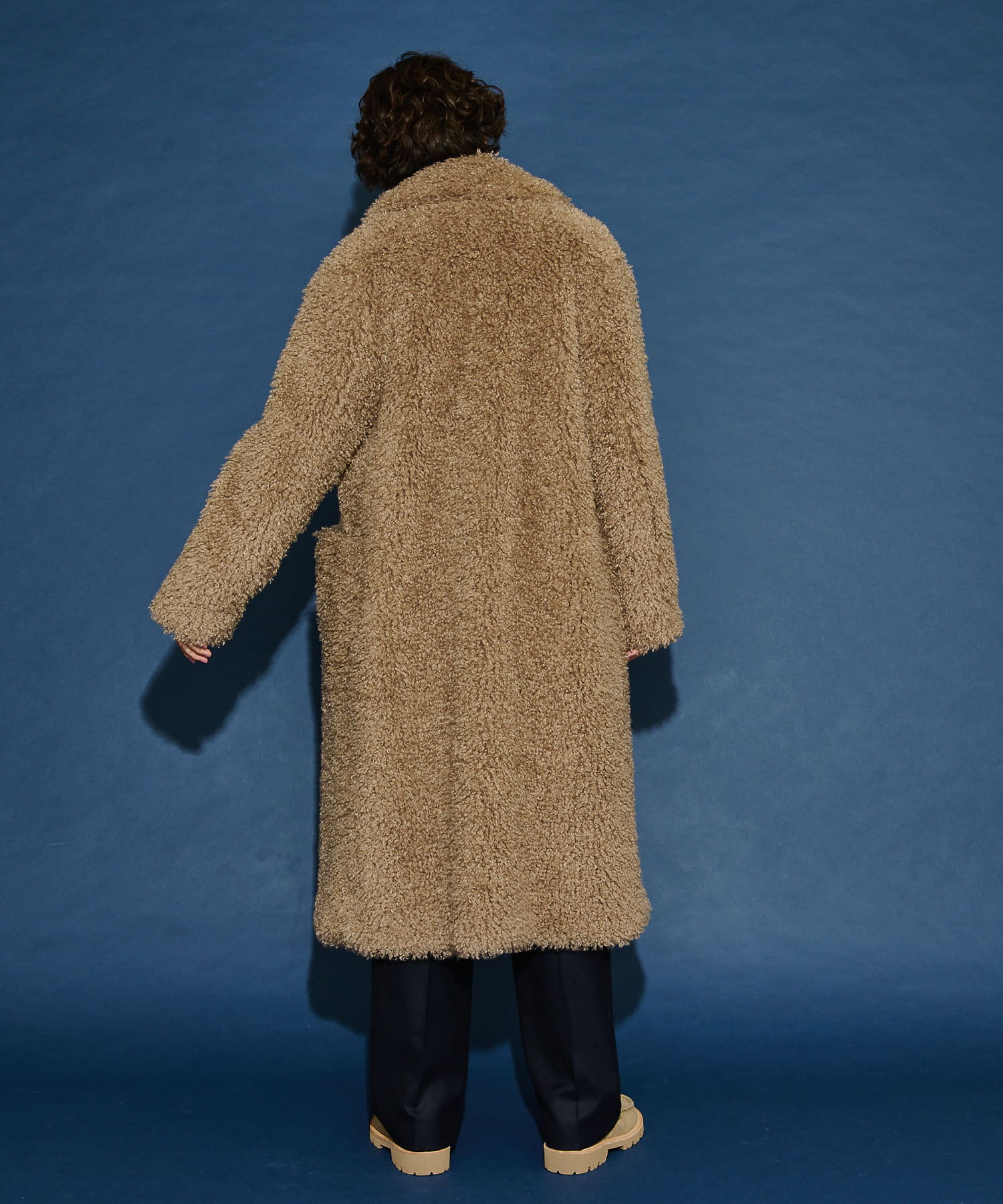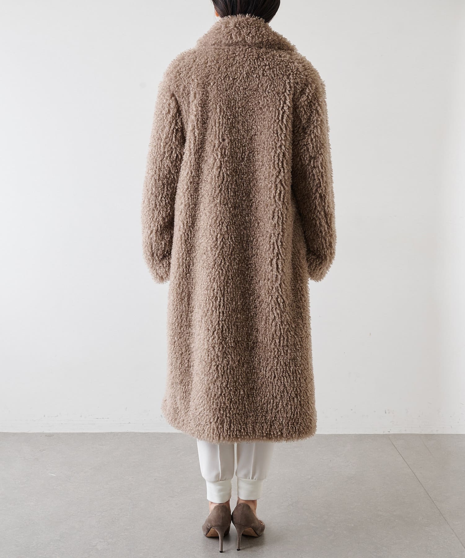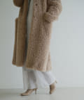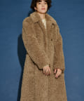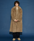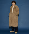 ■毛皮のようなリッチ感のあるエコファーで贅沢に仕立てたロングコート。