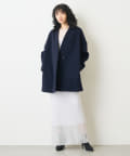 ■リラックス感のあるドロップショルダーに、着ぶくれせずにすっきりと見えるシルエットが美しく、短めの着丈がライトな印象。