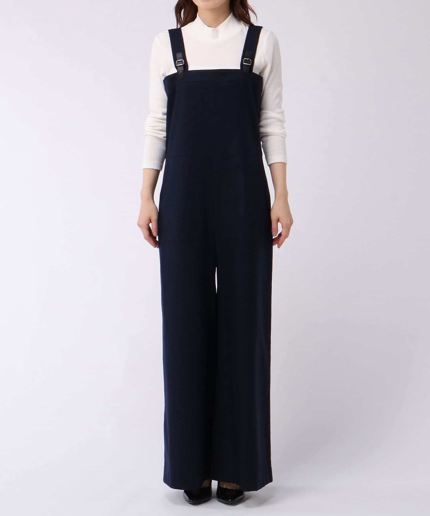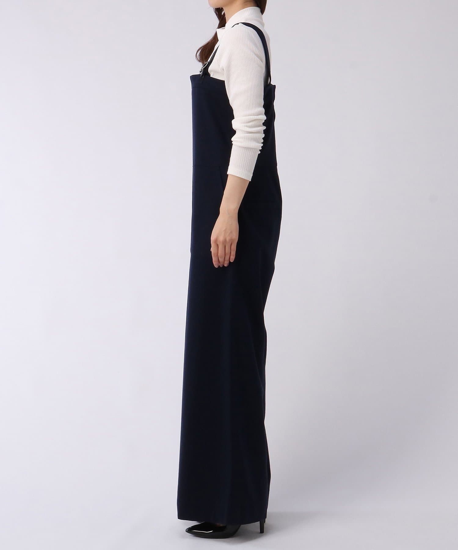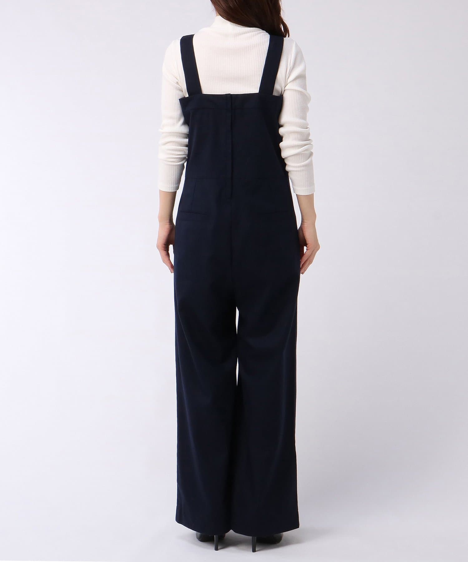 ■裾に向かって緩やかに広がるワイドシルエットが特徴のオールインワン。