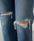 ■やや洗いをかけた風合いや膝のダメージ加工がヴィンテージ感をプラス。