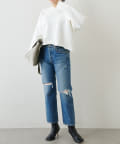 ■太すぎず細すぎない程よい幅感のストレートデニムパンツ。
