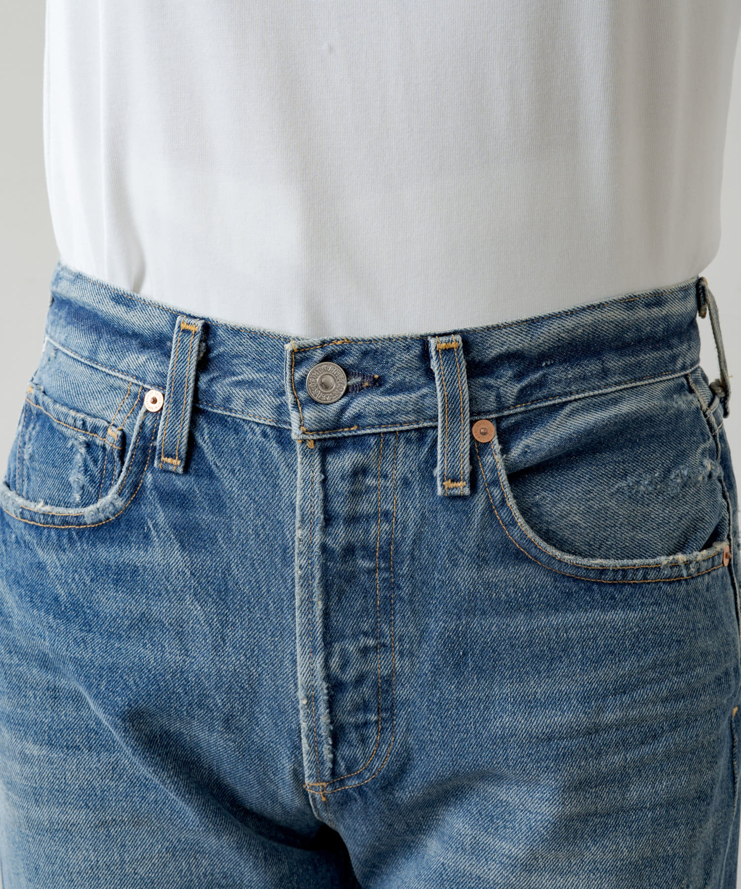 ヴィンテージライクなウォッシュ加工がこなれ感を演出するブルー。