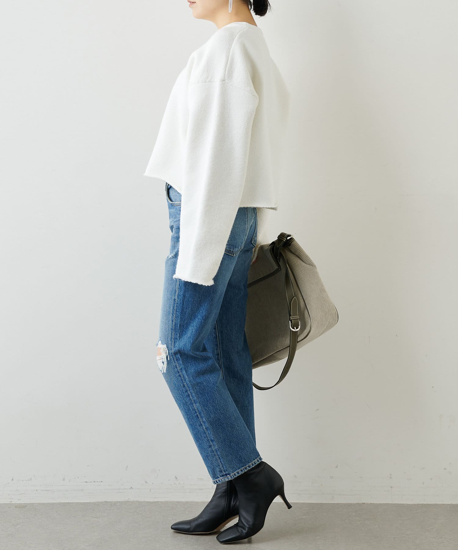 ■足首が見えるクロップド丈は様々なシューズに合わせやすく、ブーツとも相性抜群。