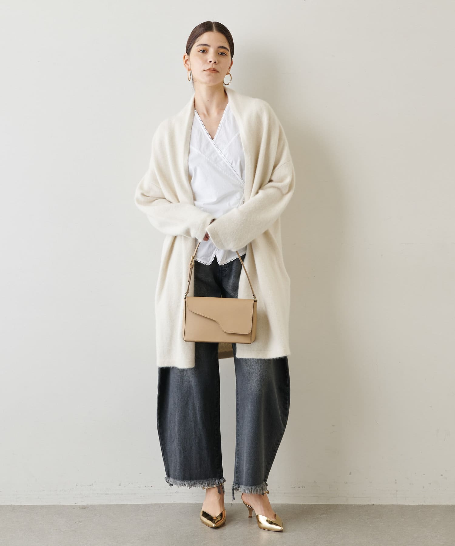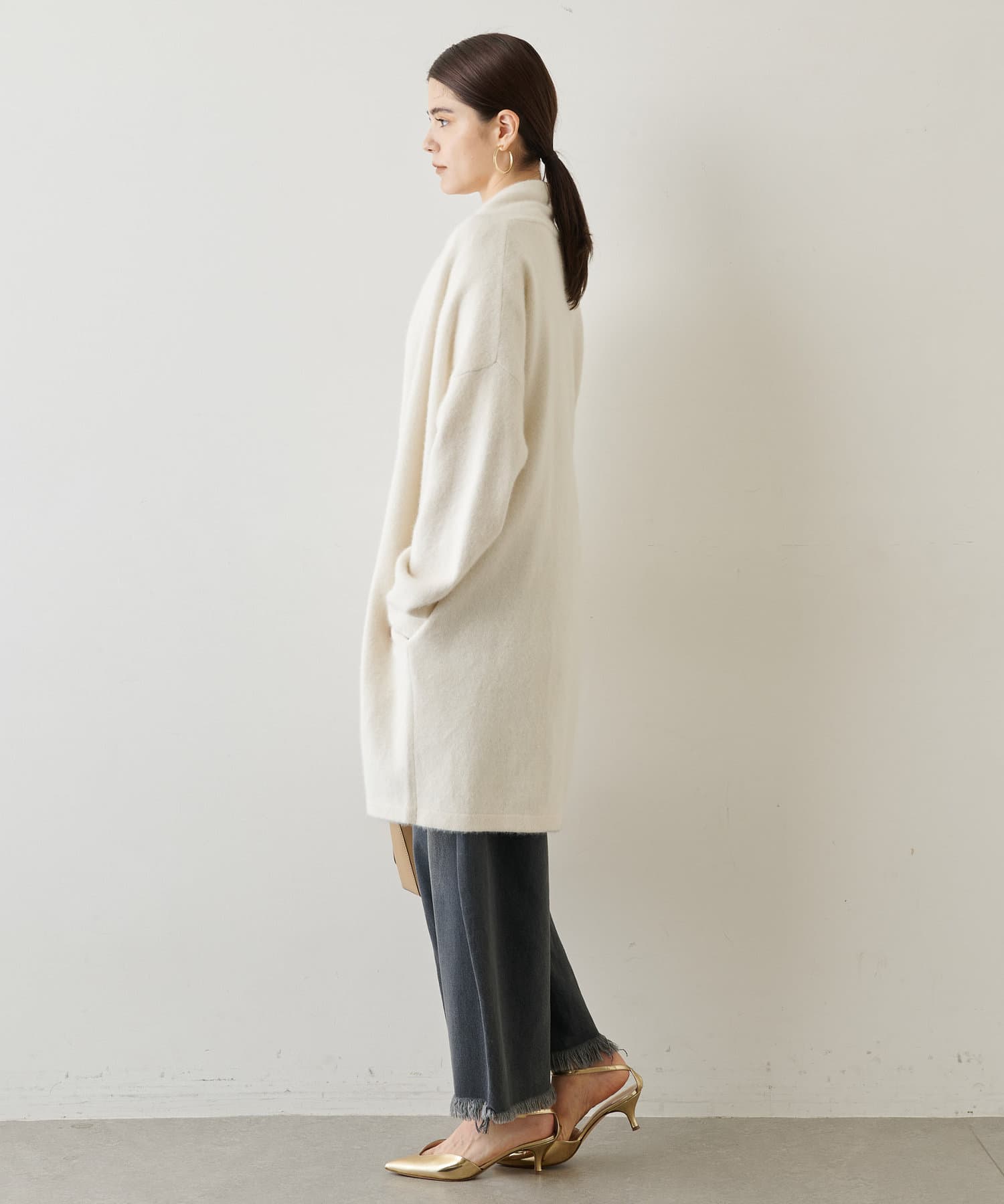 ■留めのないオープンフロントデザインがすっきりとした印象で、さらりと羽織るだけで様になるデザイン。