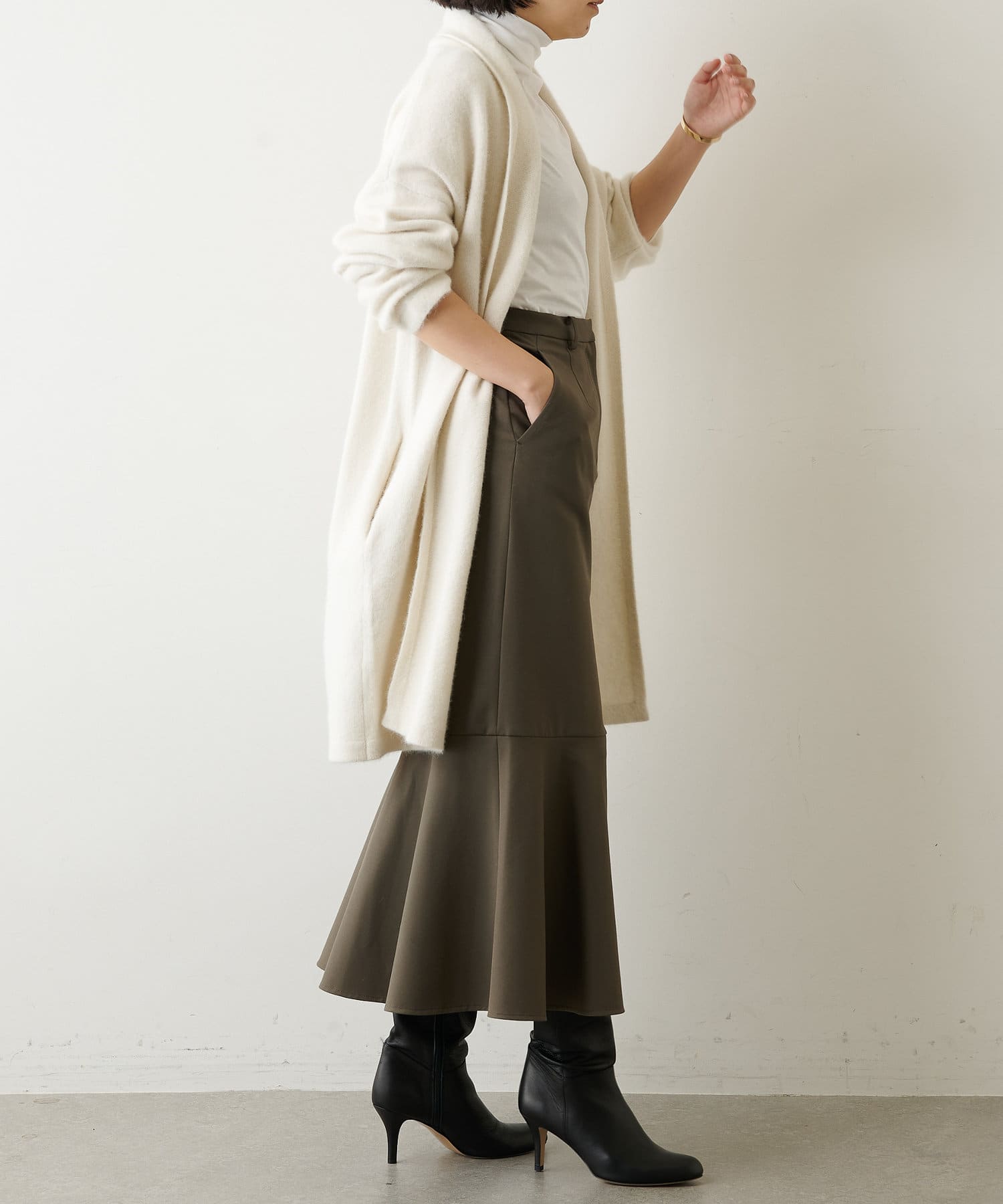 ■サイドにポケットのついた実用的なカーディガンは、季節の変わり目のライトアウターとしてもおすすめ。
