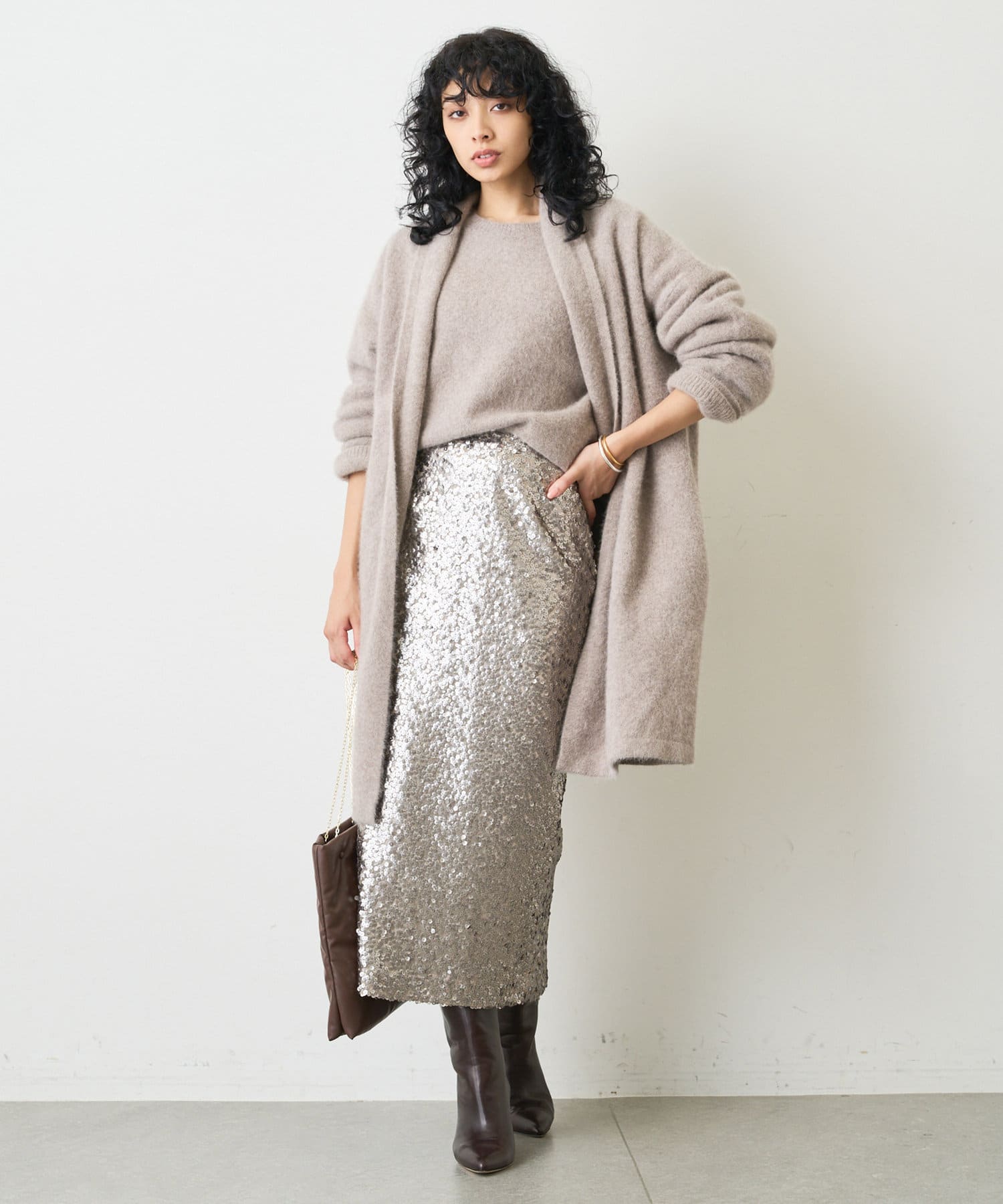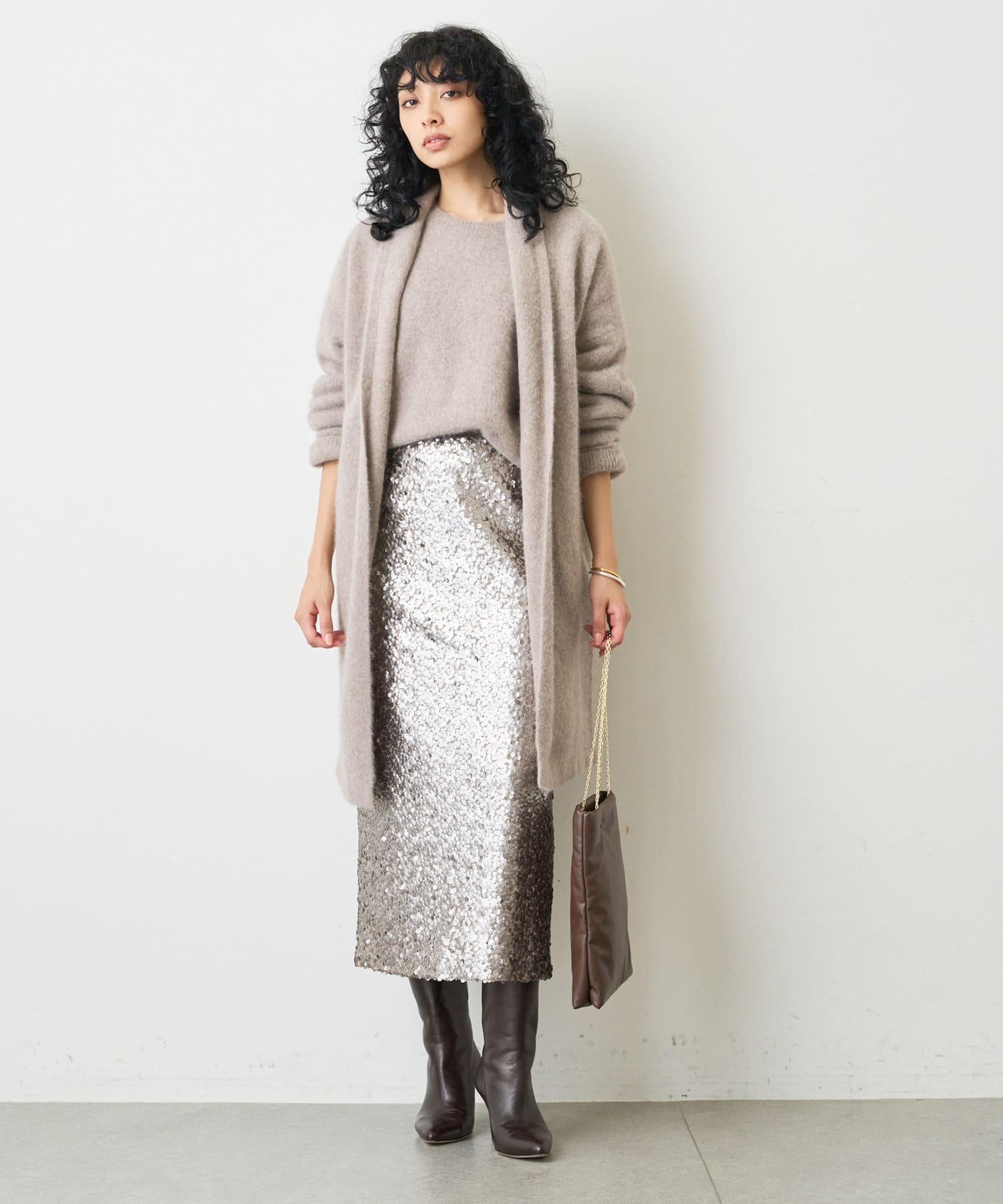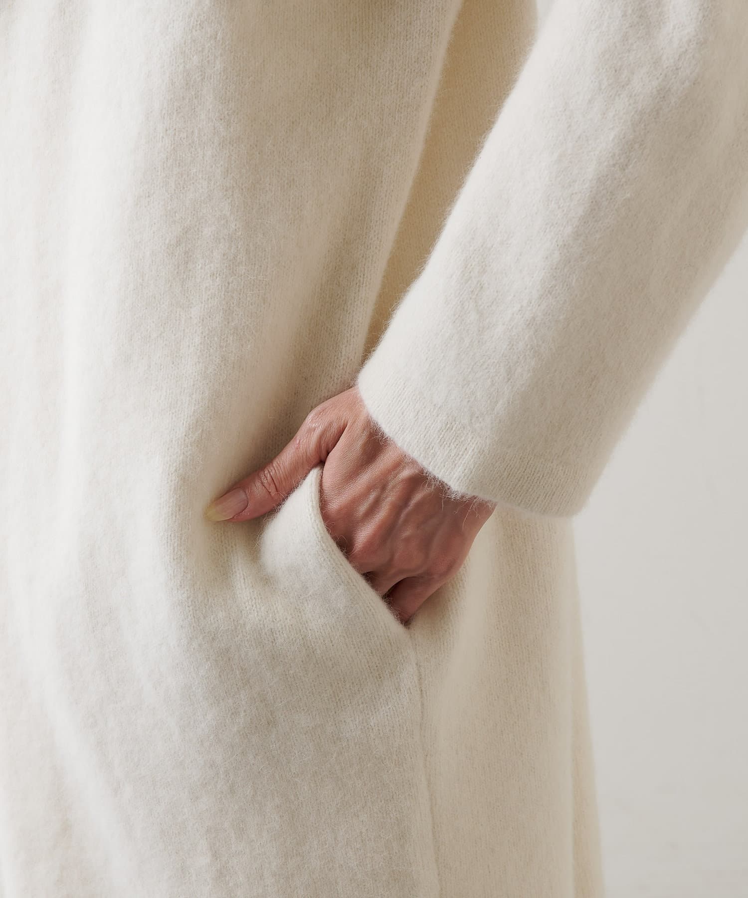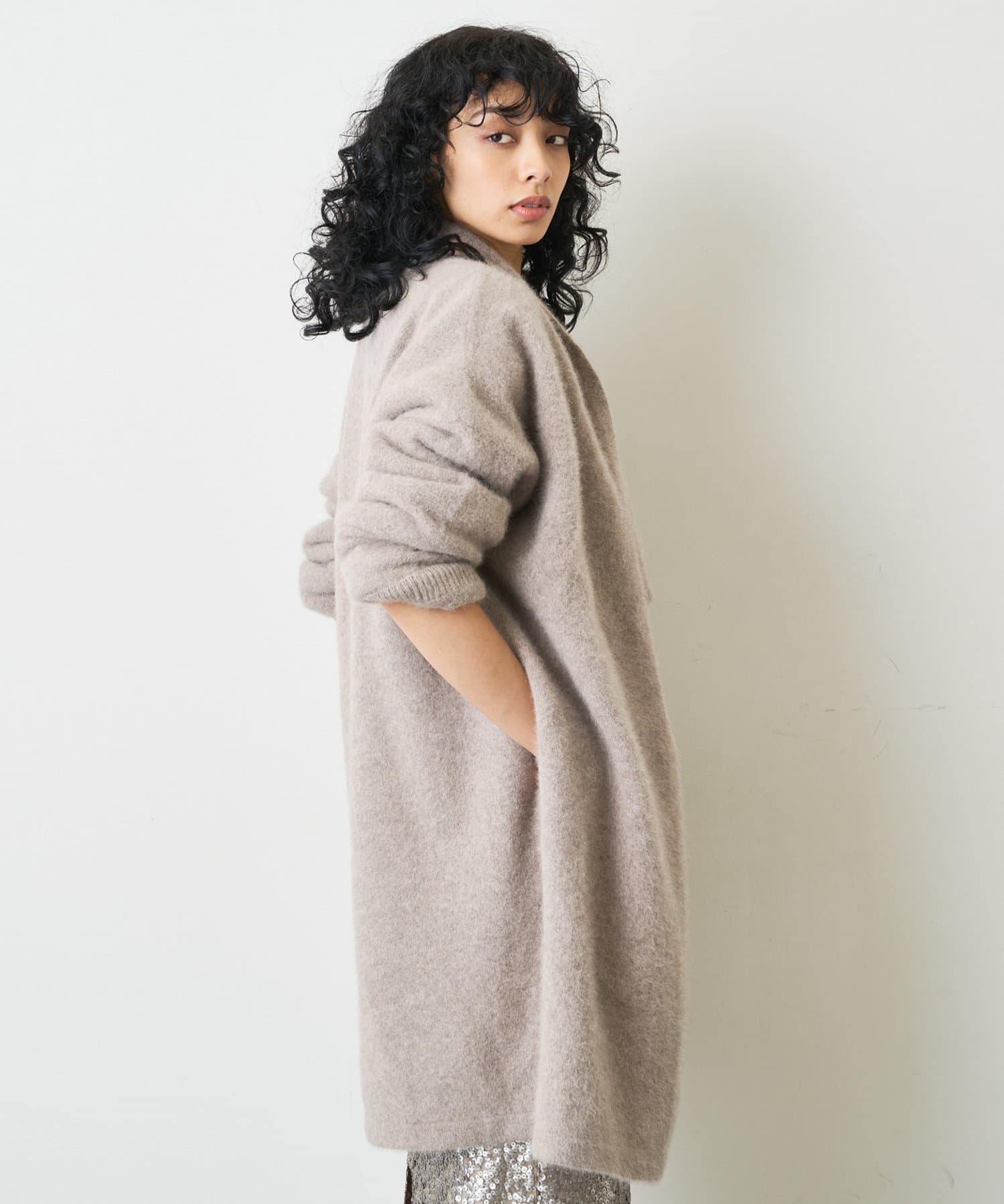 ■暖かみのある色合いや表情が魅力のロングニットカーディガン。