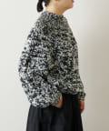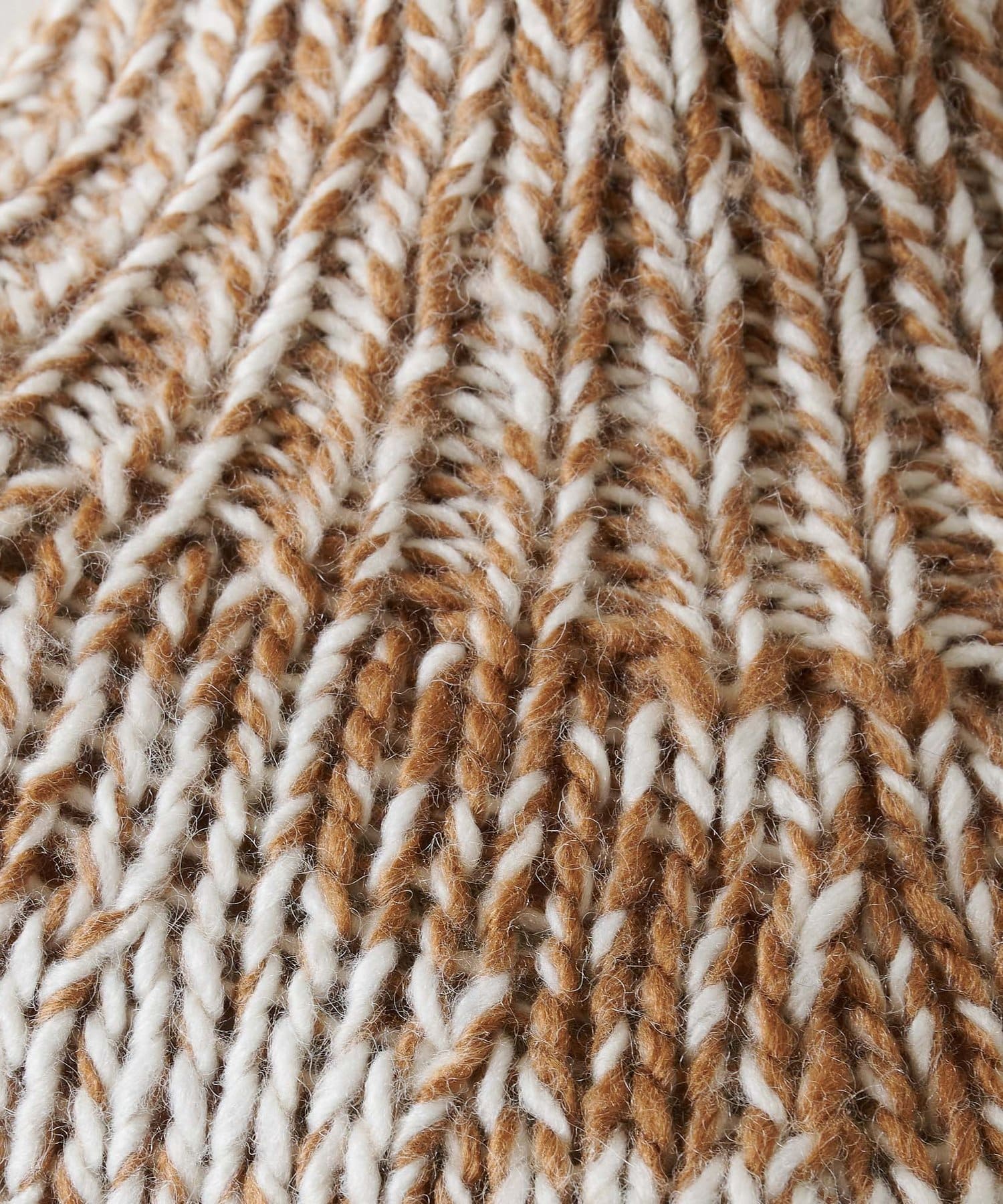 バルキー感の強いウールアクリルの糸を甘寄りすることで、軽く柔らかい雰囲気が出る糸を使用し、手編みでふっくらと編んだニット生地。