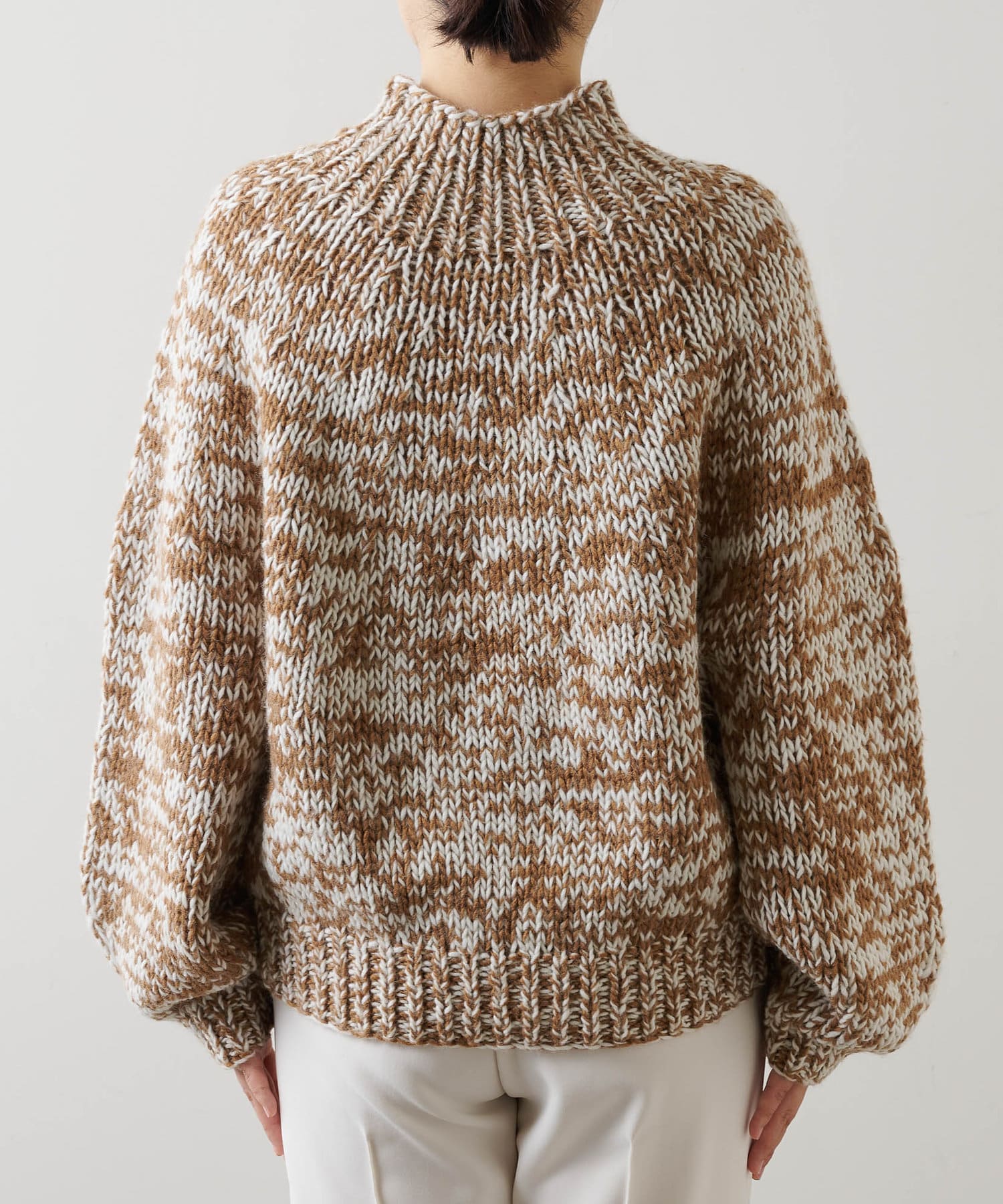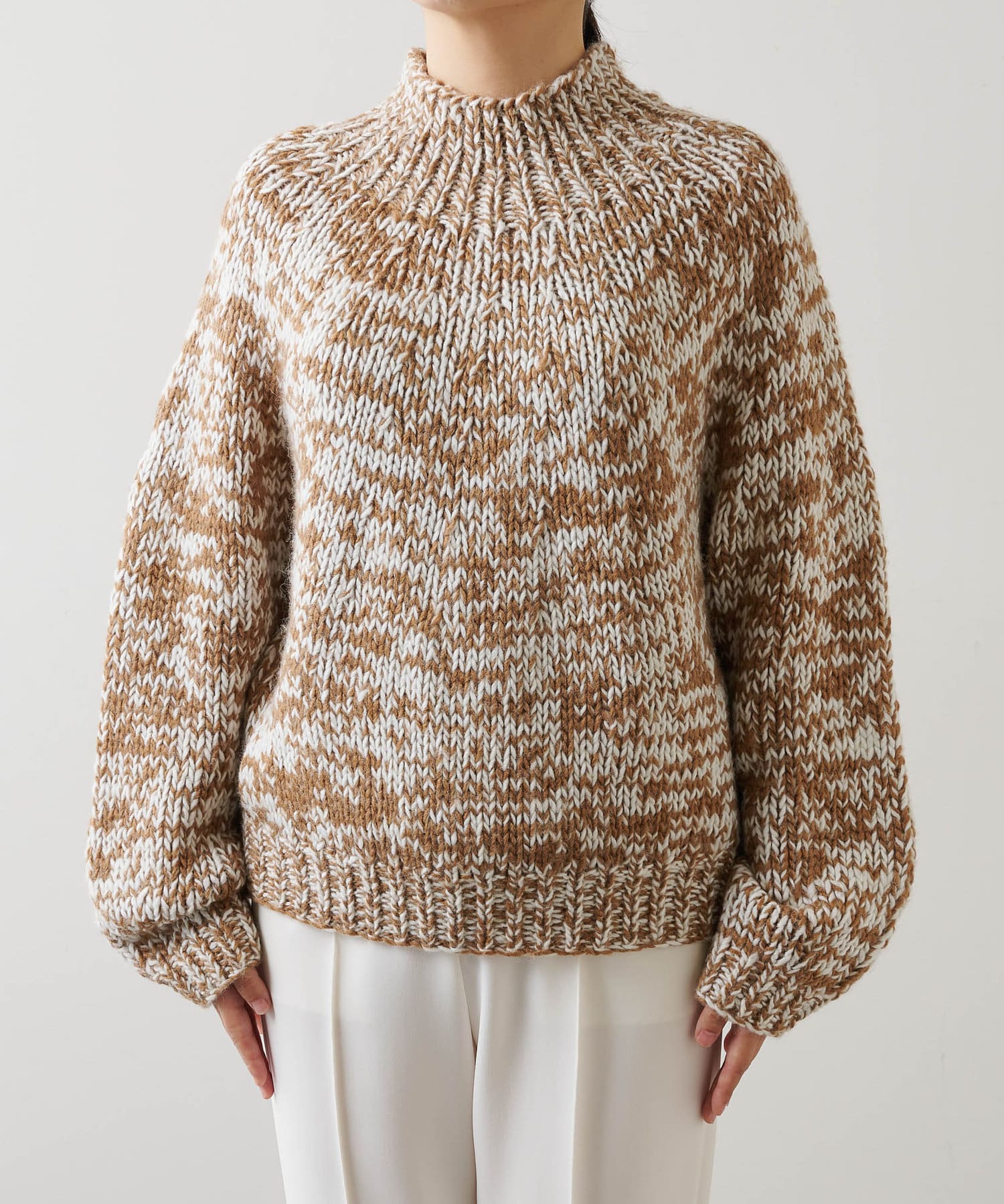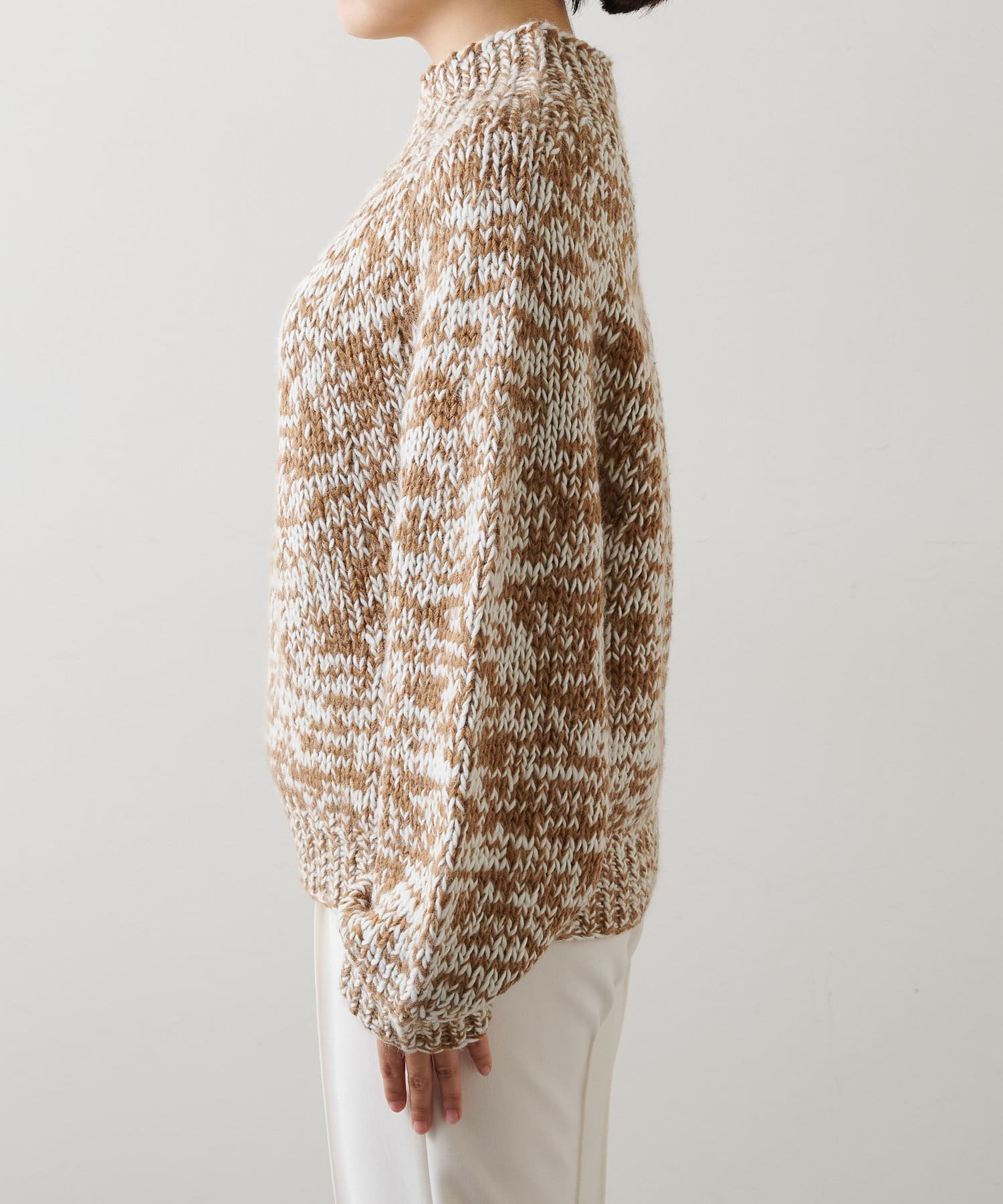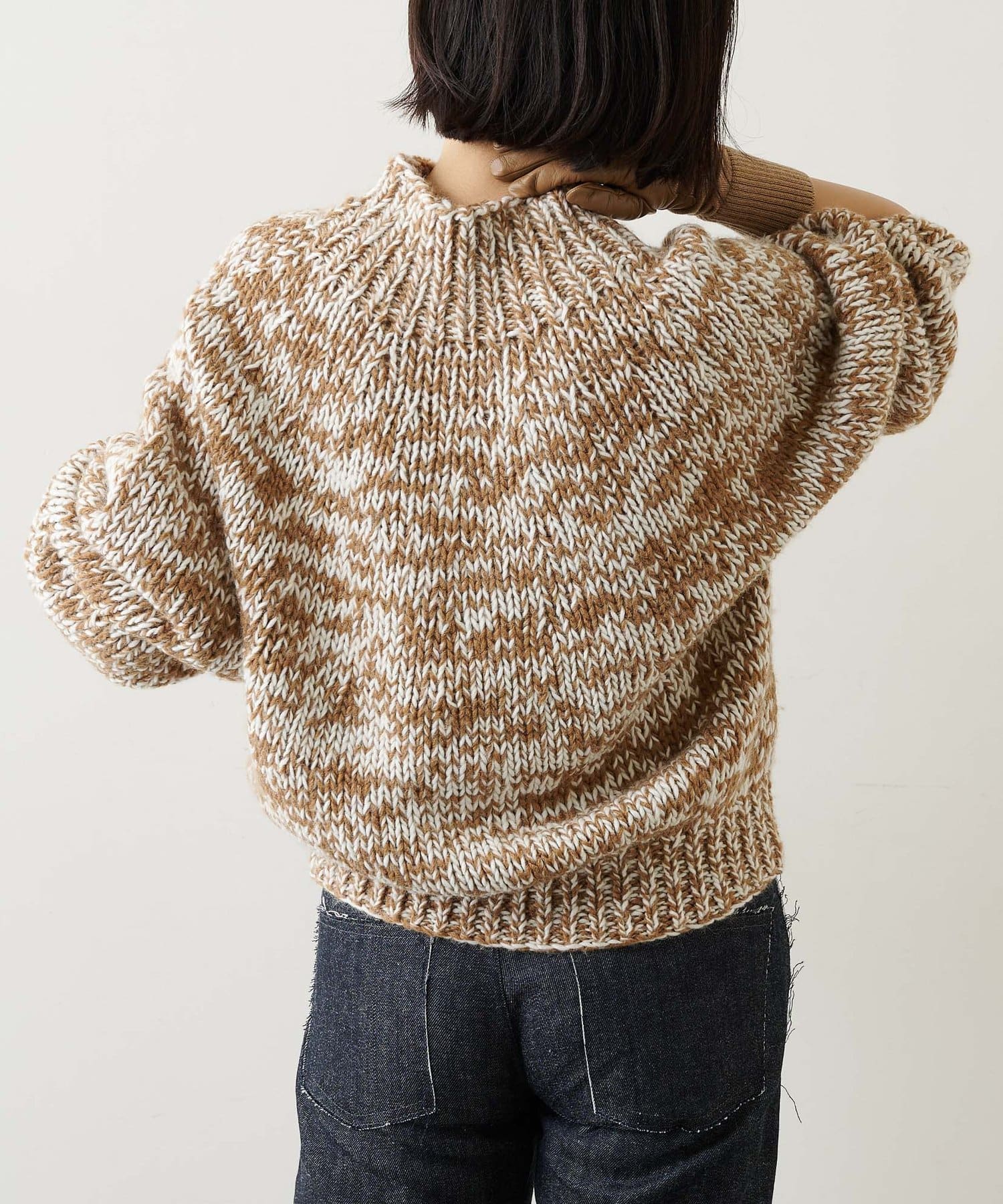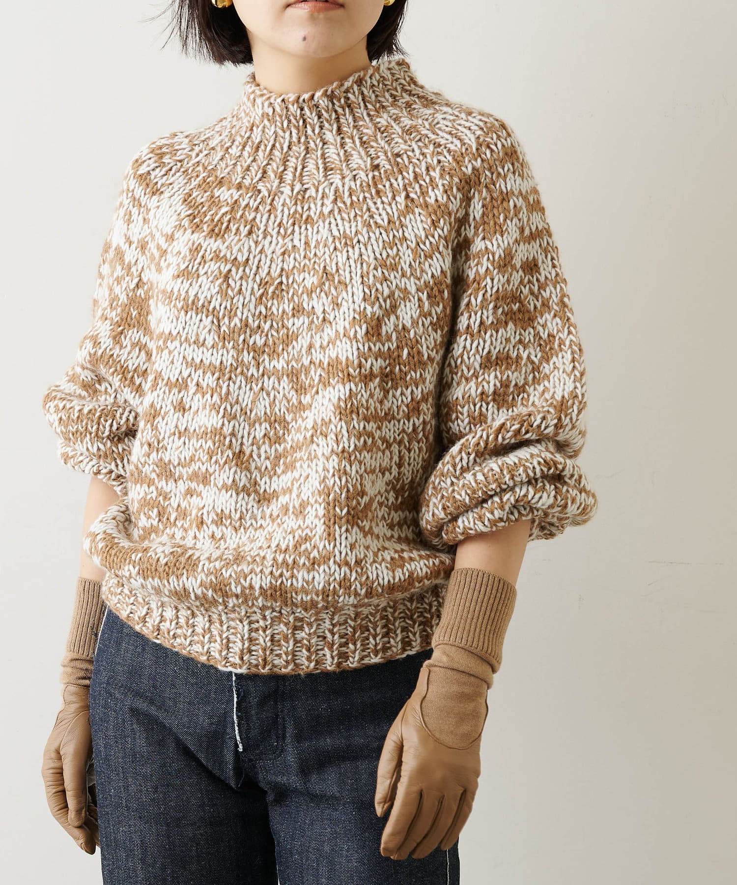 ■手編みならではのざっくりとした編地が特徴のハイネックニットプルオーバー。