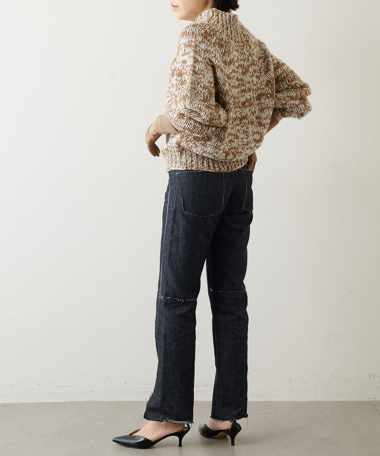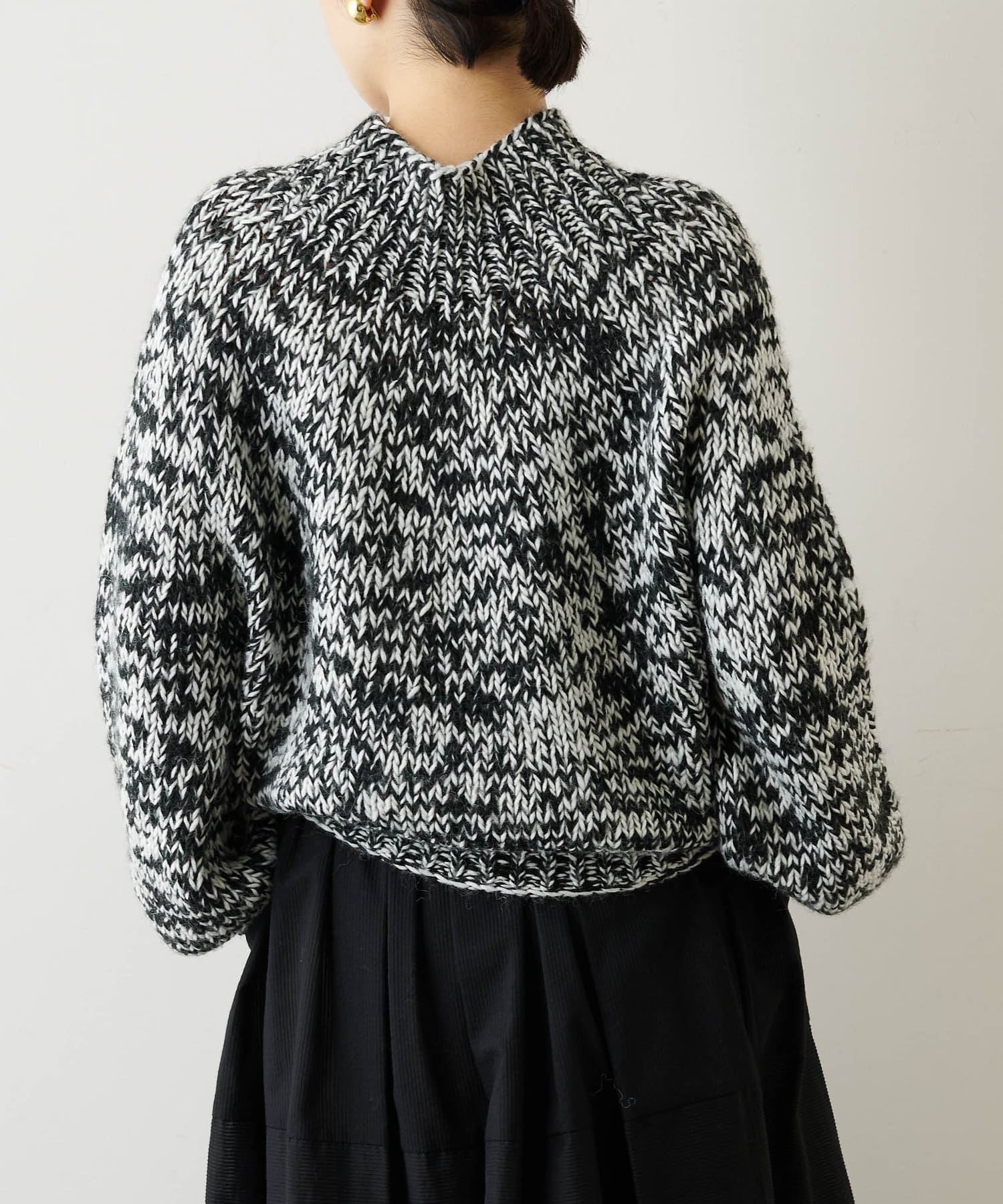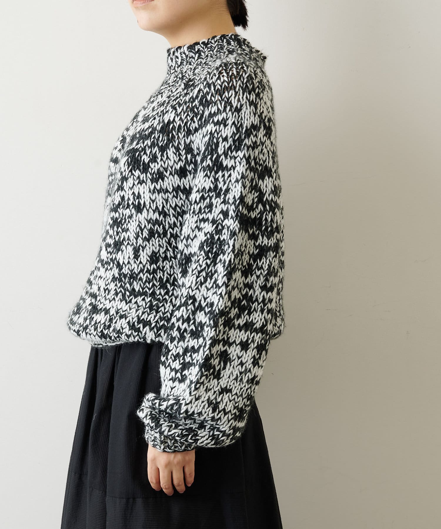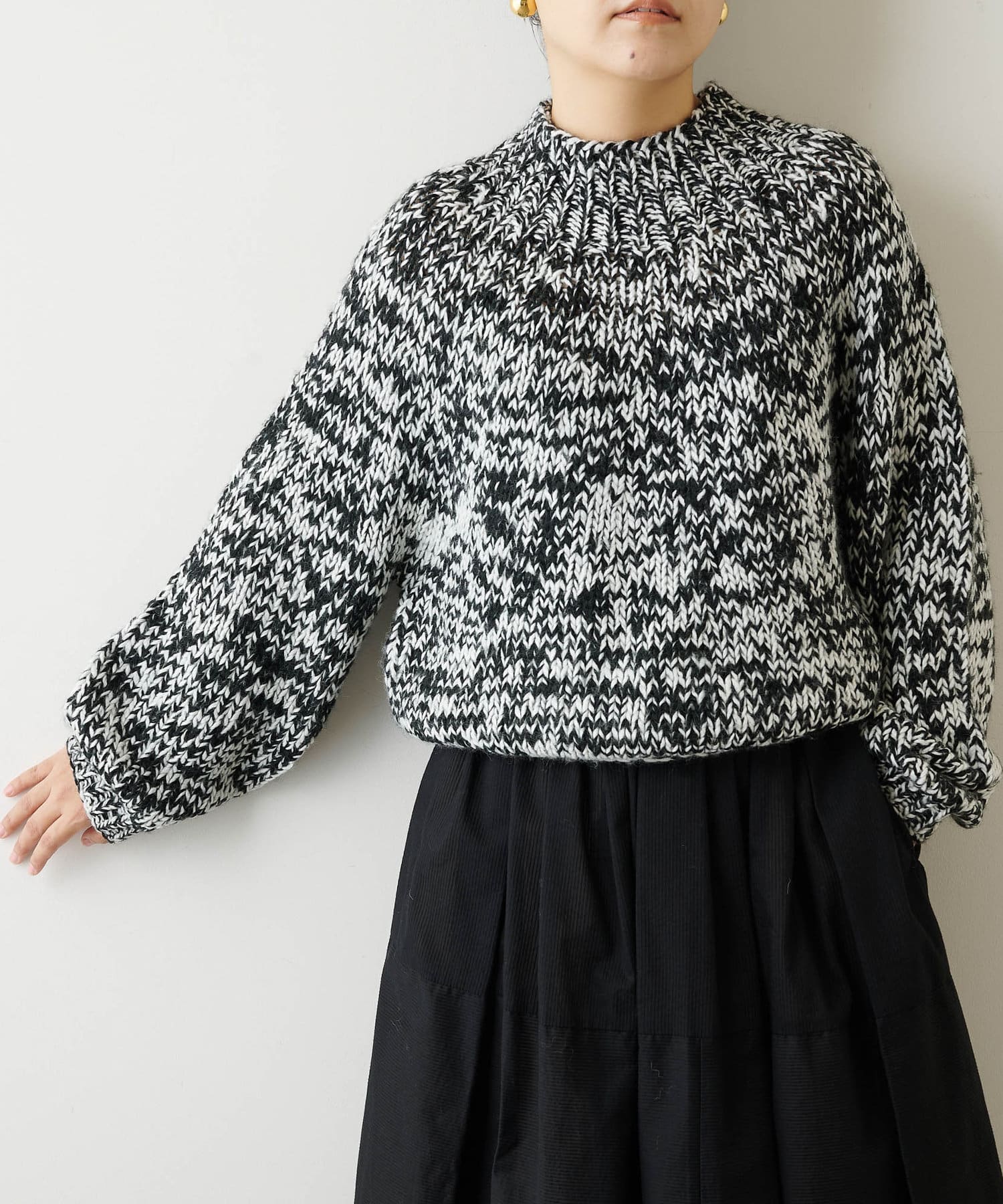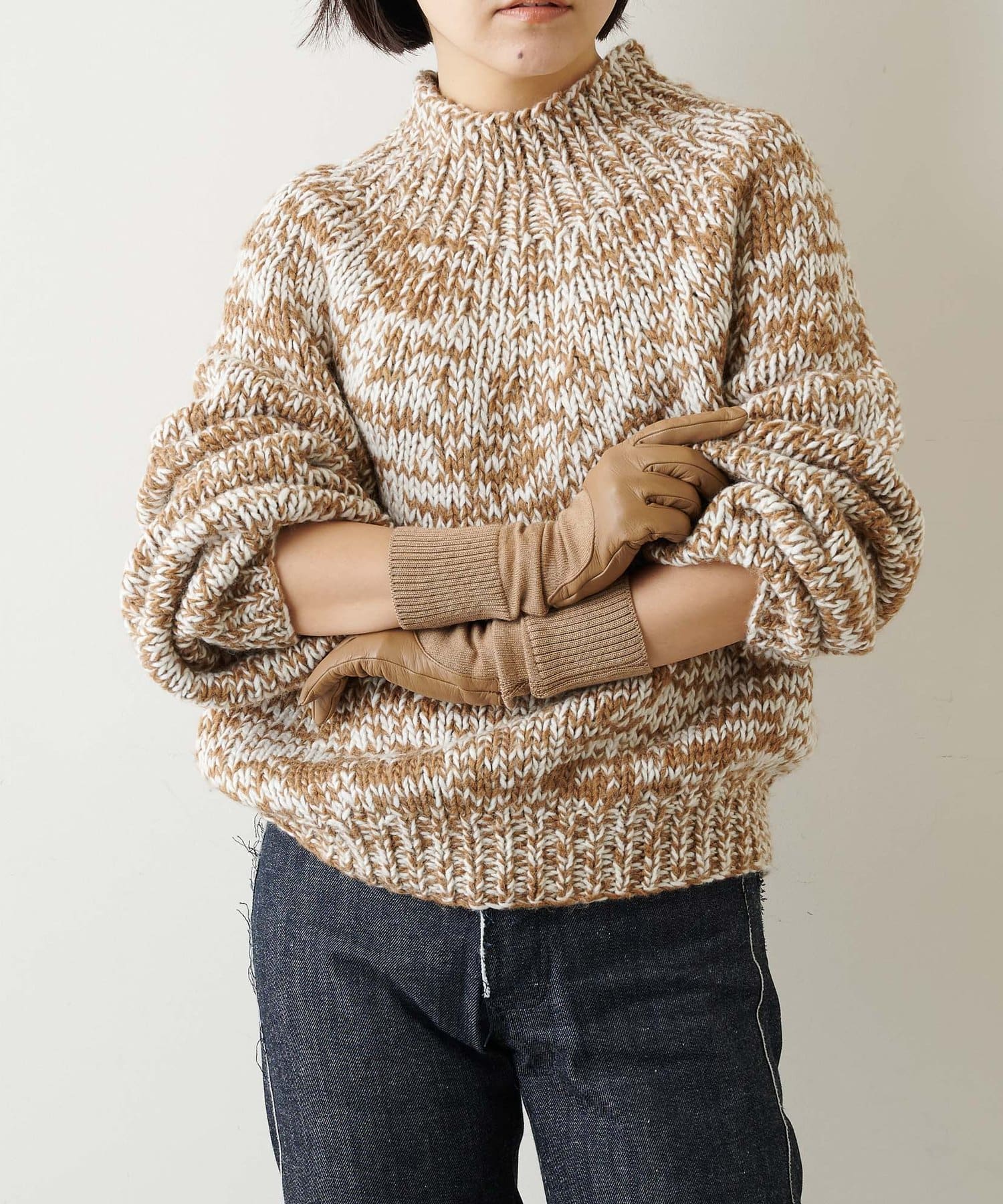 ■手編みならではのざっくりとした編地が特徴のハイネックニットプルオーバー。