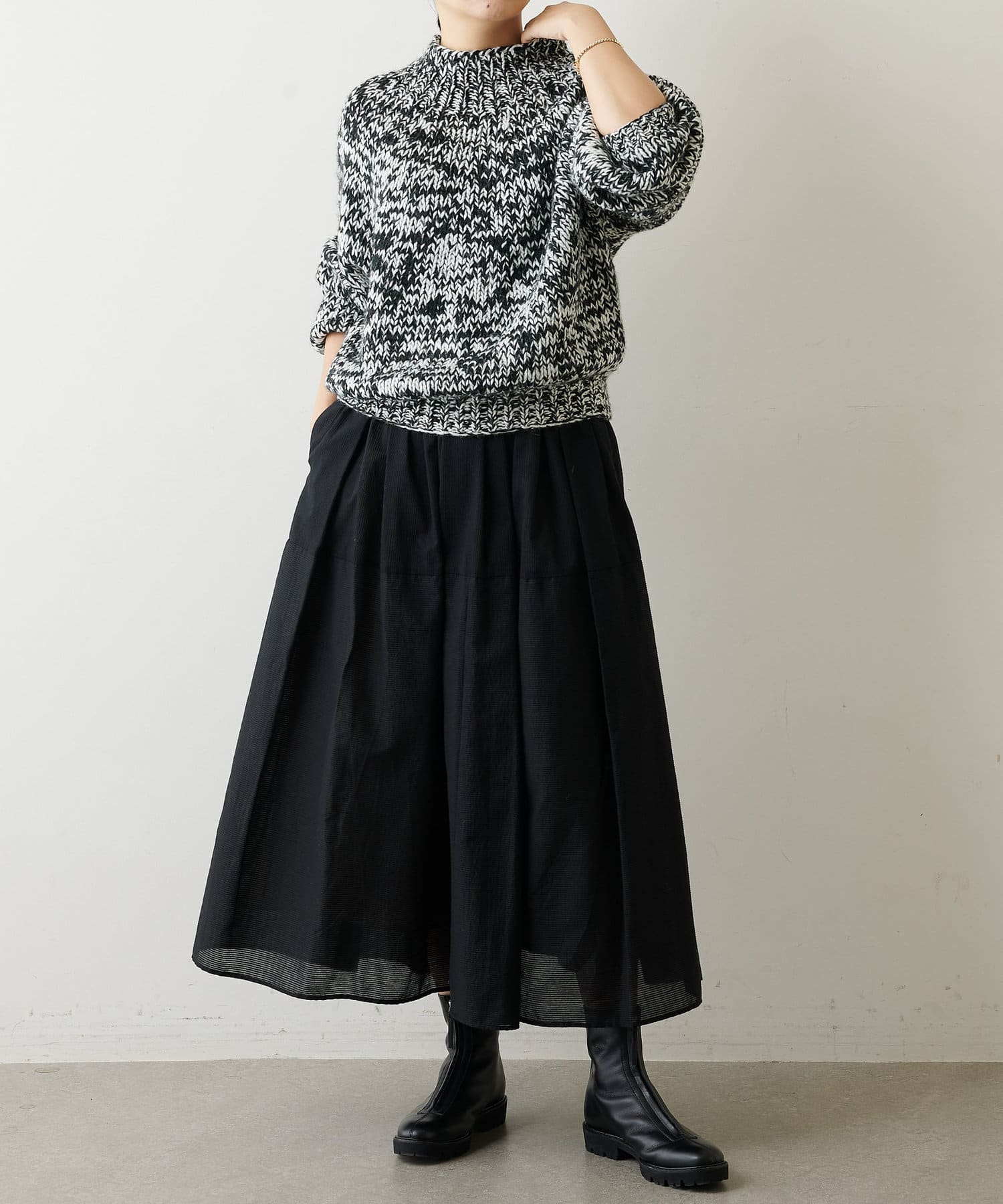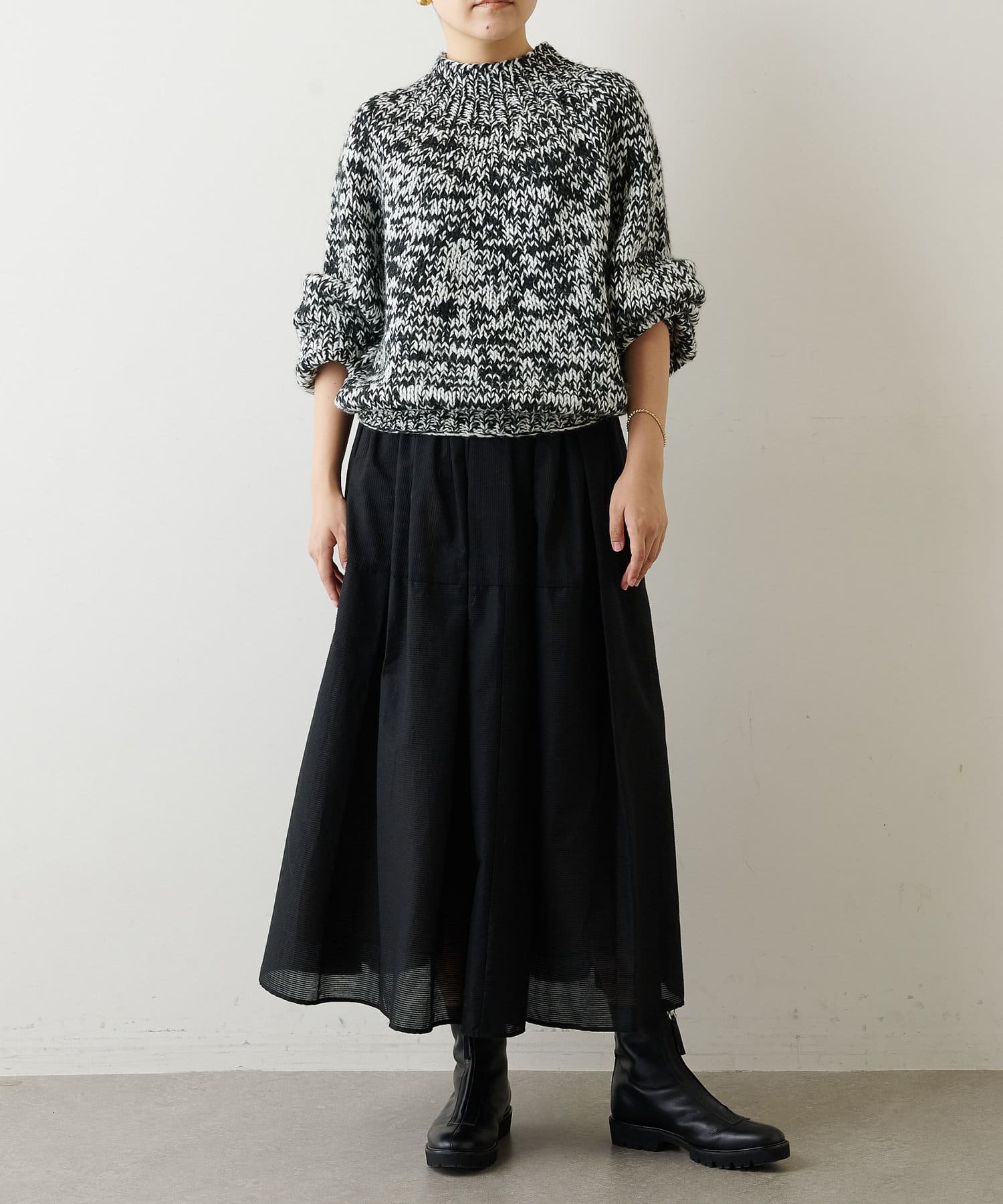 ミックス感ある表情で一枚でも映える、ハンドニットタートル