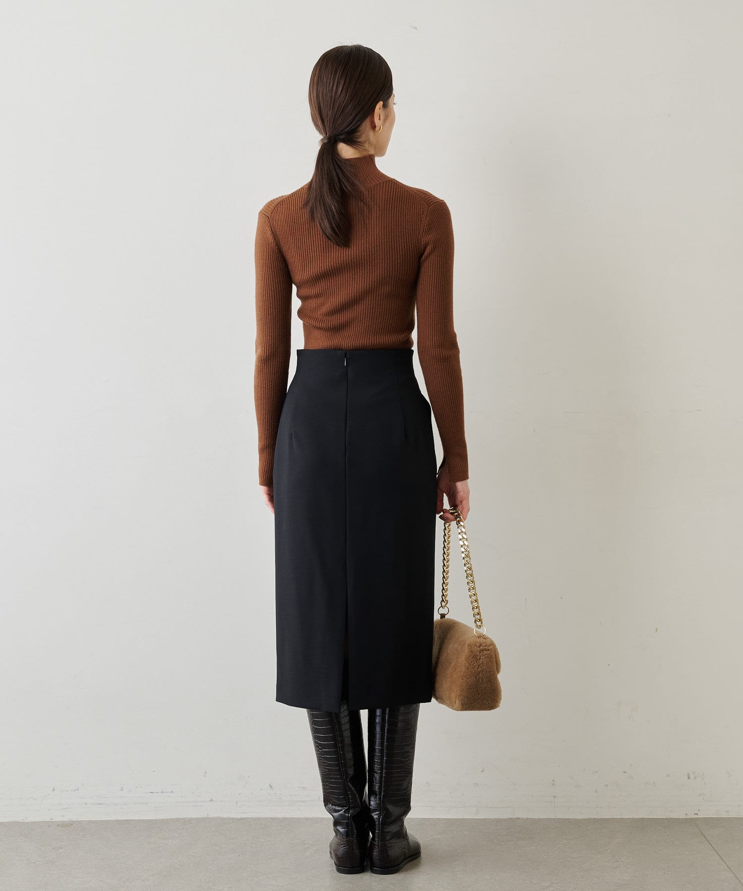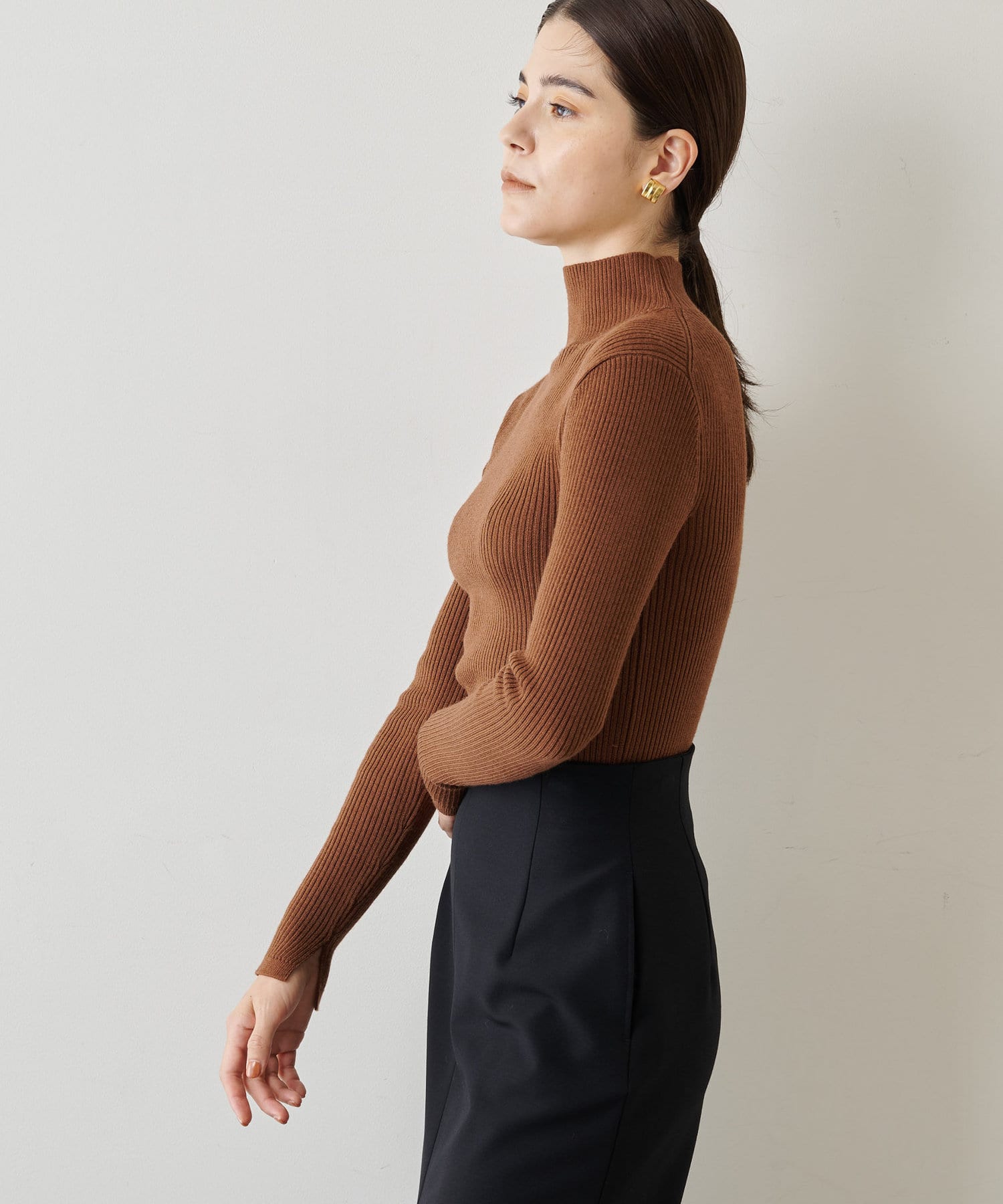 ■コンパクトなシルエットが女性らしいリブタートルネックニット。