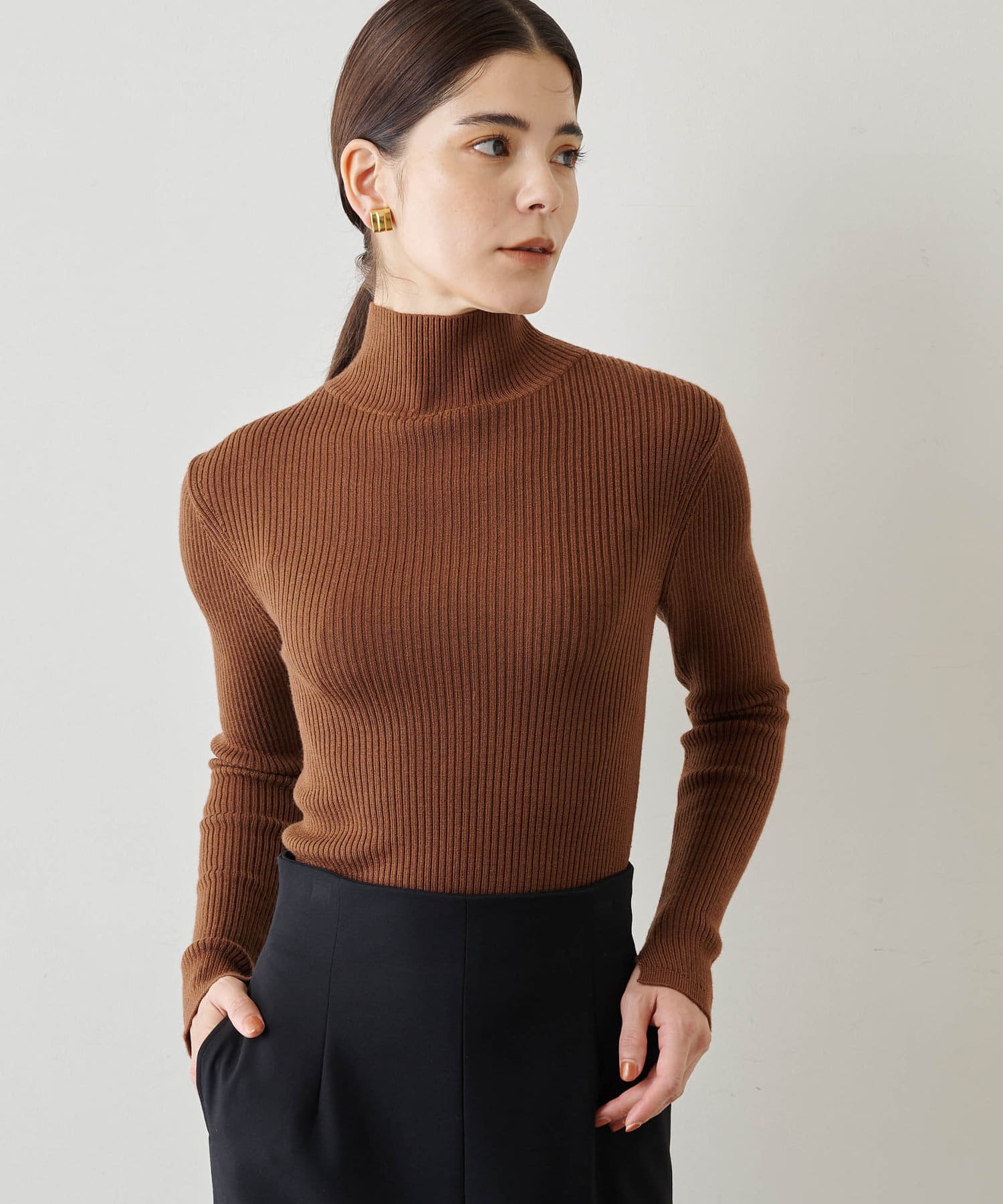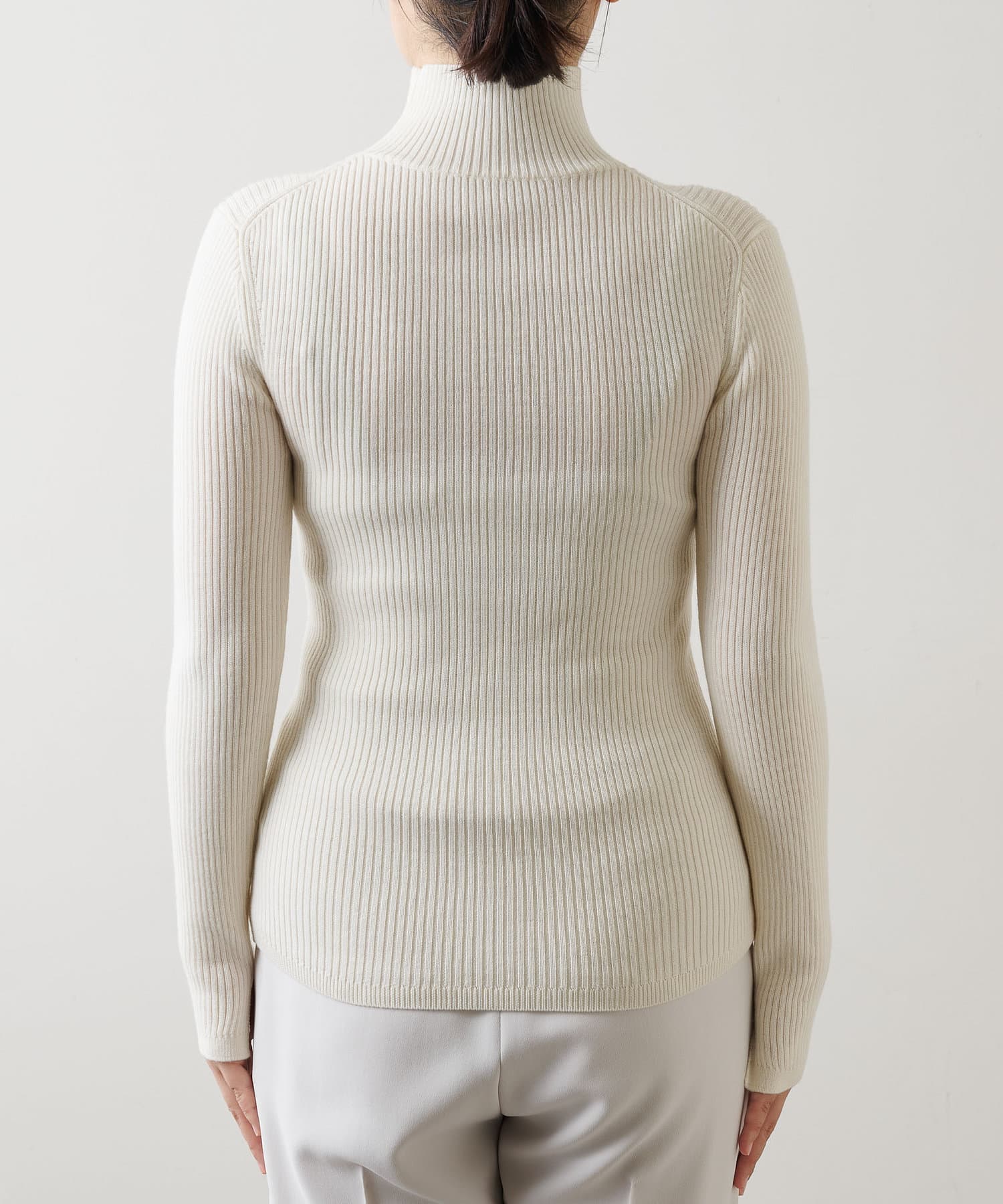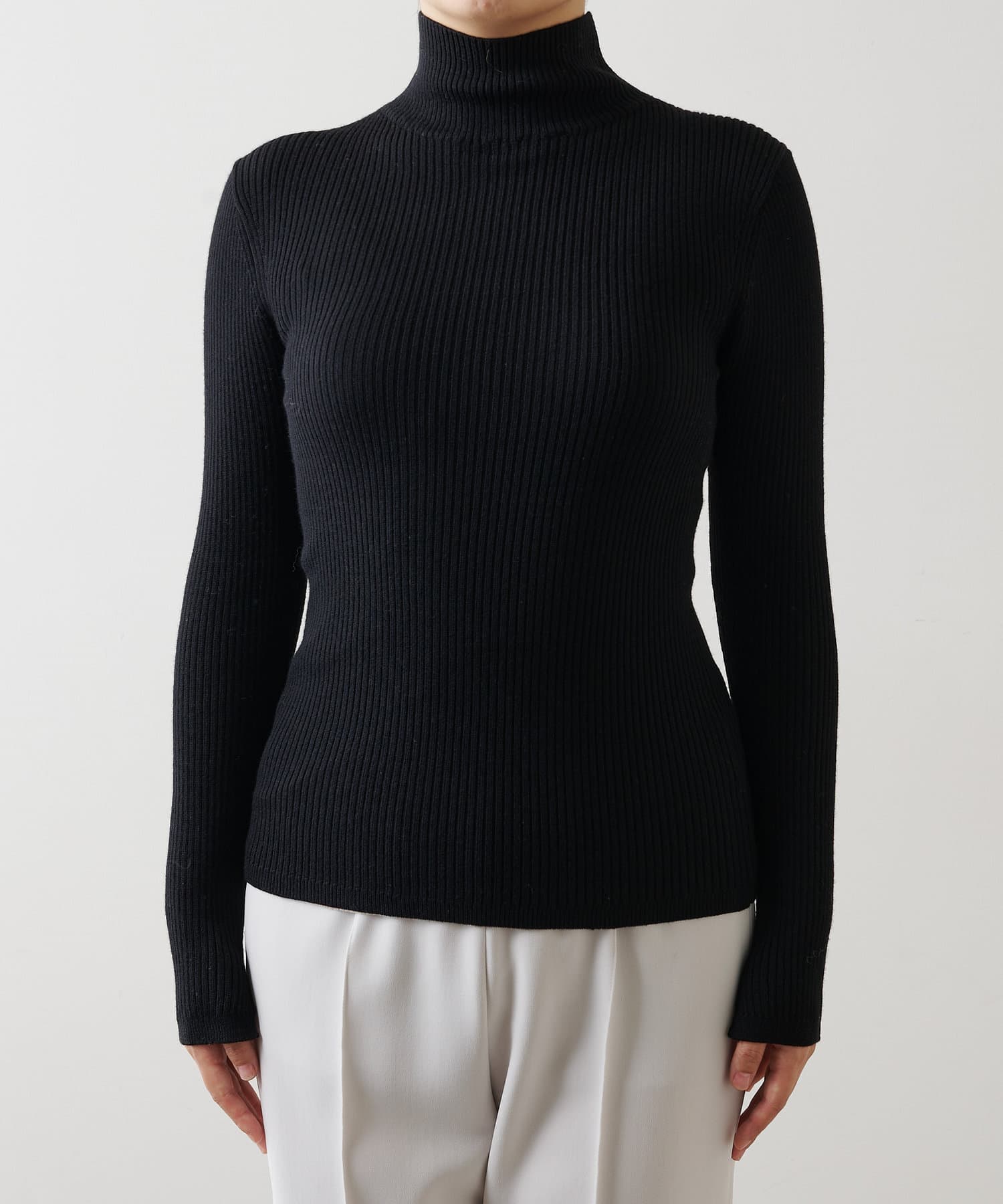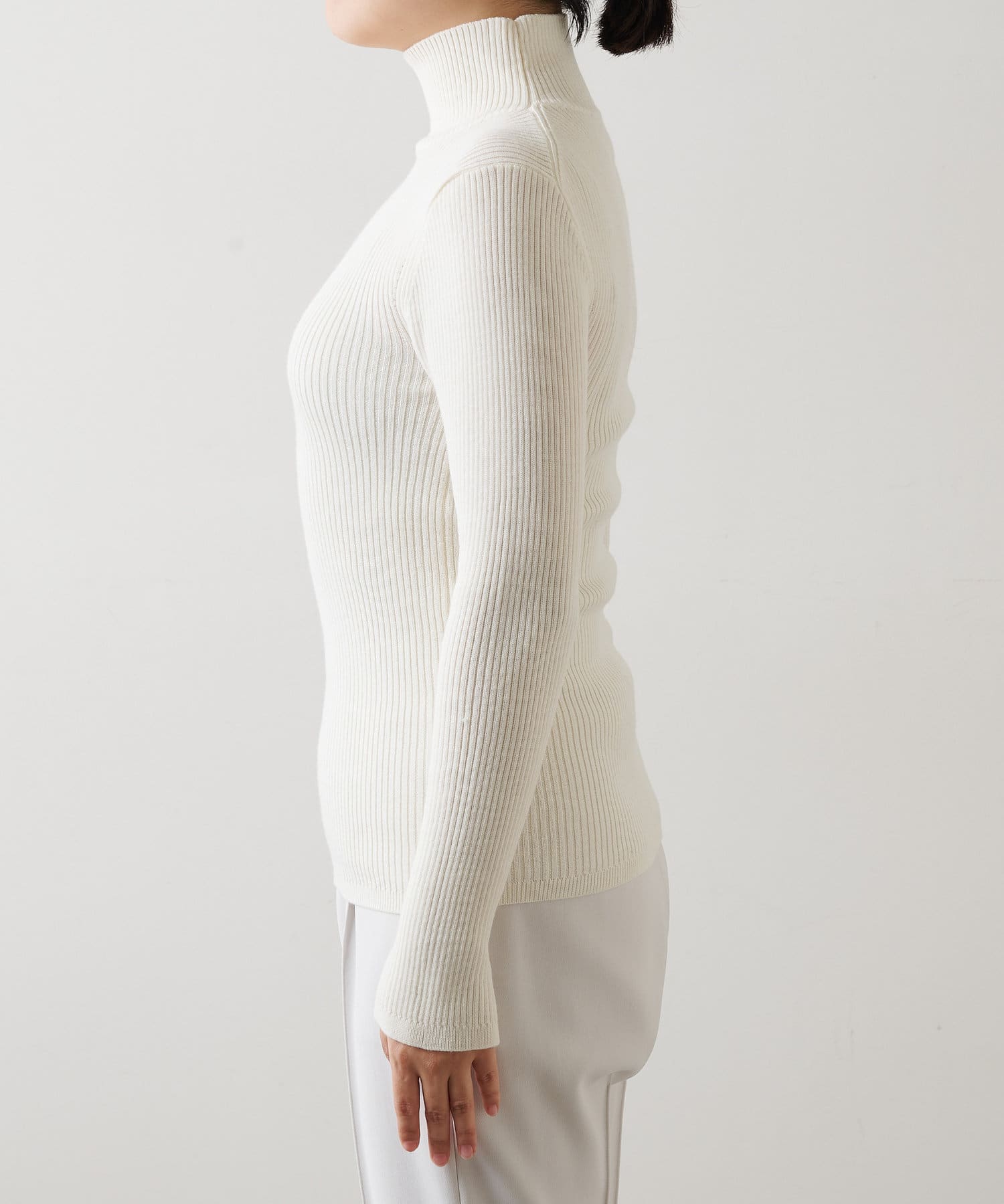 ■コンパクトなシルエットが女性らしいリブタートルネックニット。