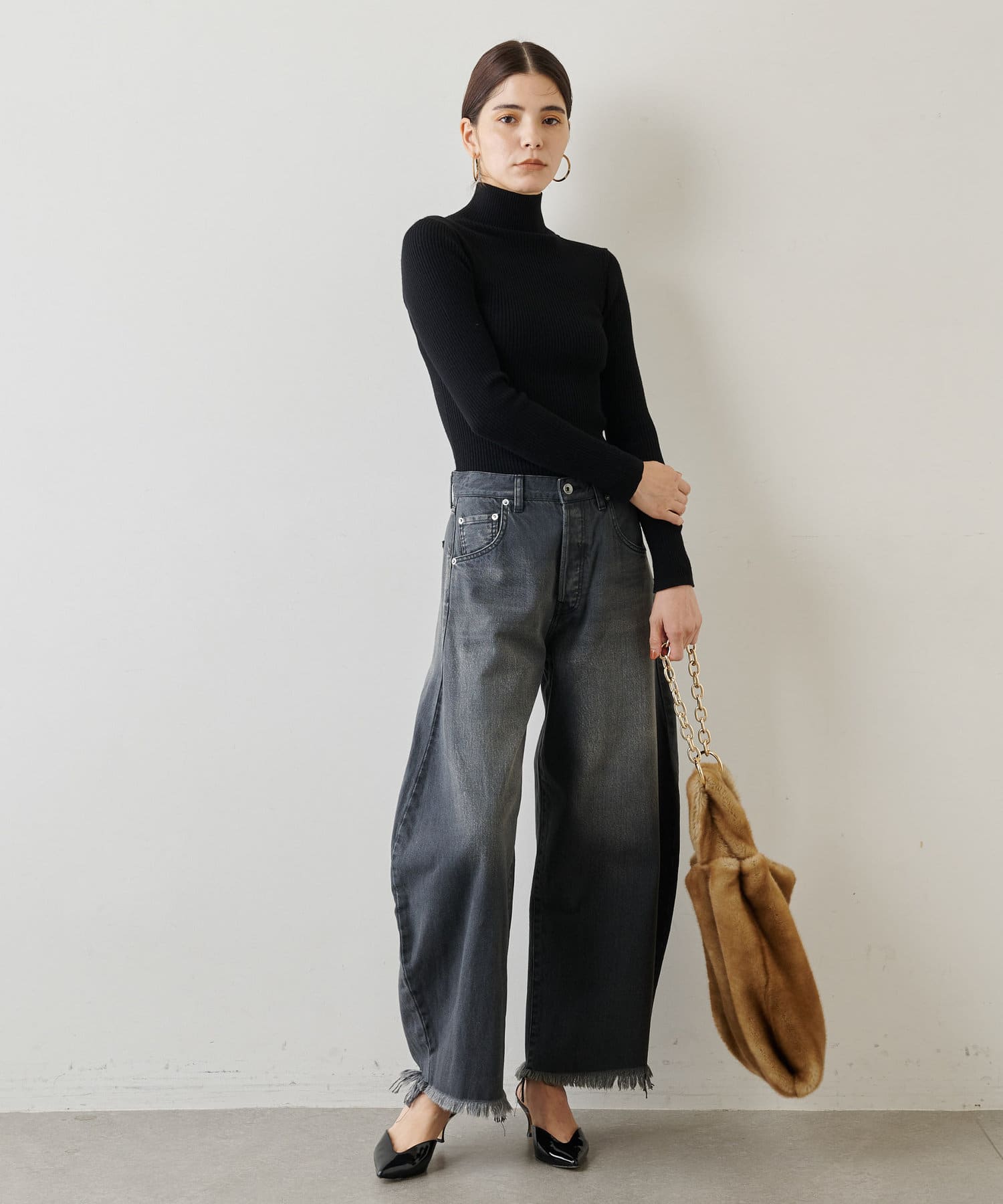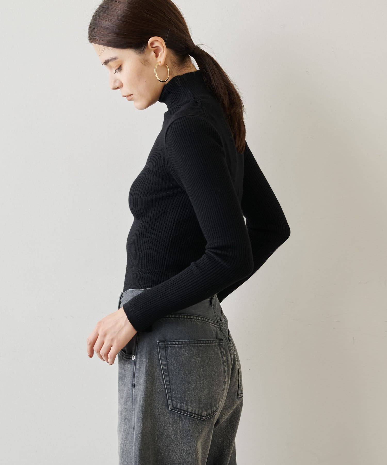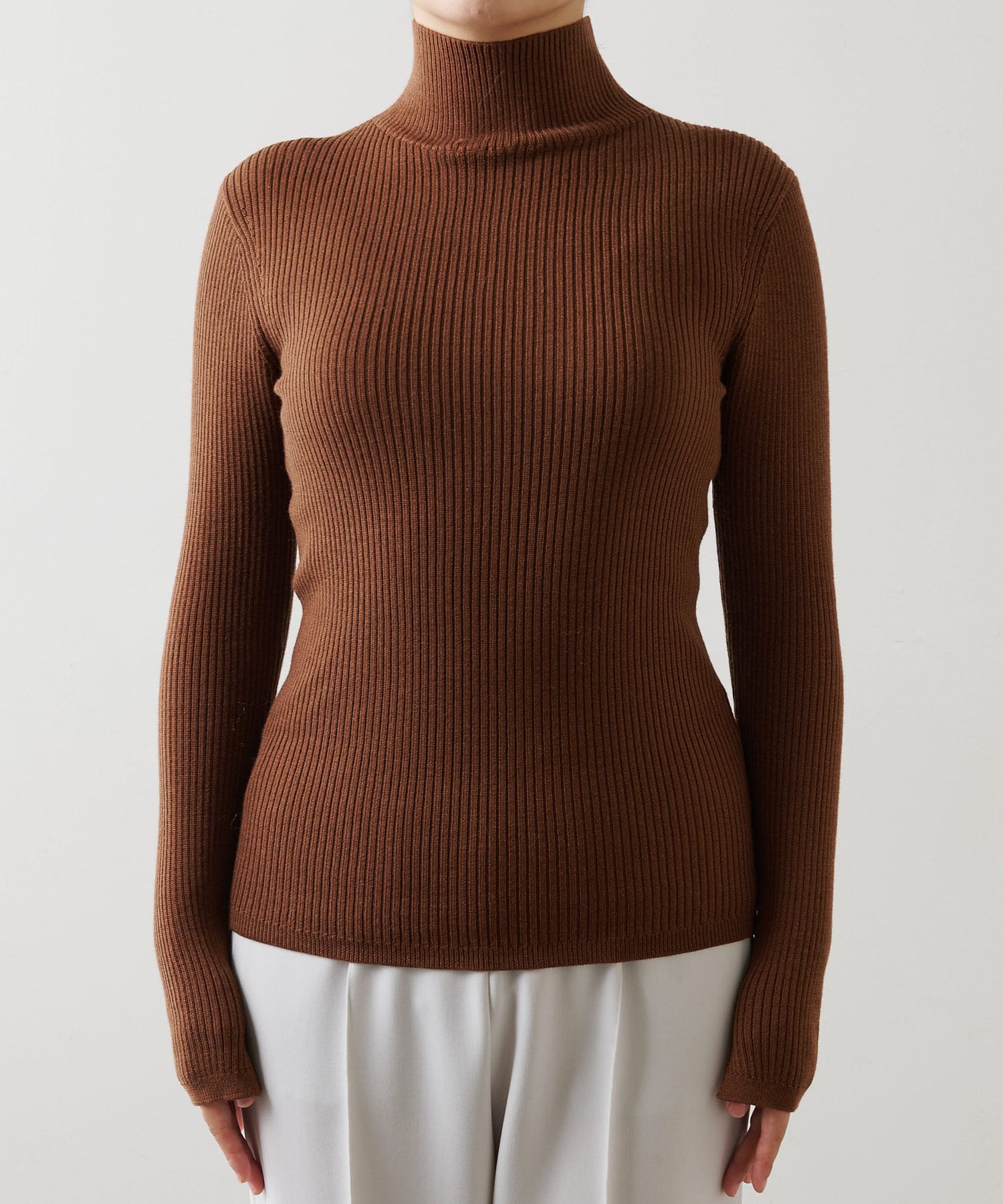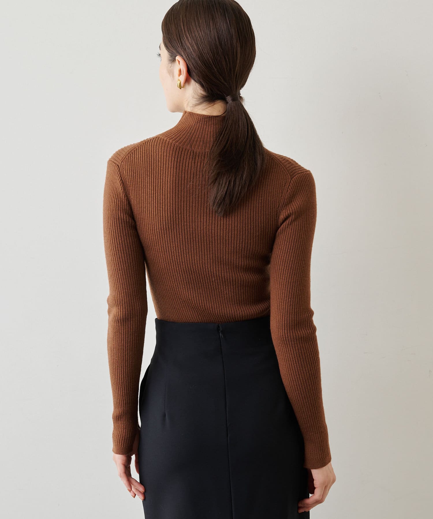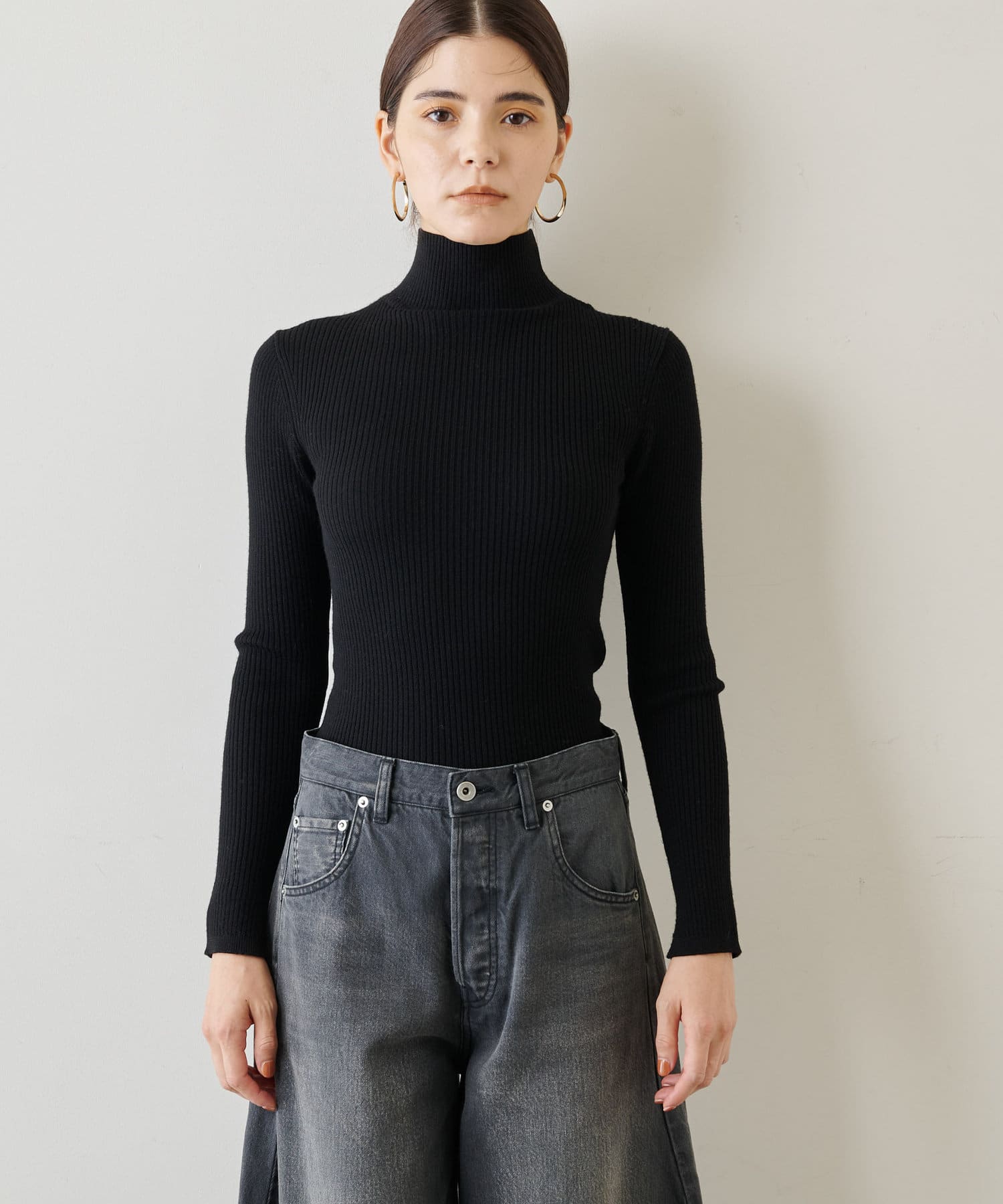 ■コンパクトなシルエットが女性らしいリブタートルネックニット。