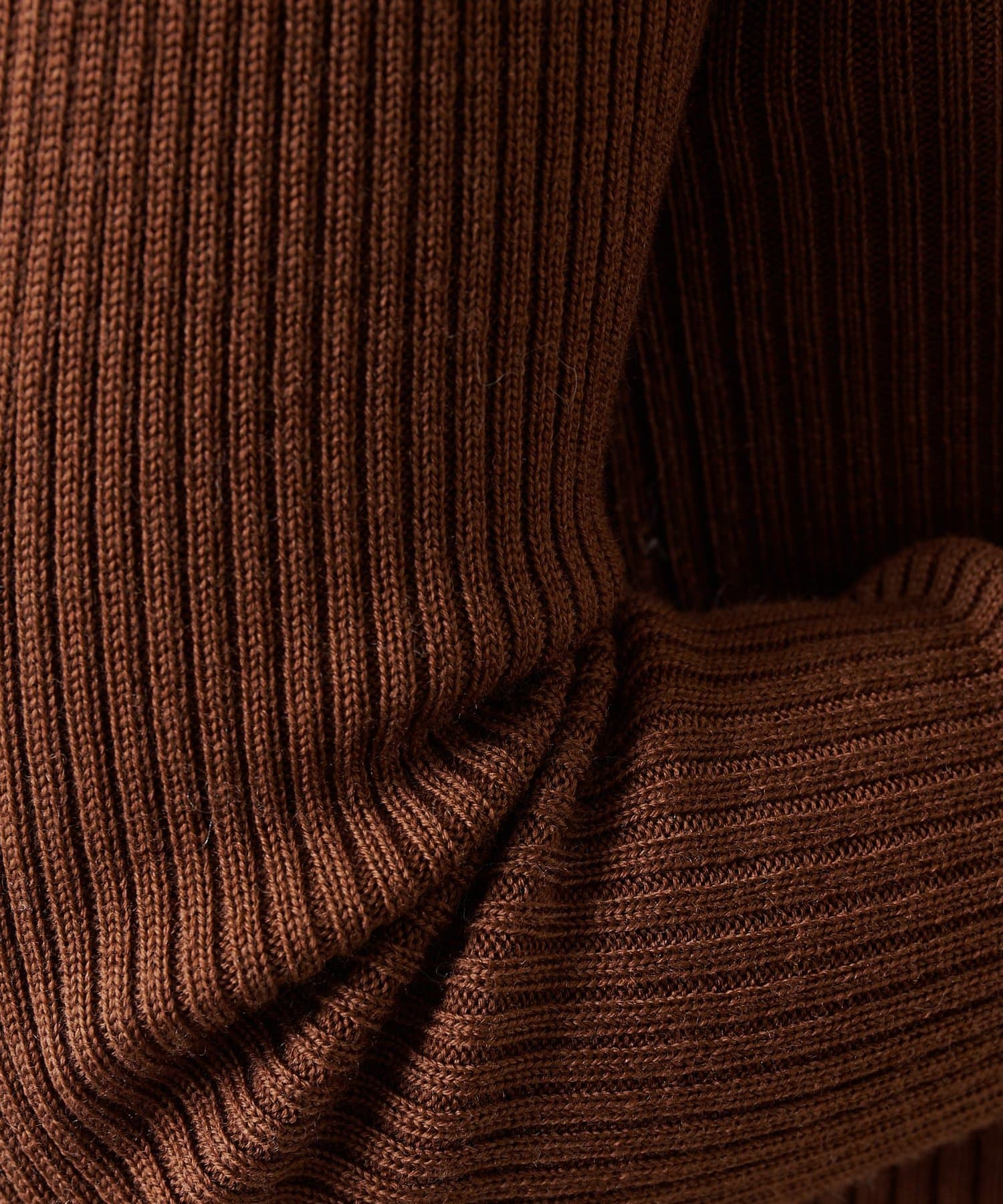 ■ソフトな風合いと程よい膨らみ感を兼ね備え、微細な光沢感がリブのカジュアル感を抑えた品のある見え感。