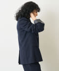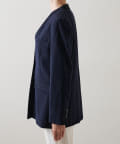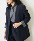 ■ゆったりとしたルーズフィットのシルエットに、ノーカラーデザインで女性さしさもキープ。