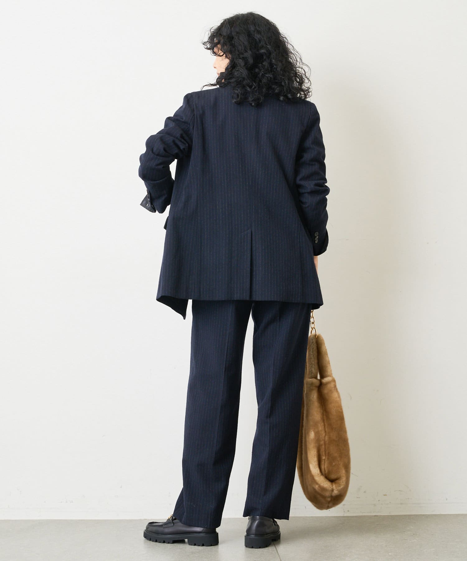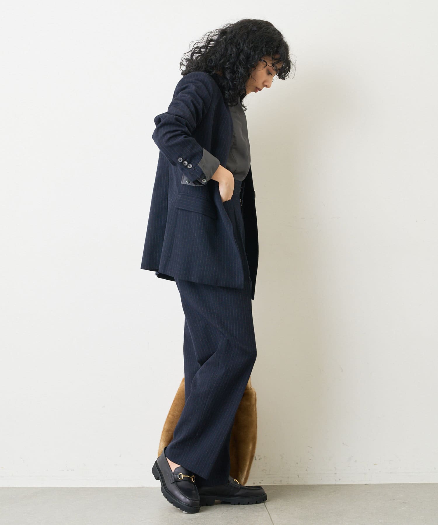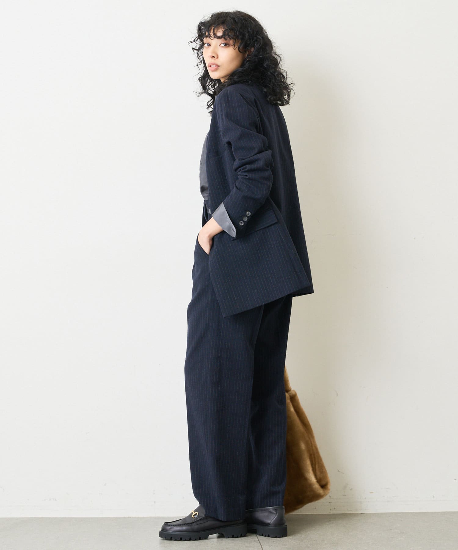 ■同素材のピンストライプパンツ(ブランド品番:WGZ1022302A0002)とセットアップで楽しむのもおすすめ。