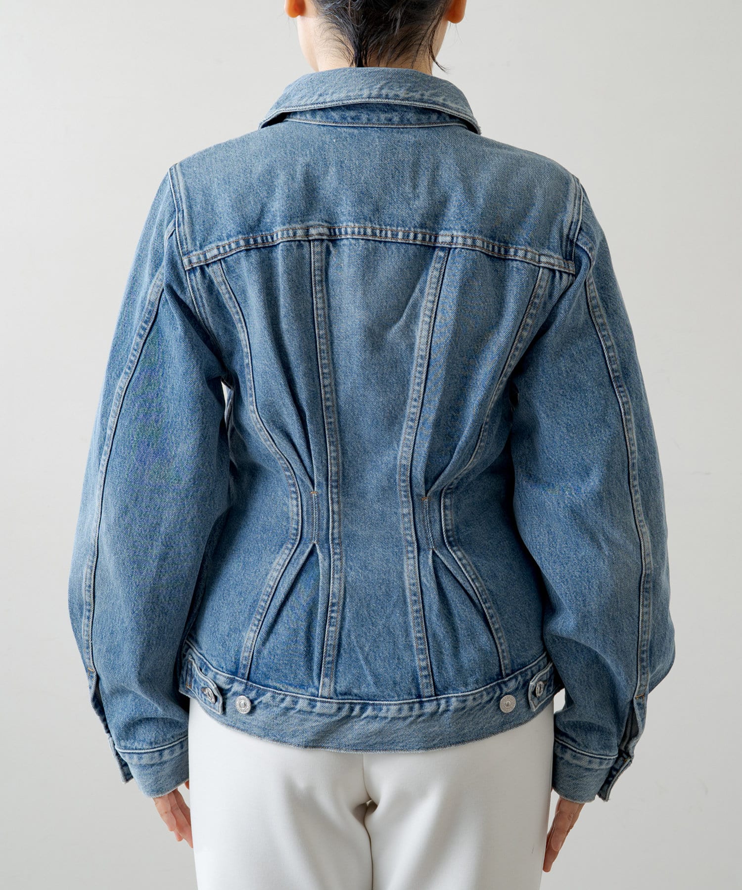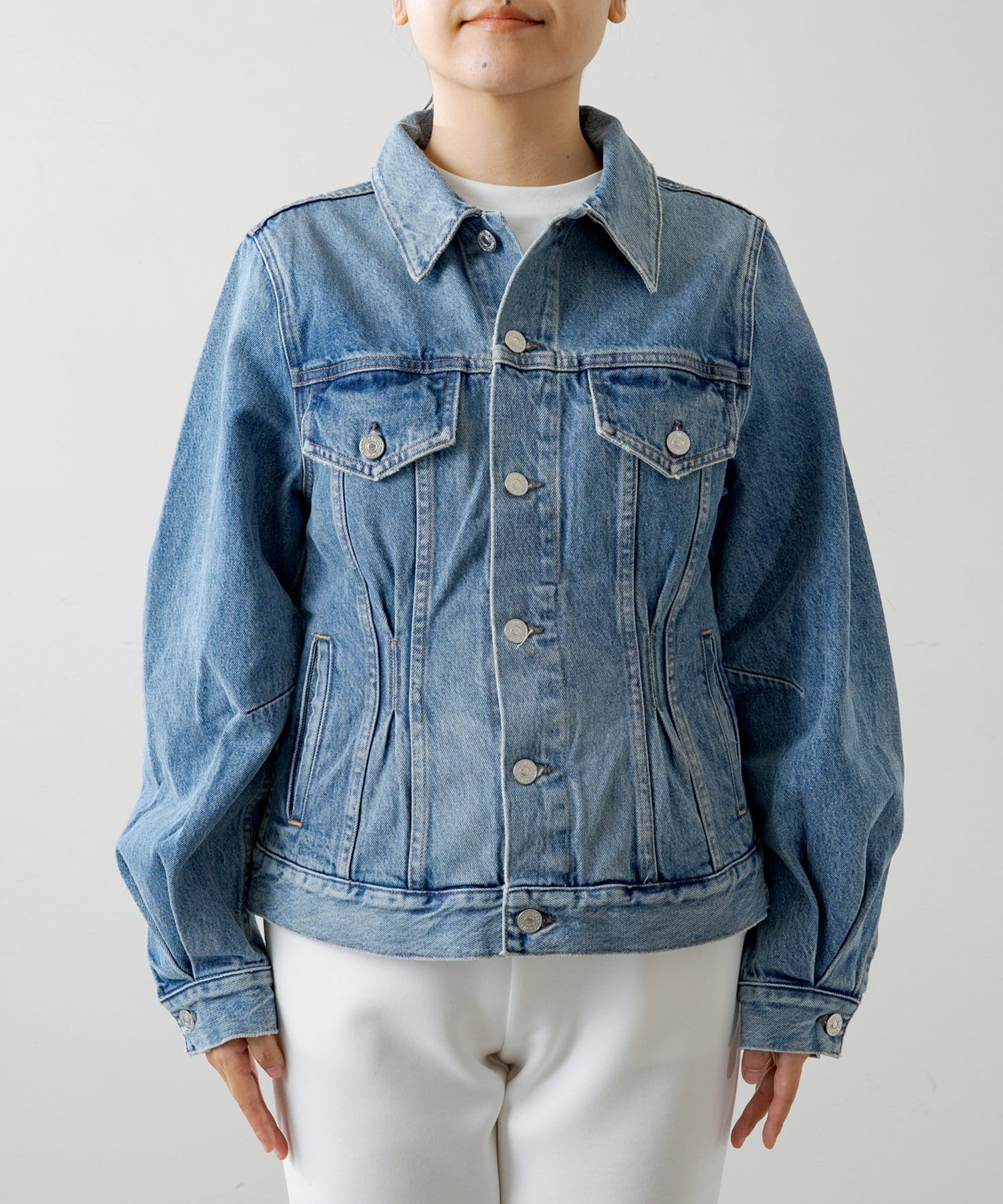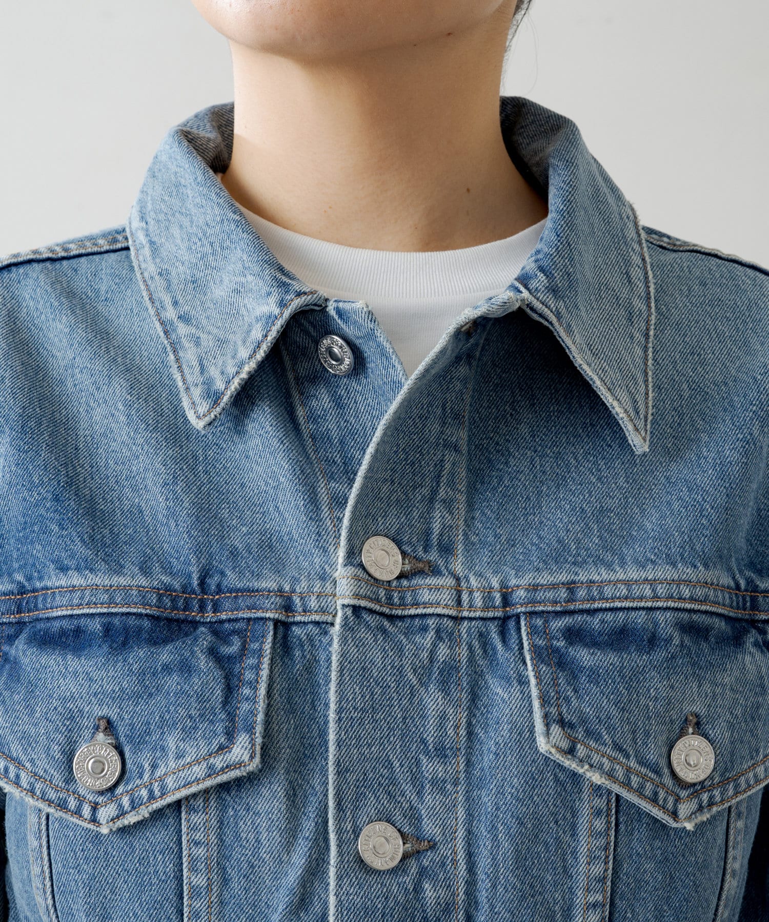 ヴィンテージライクなウォッシュ加工がこなれ感を演出するブルー。