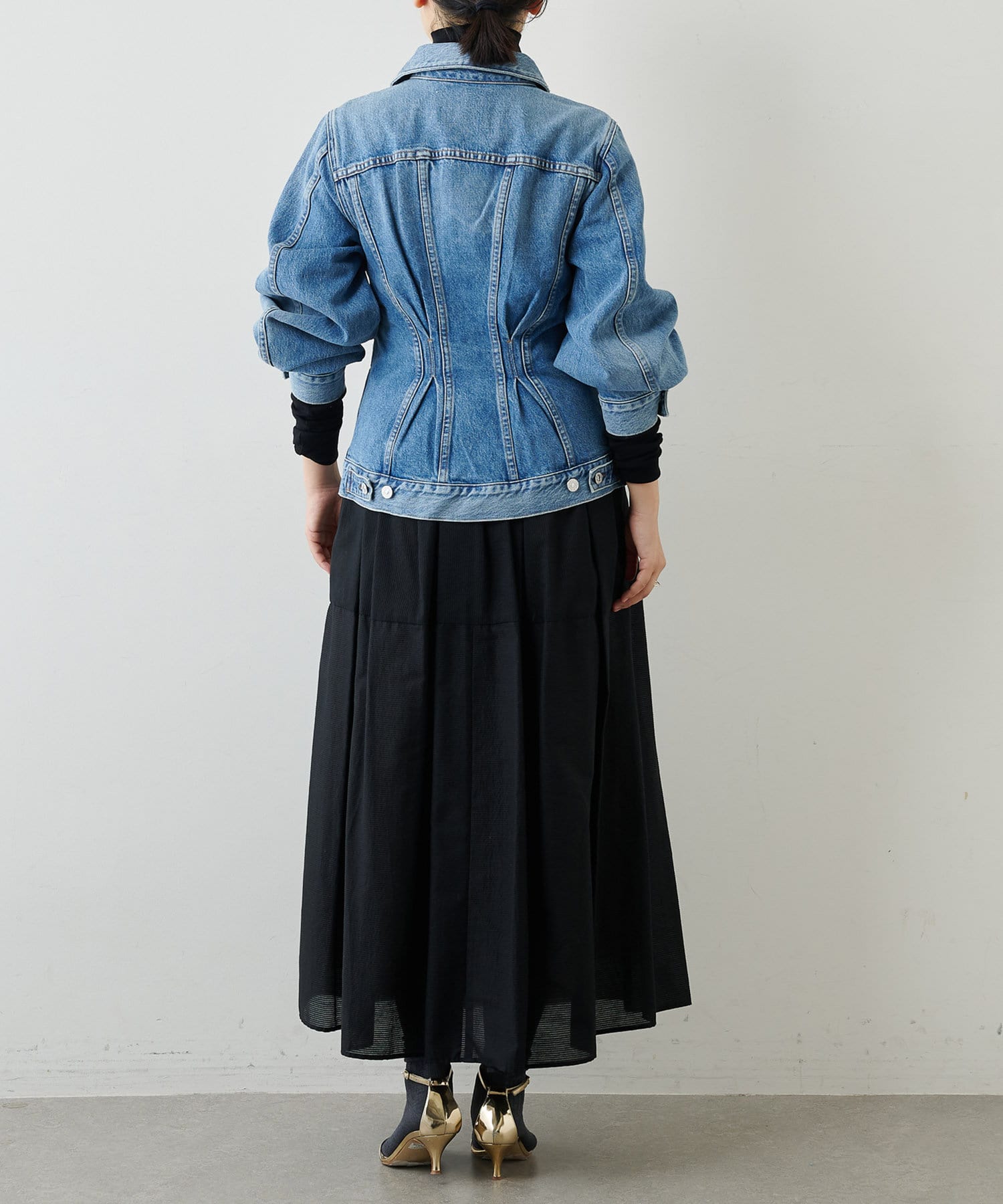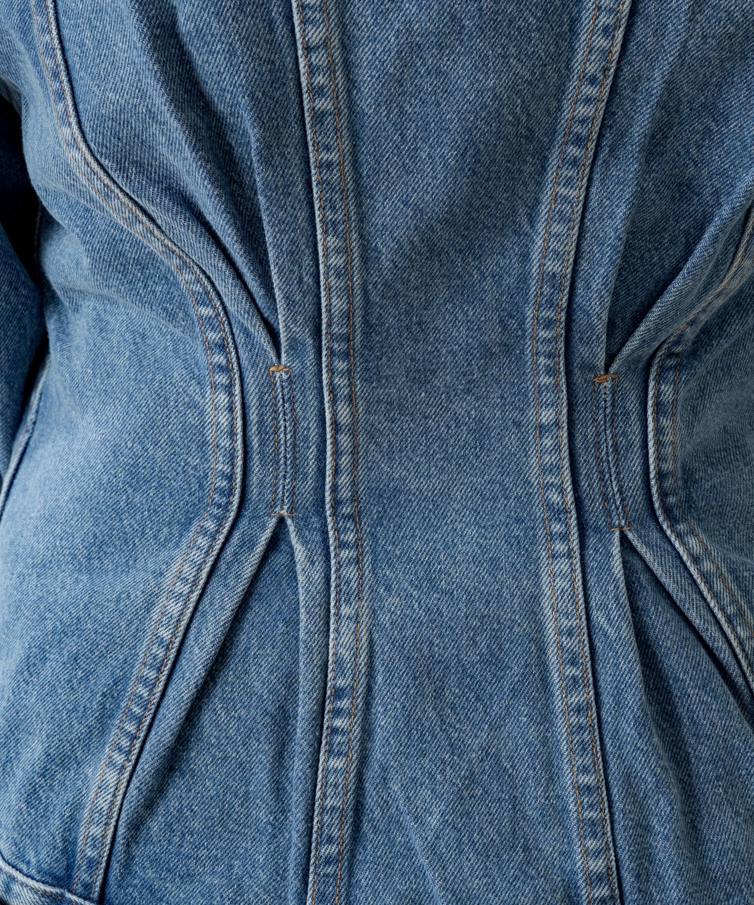 ■ウエスト部分をつまんでシェイプさせたようなディティールが特徴。