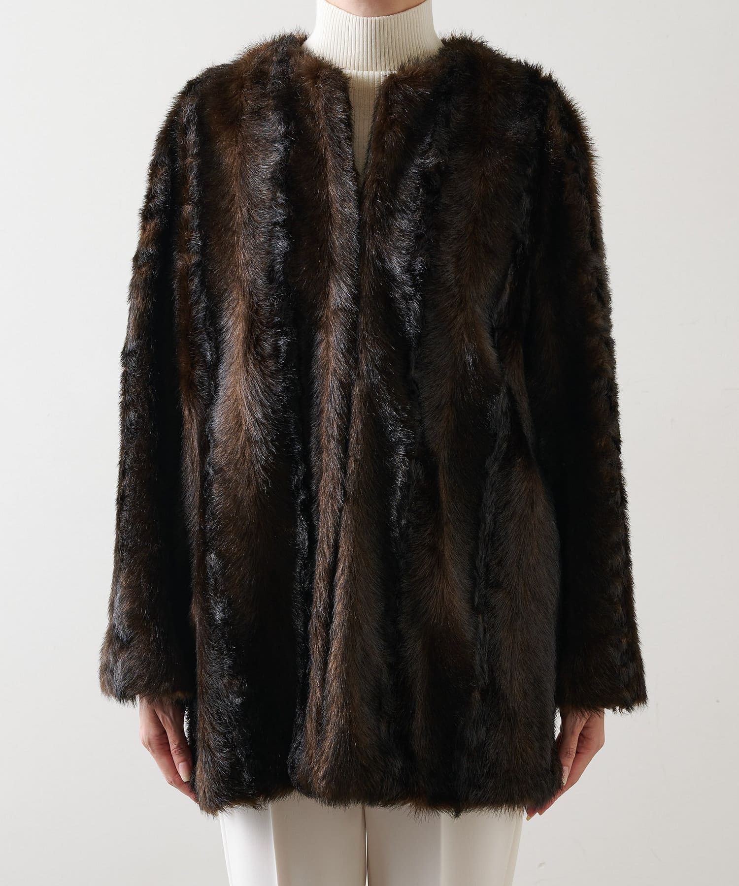■リアルファーに比べカジュアルに楽しみやすく、ラフなスタイルからエレガントなスタイルまで幅広く活躍してくれるアウター。