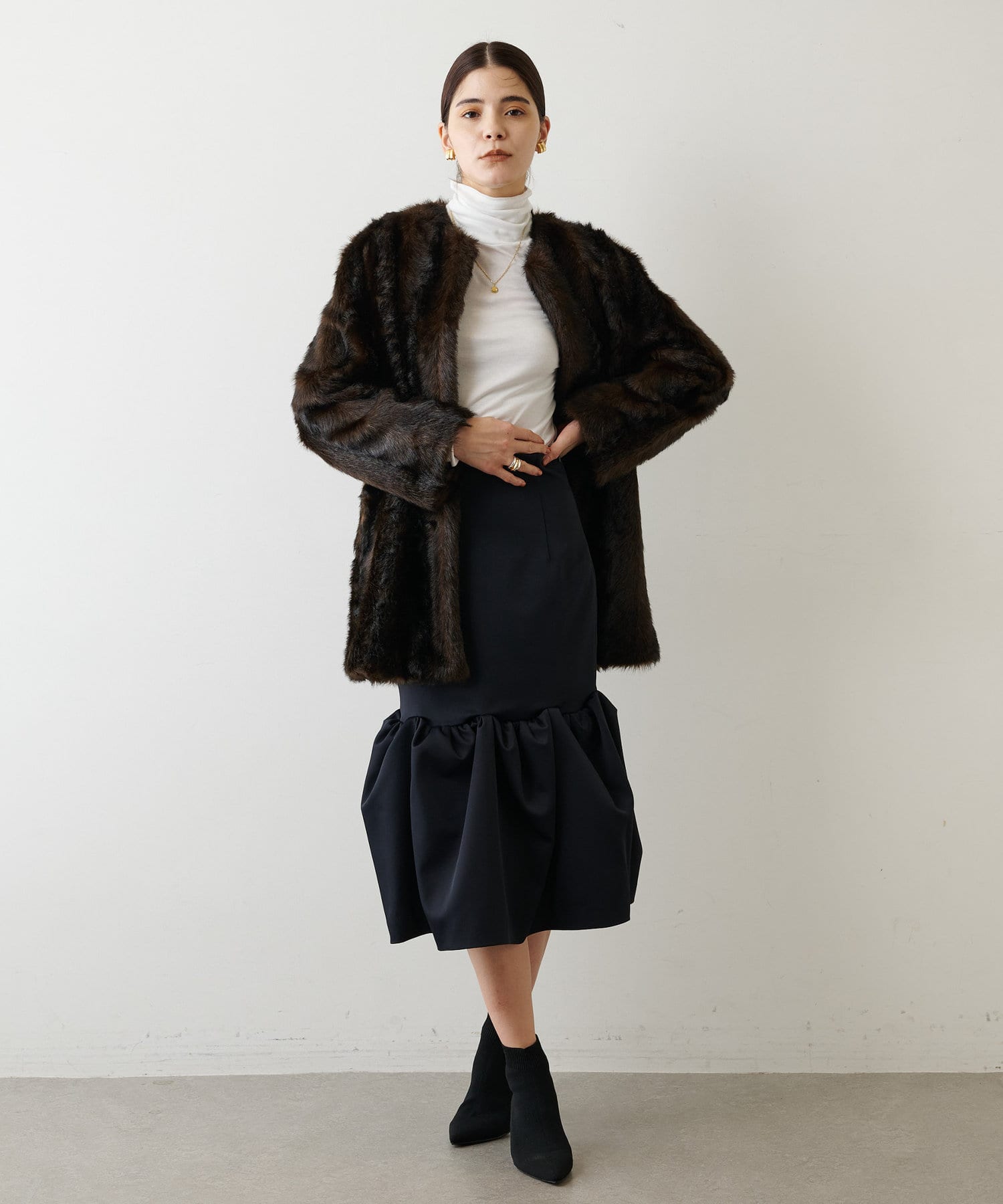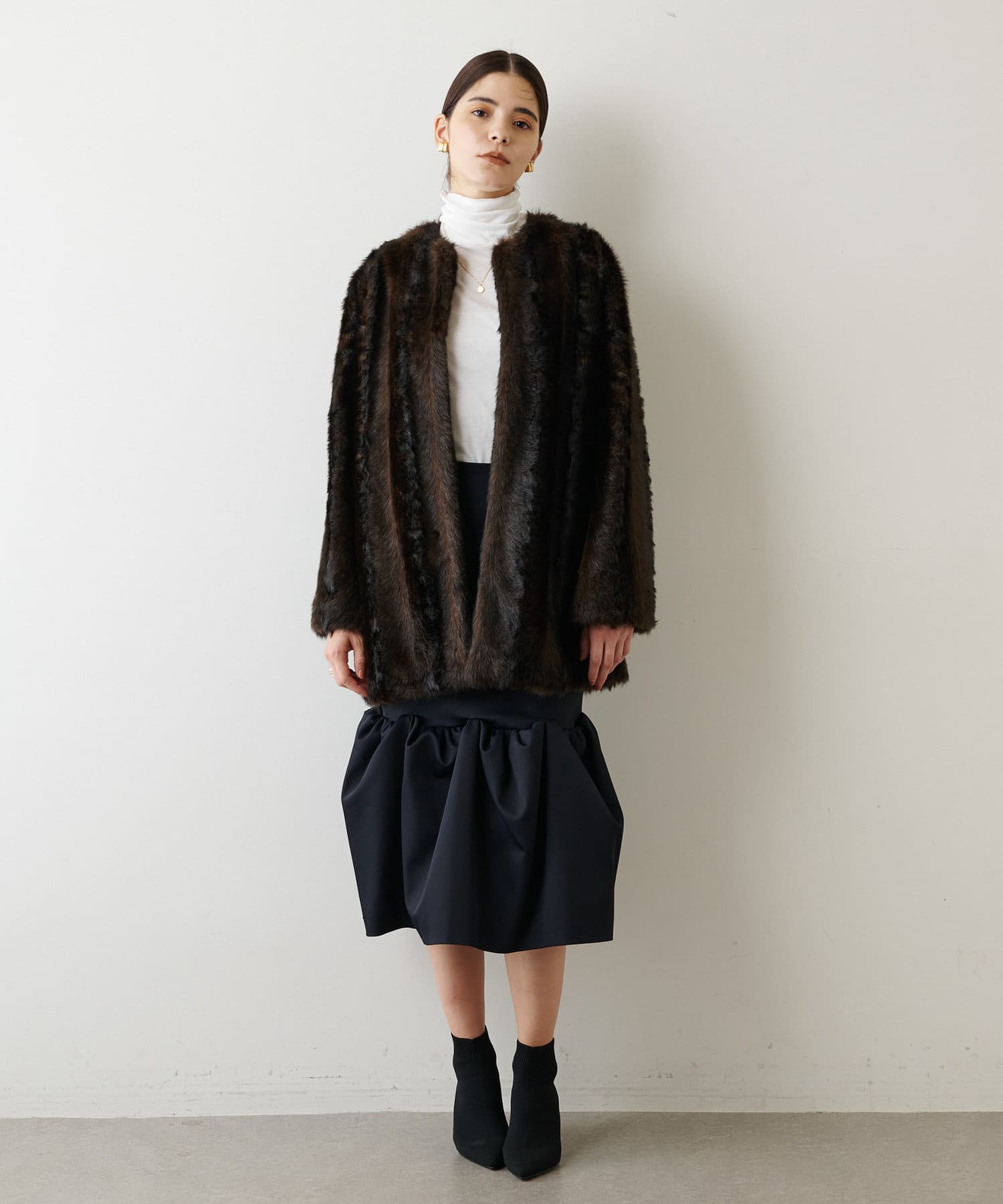 ■さらりと羽織るだけでこなれた印象を叶えるフェイクファーコート。
