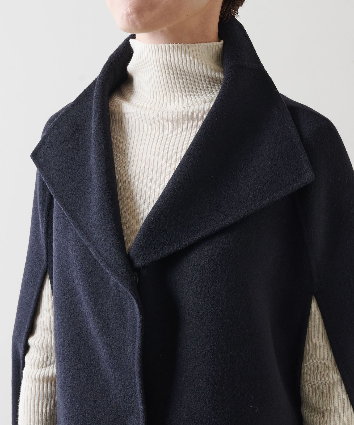 ■上質な生地の特徴を最大限に生かしたミニマルなリバーケープコート。