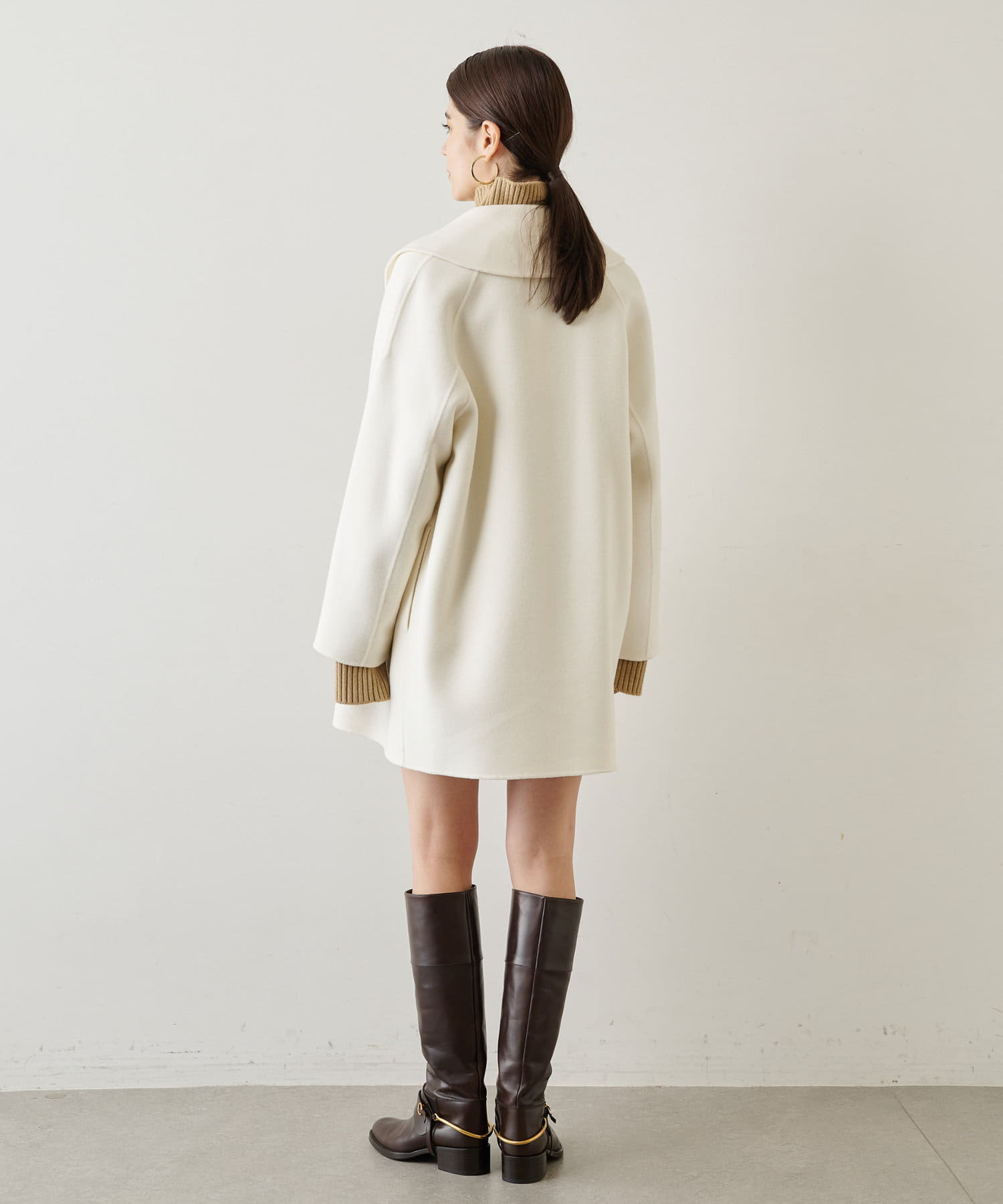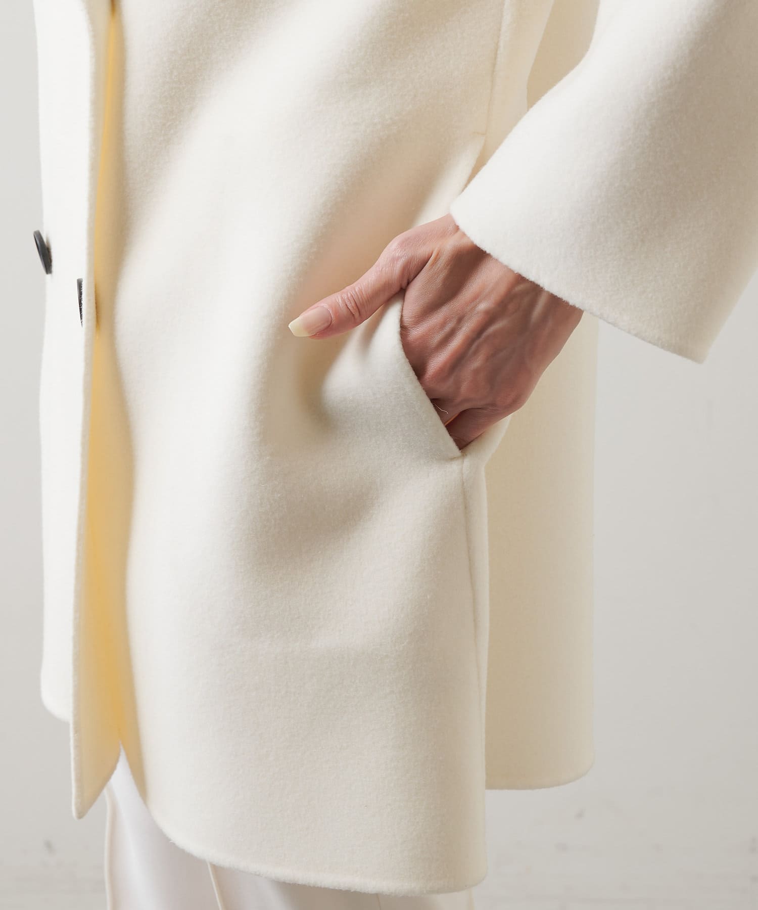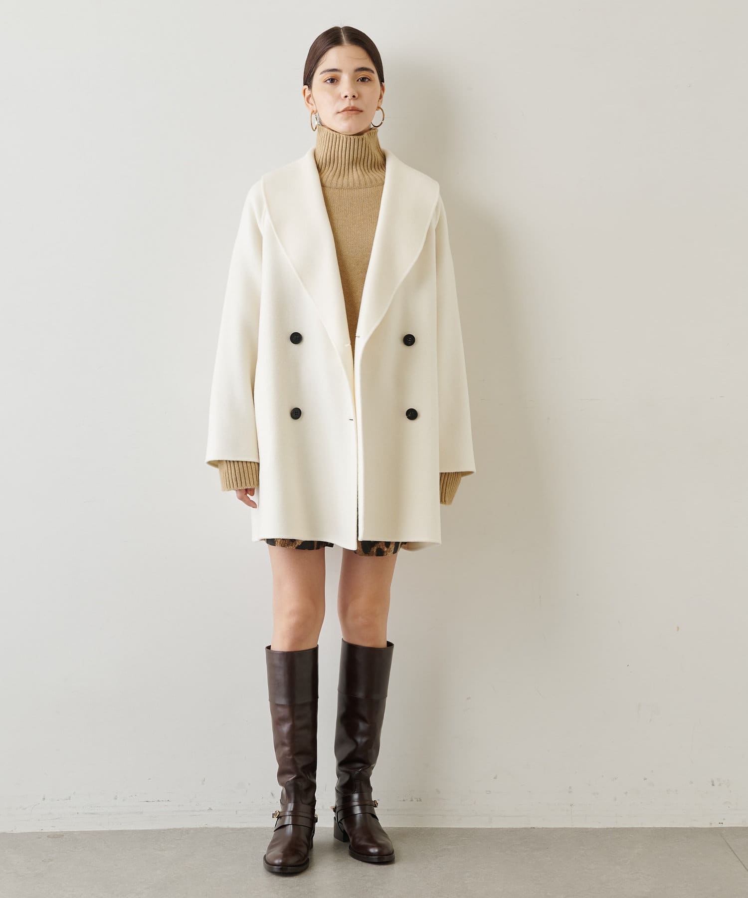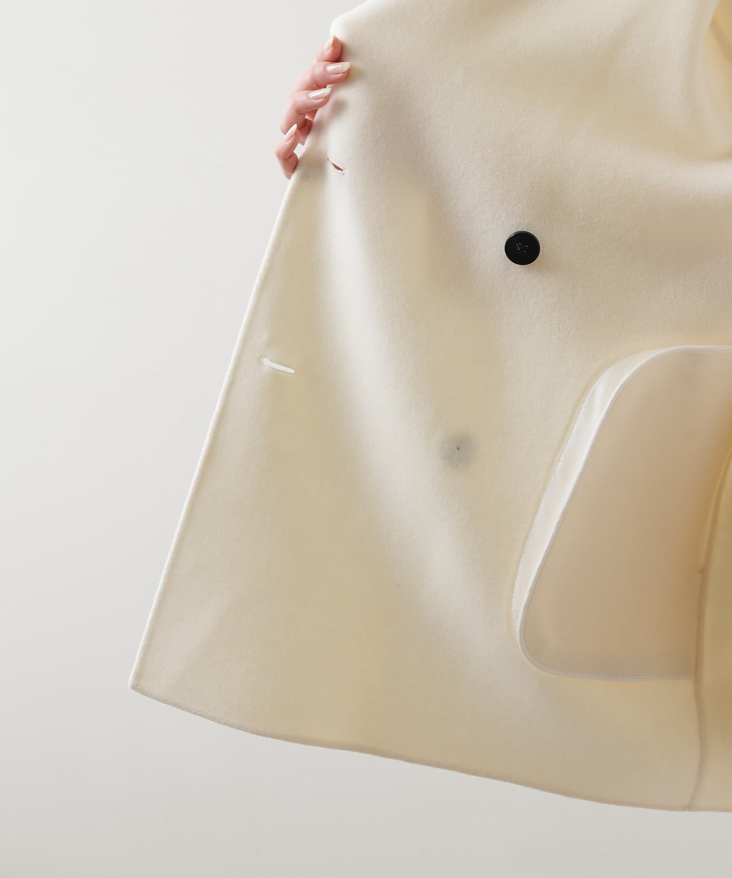 ■膨らみ感のある上質なインポート生地を使用したリバーショートコート。