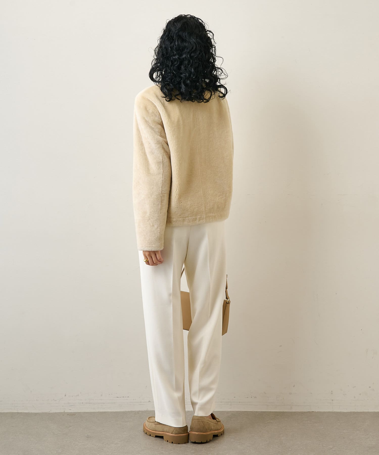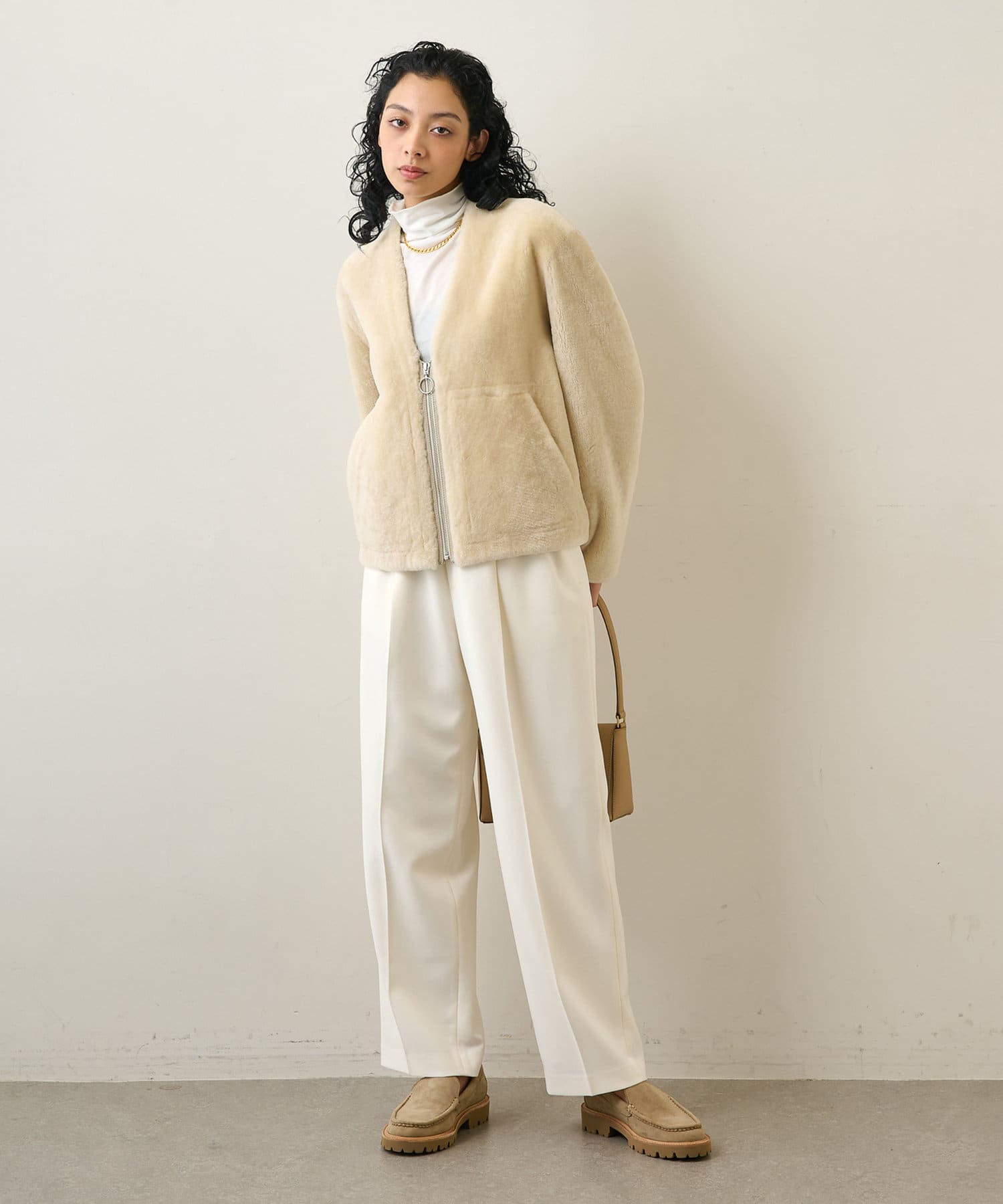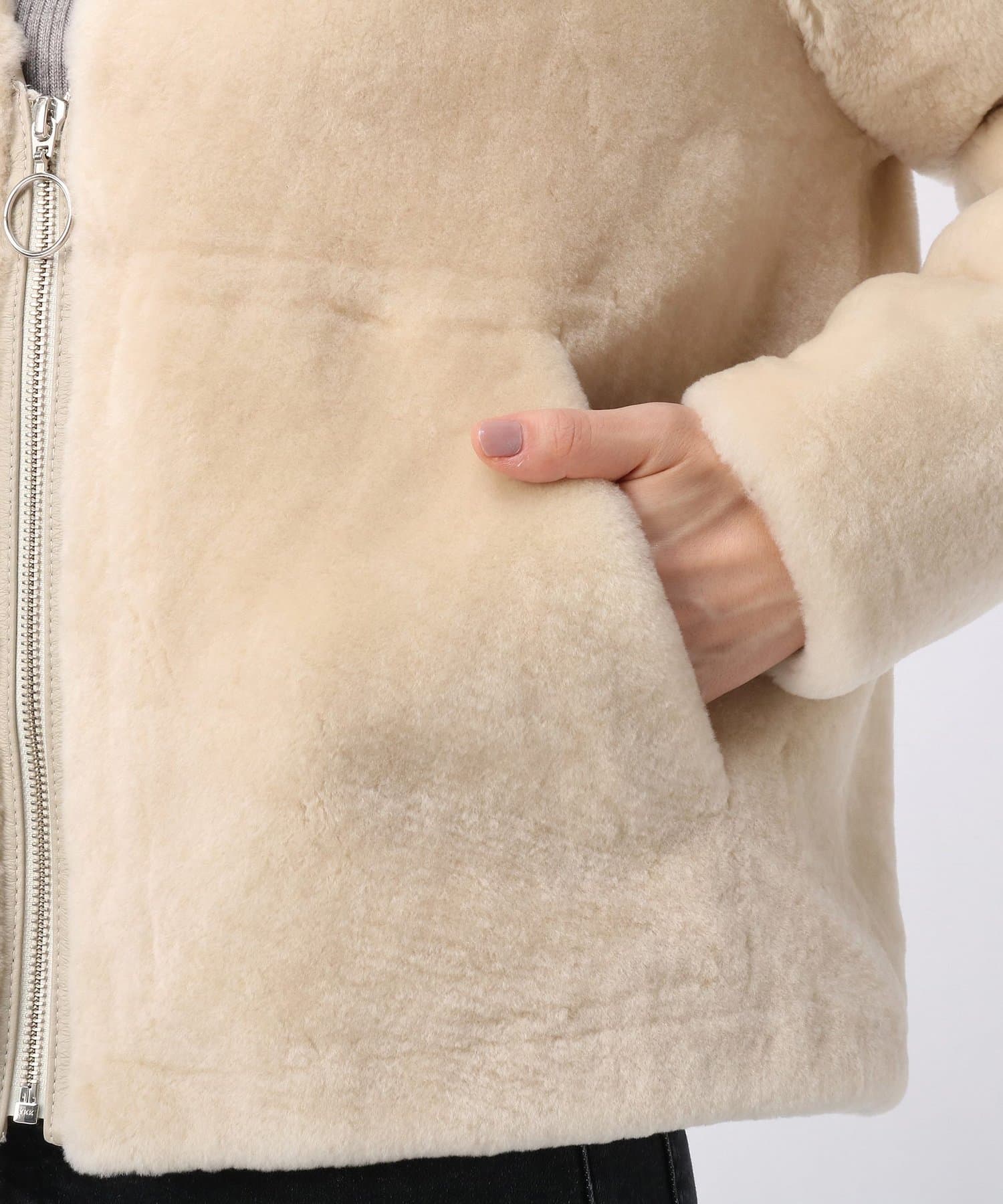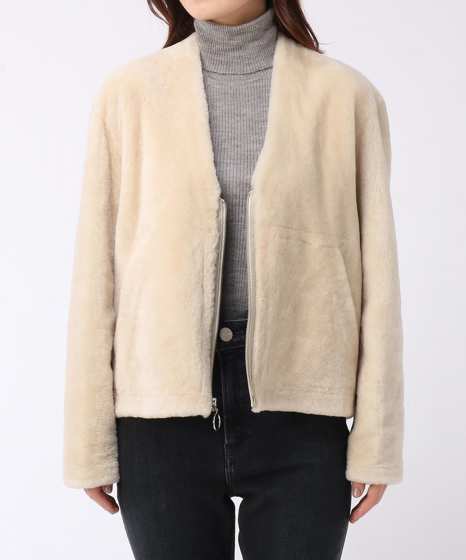 ■ミニマルなデザインのファスナータイプのショートムートンコート。