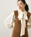 ■コンパクトなタートルネックやボウタイブラウスなどとのレイヤードスタイルで雰囲気の変化を楽しめるアイテム。