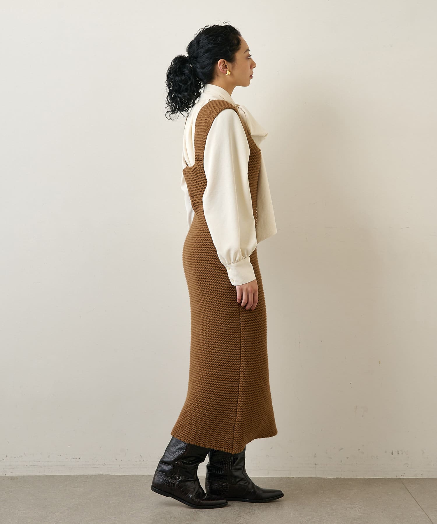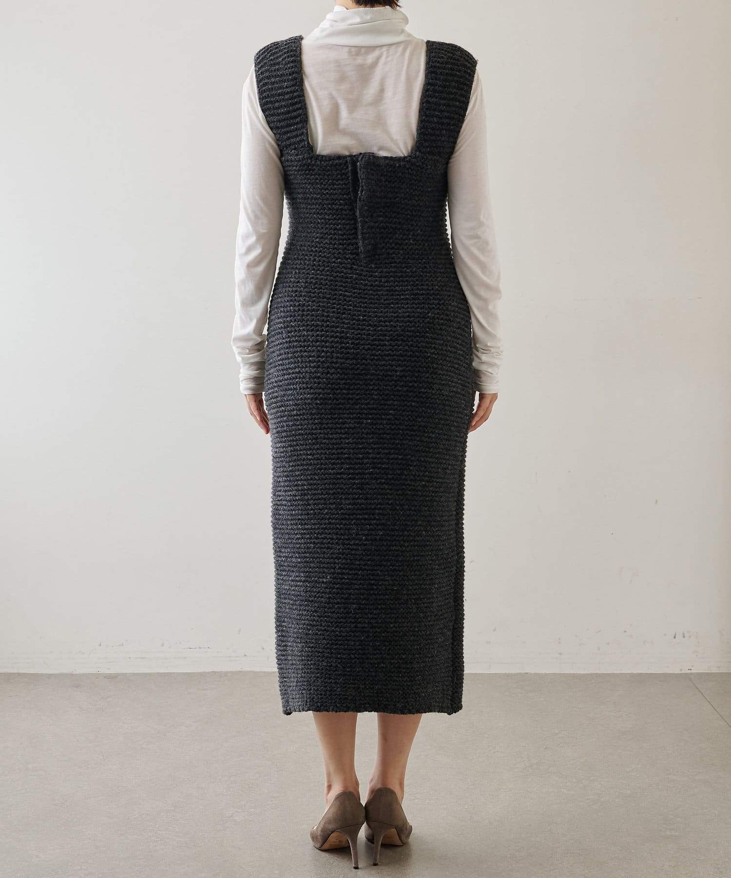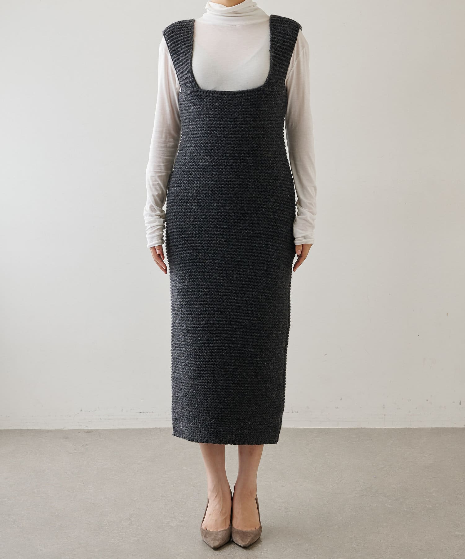 ■凹凸感のあるニットの表情がポイントのジャンパースカート。