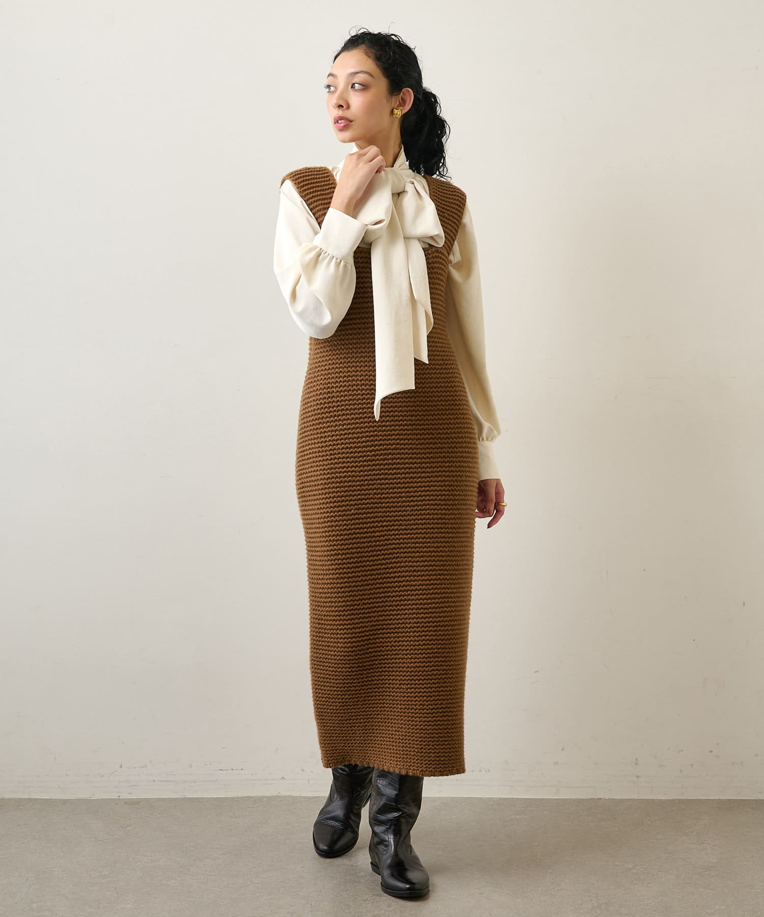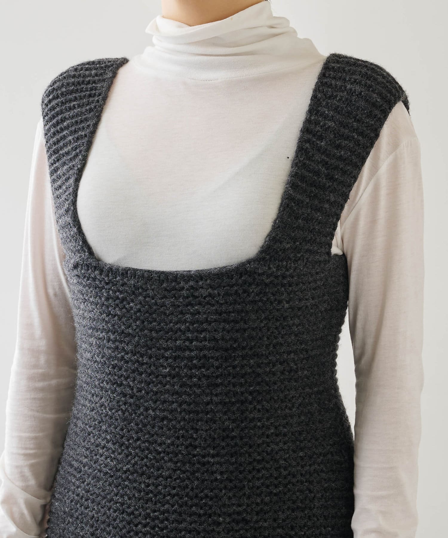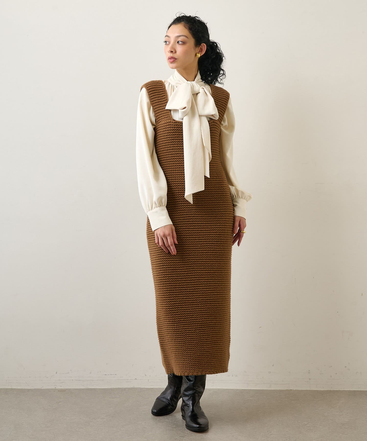 ■凹凸感のあるニットの表情がポイントのジャンパースカート。