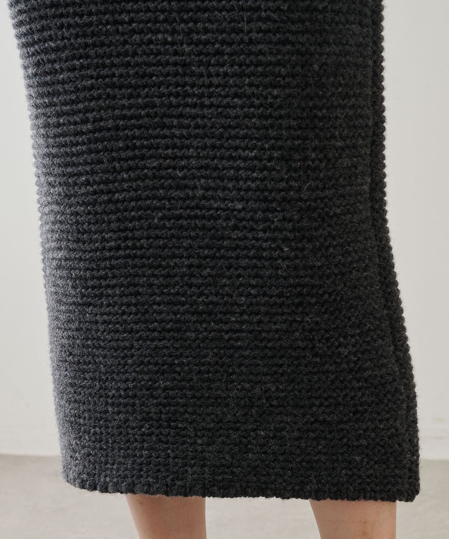 ■フィット感がありつつしっかりとした編地がボディラインを拾いにくく、綺麗なIラインシルエットを演出。