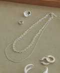 ■ニュアンスパーツをつないだデザインチェーンと、華奢なスネイクチェーンが2連になったデザイン。