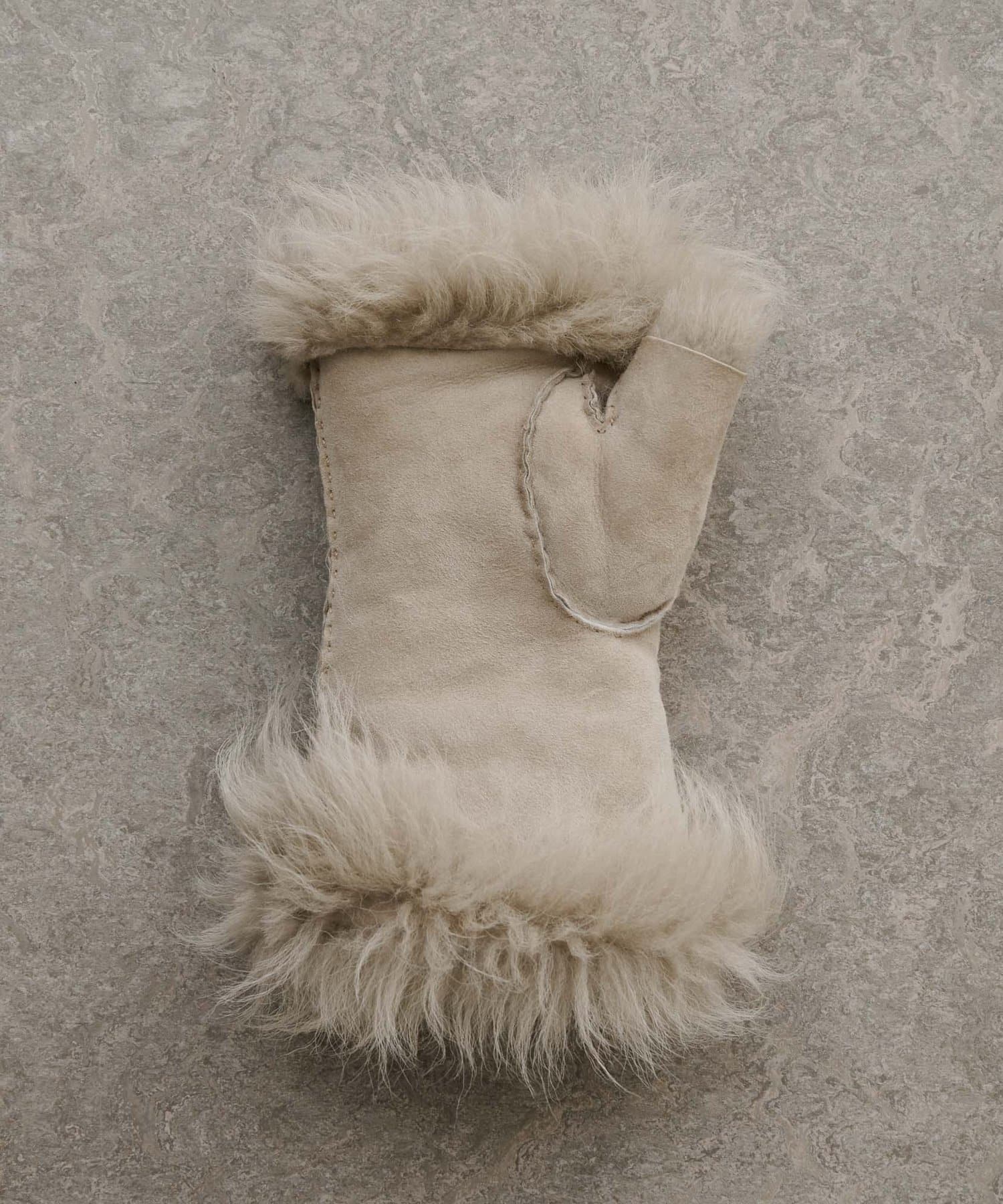 ■ムートン素材がアクセントになったオープンフィンガーグローブ。