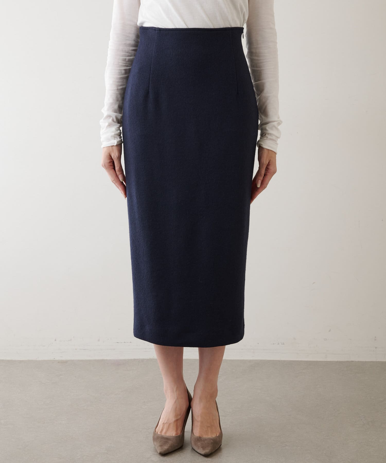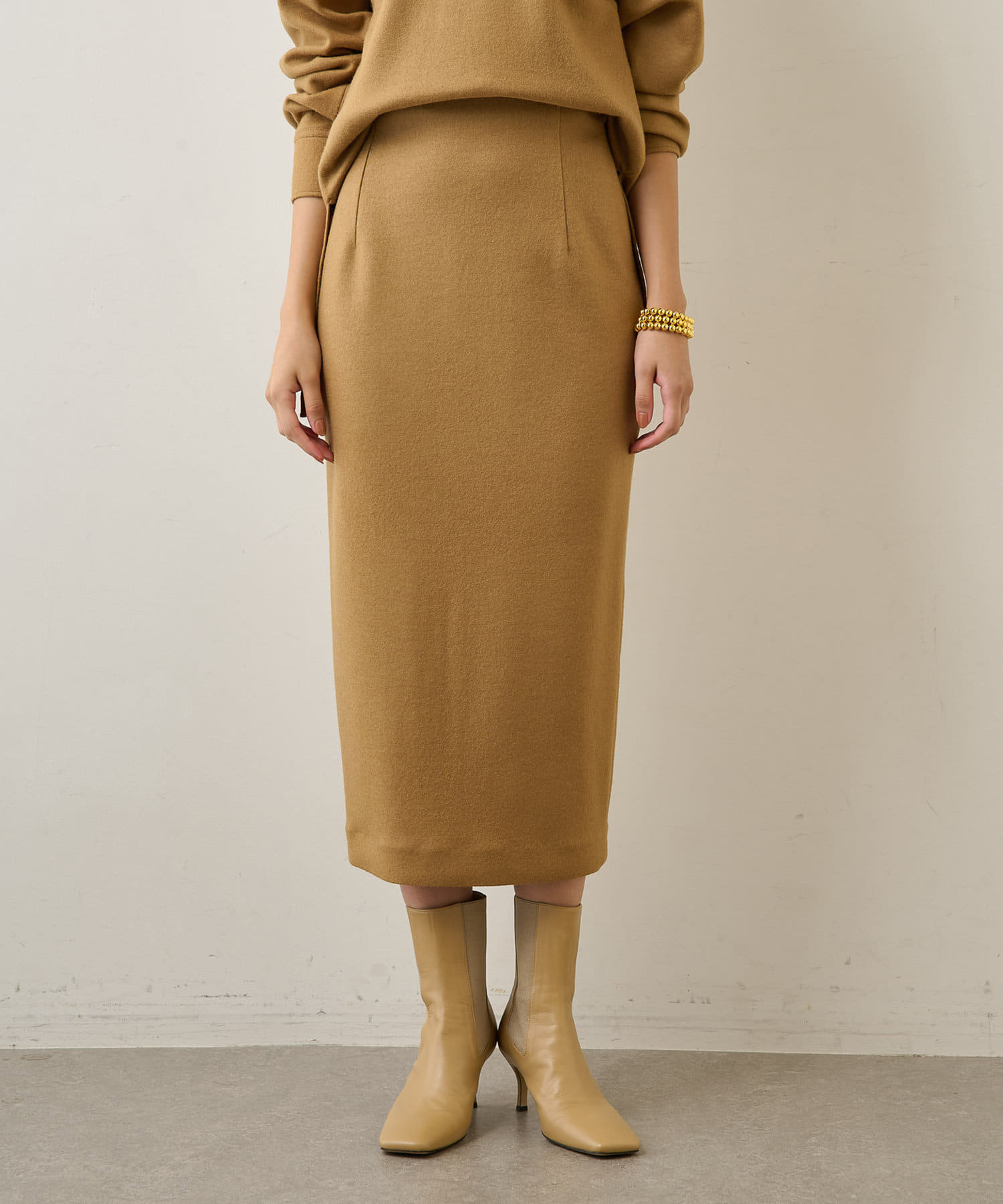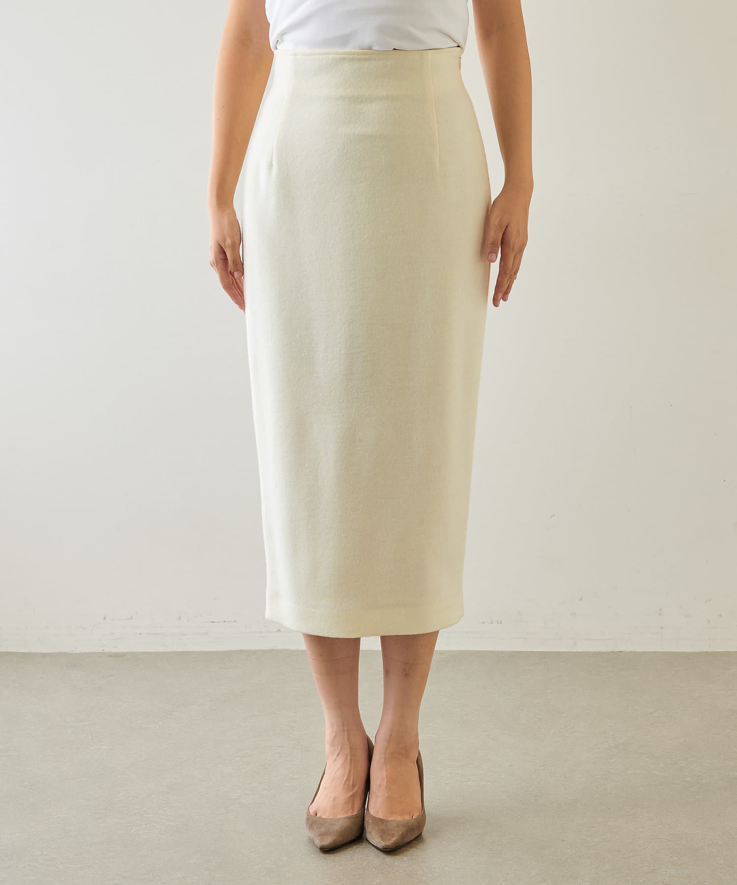 ■ウォーム感のある風合いが秋冬のムードを高めてくれるタイトスカート。