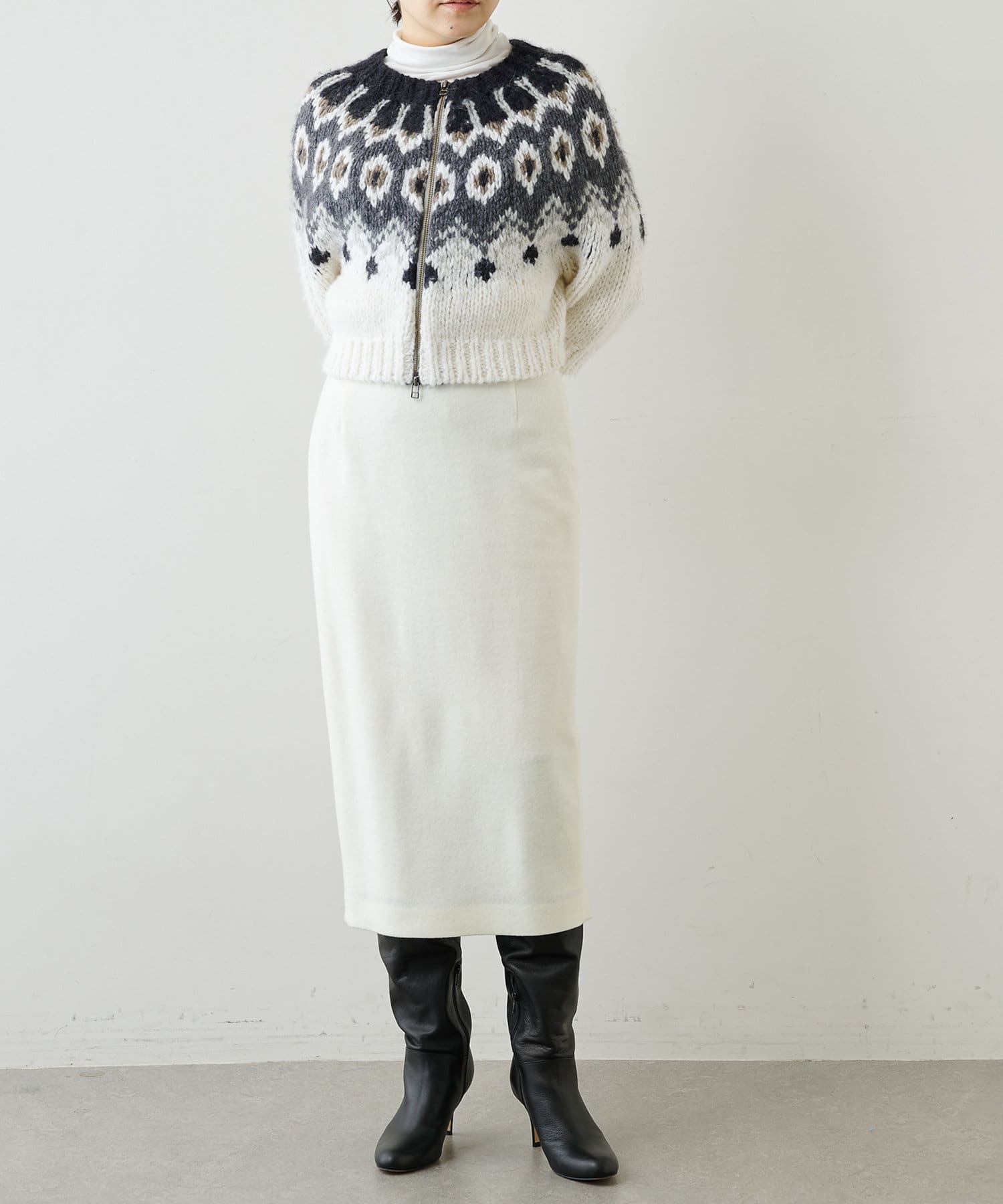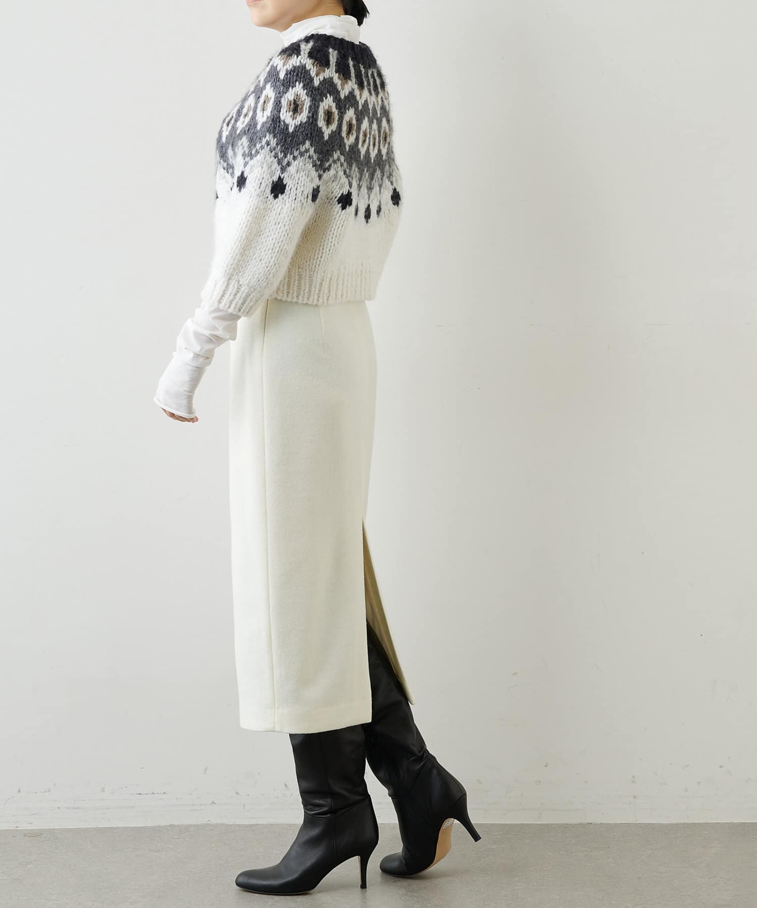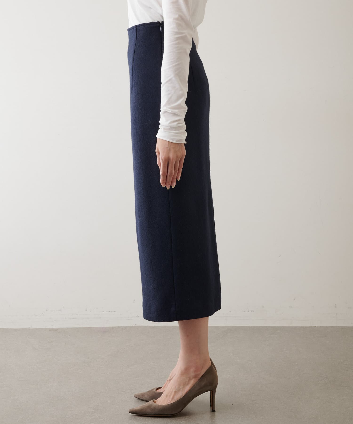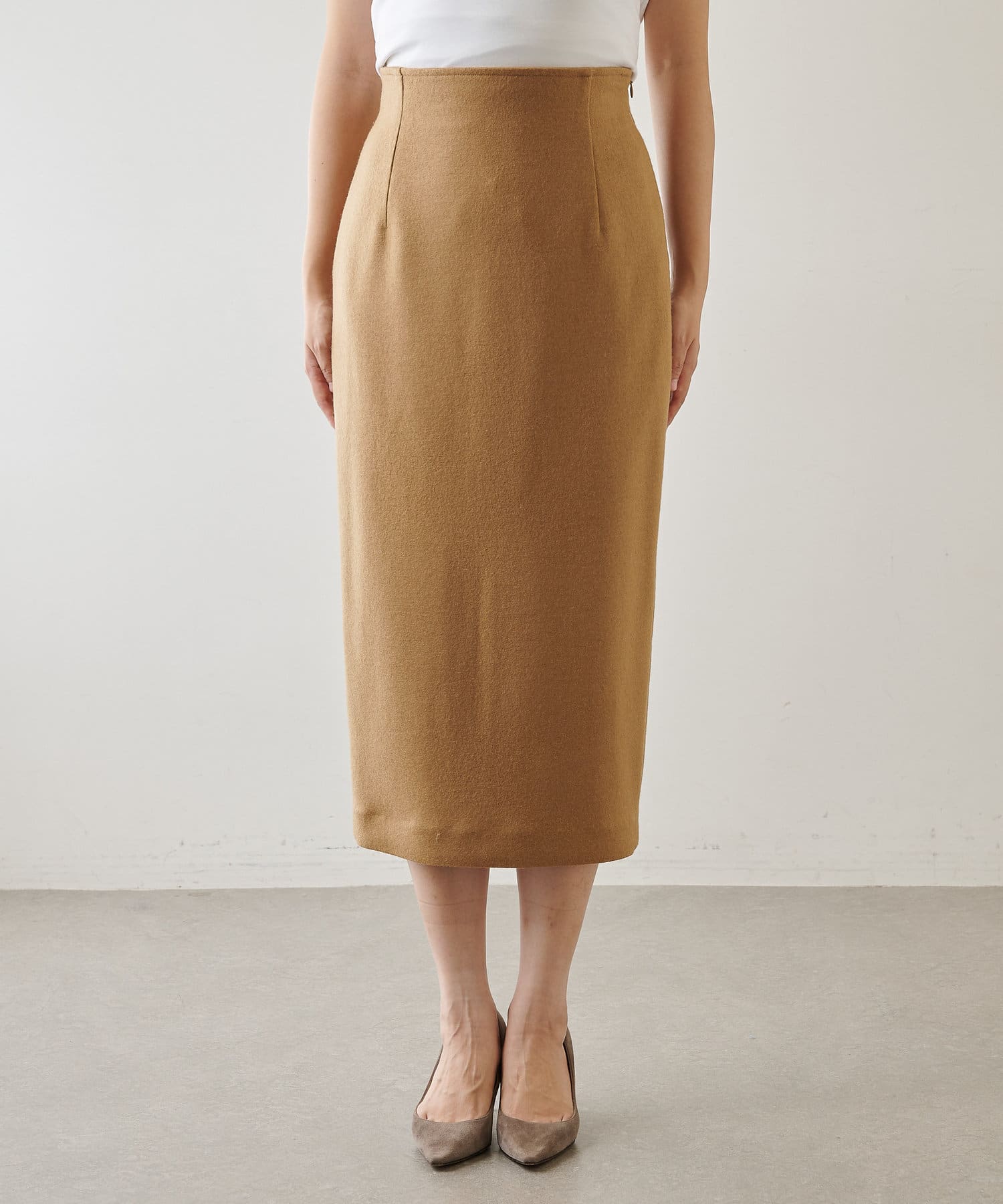 ■ウォーム感のある風合いが秋冬のムードを高めてくれるタイトスカート。