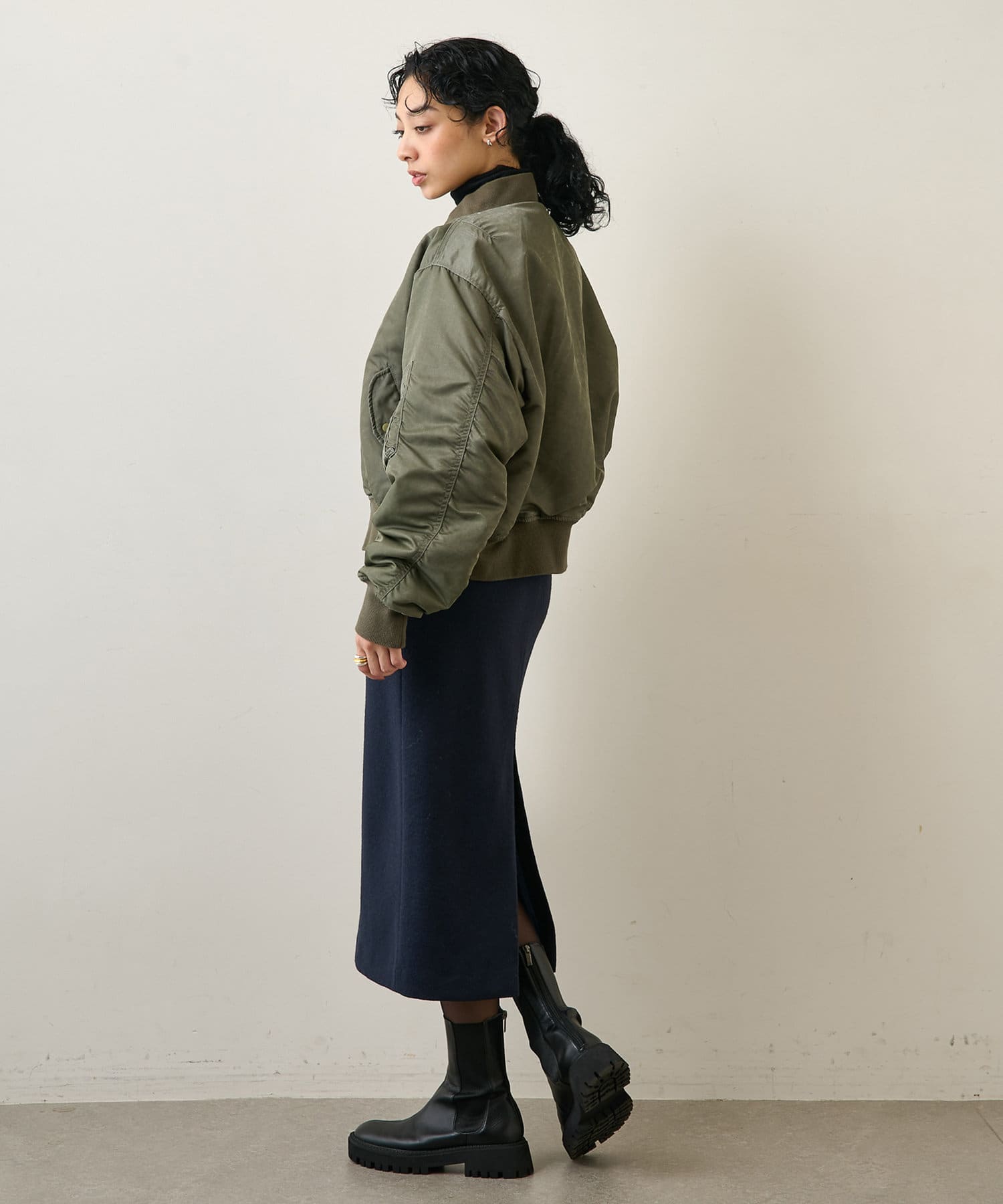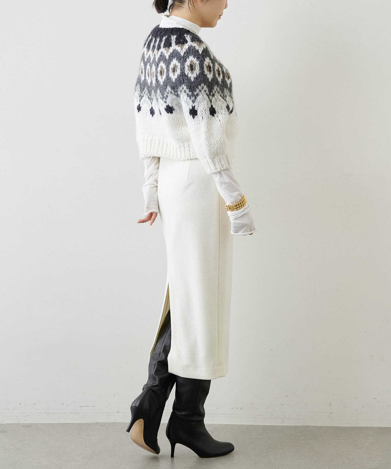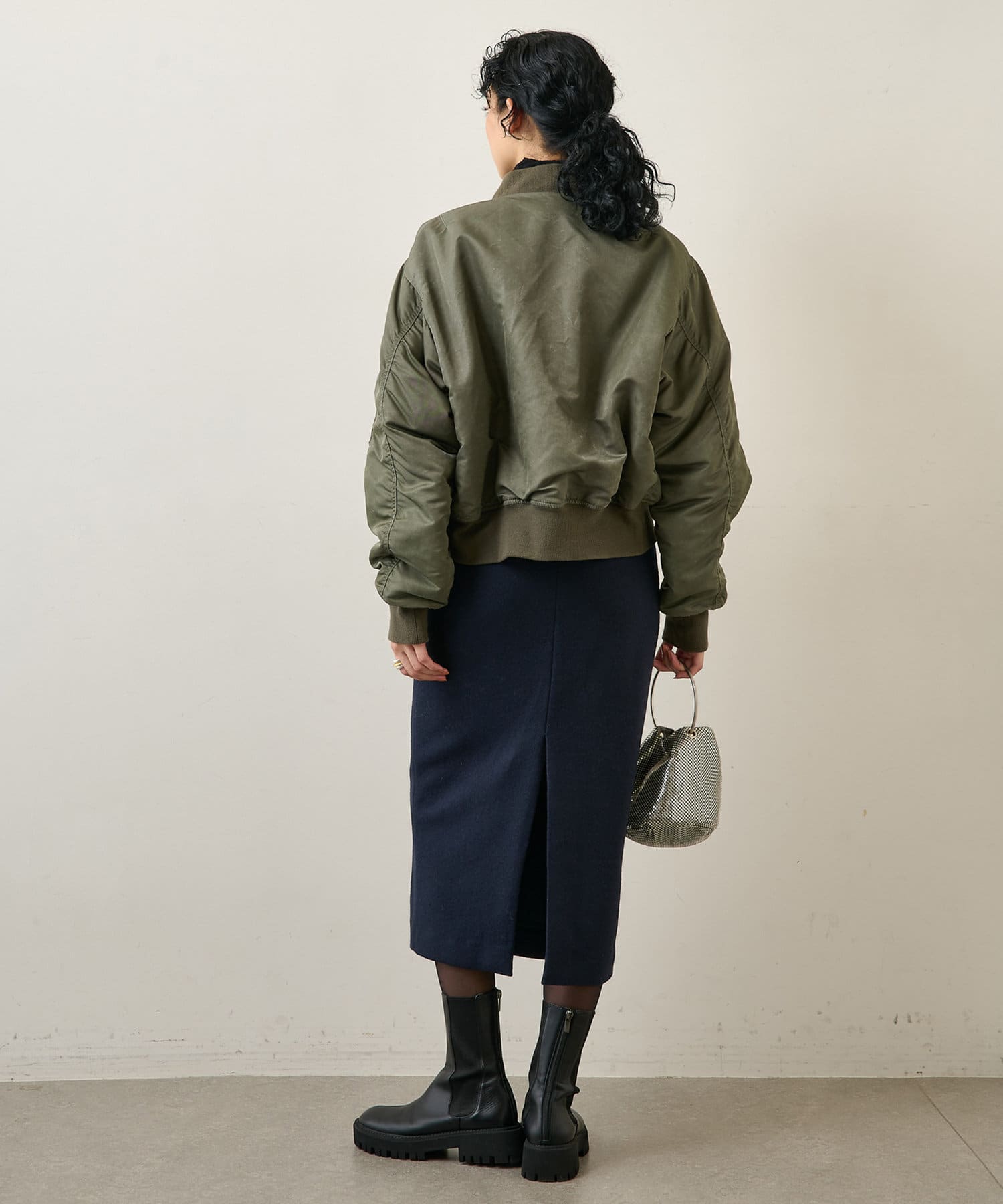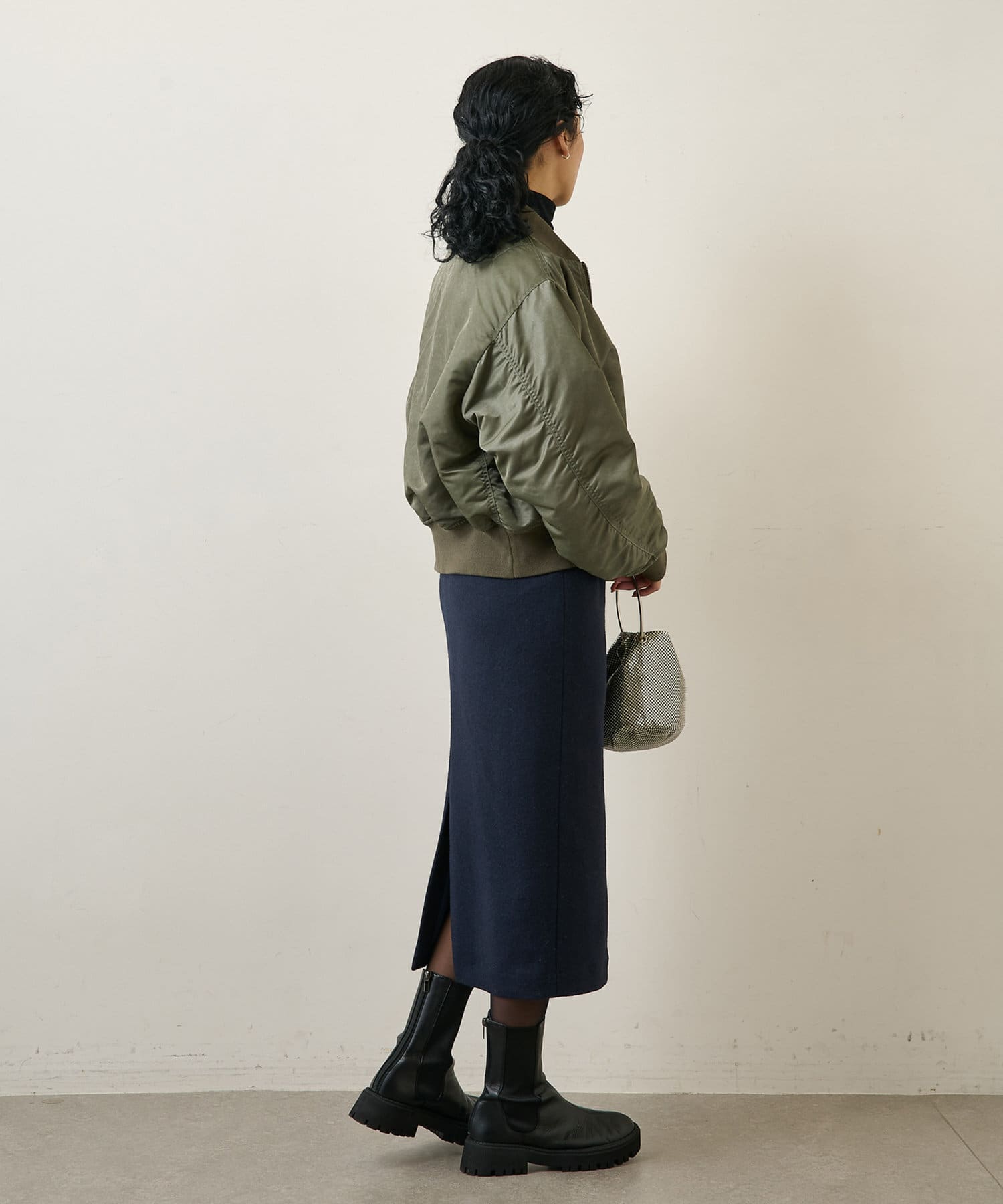■足首ののぞく上品な着丈に、やや深めのバックスリットが抜け感をプラス。