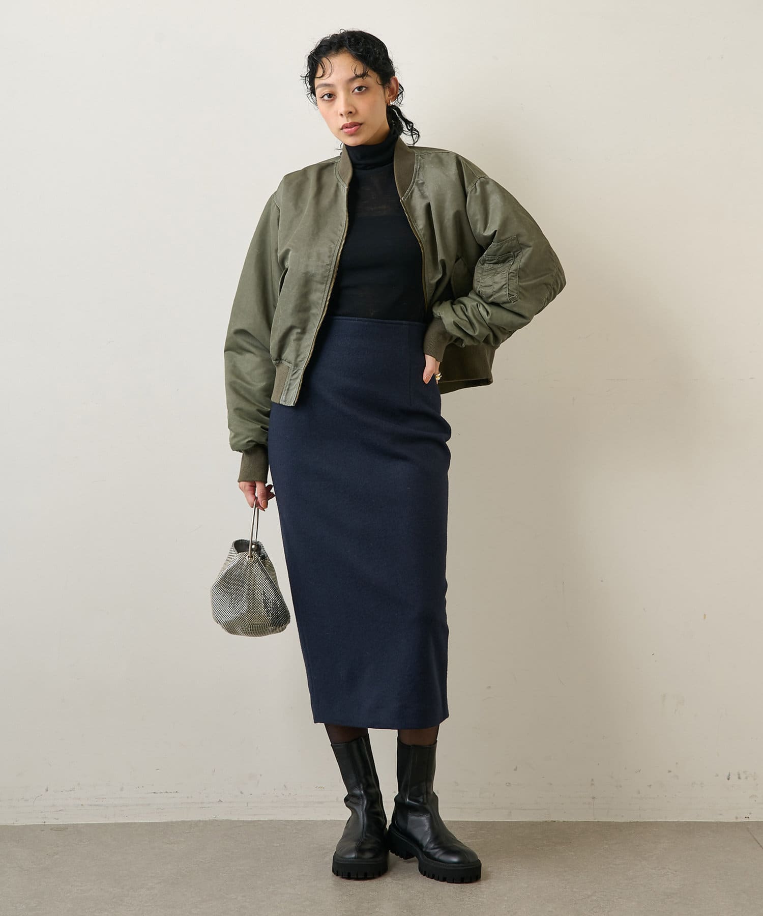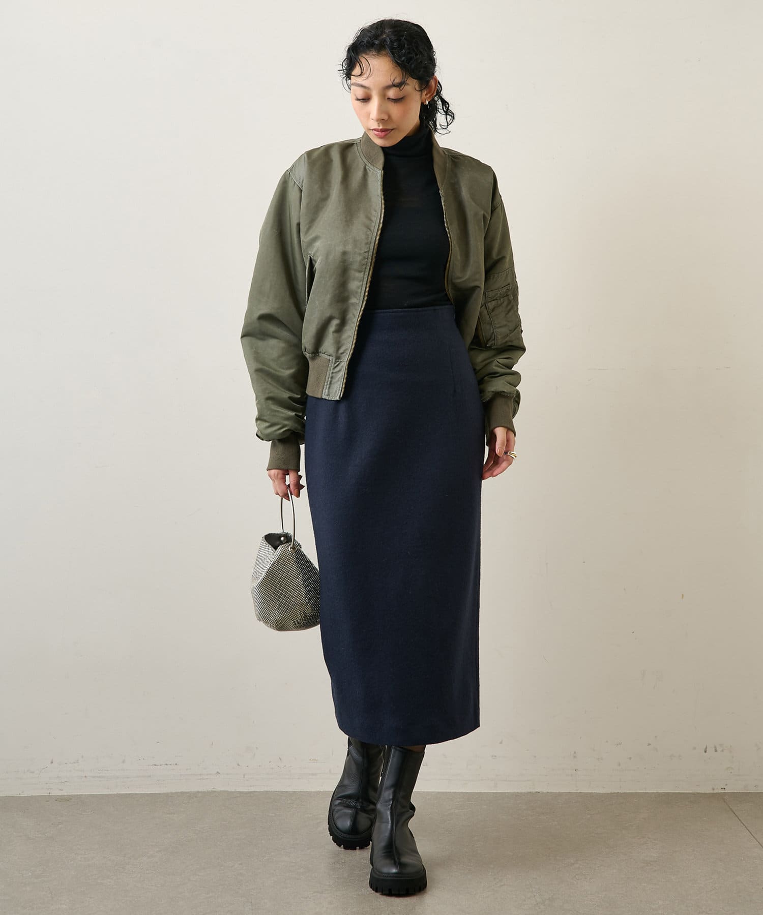 秋冬ならではの温かみのあるウールスカート。タイトシルエットですが厚みもそこまで無く、柔らかい生地で軽い着心地です。ハイウエストなので今年らしいクロップド丈のトップスとも相性が良いですよ!