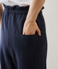 ■シャーリングデザインがアクセントになったゴム仕様のウエストは内側の紐でサイズ調整も可能。
